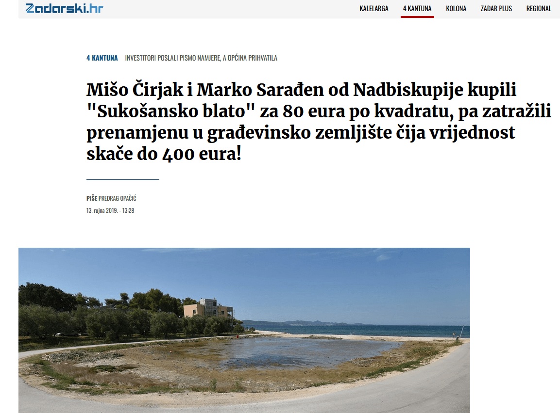 I daaaa, to su isti Čirjak i Sarađen koji su po 80 eura za kvadrat kupili “Sukošansko blato”, koje je u tom trenutku bilo zelena zona, da bi se samo malo kasnije to zemljište “čudnovatim čudom” pretvorilo u građevinsku zonu (ah, pardon, pardon – “investitori su podnijeli zahtjev” 🤣🤣🤣).