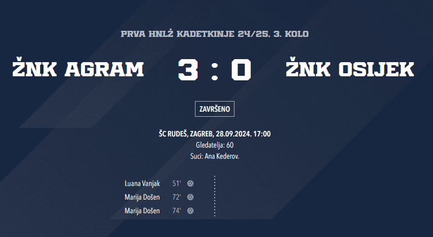 Kompletno i sveobuhvatno su kadetkinje Agrama danas nadigrale gošće iz Osijeka u 3. kolu WU-17 lige, uzvrativši tako za poraz seniorki Agrama prošlu nedjelju u Osijeku 💪. Osječanke su nakon dva uspješno odrađena derbija u prva dva kola (najprije pobjeda 3 : 1 doma protiv Donata, pa onda pobjeda 3 : 0 u gostima kod Hajduka u prošlom kolu) došle s određenim ambicijama da taj niz nastave, ali Agramerke im za tako nešto nisu dale niti najmanju šansu.