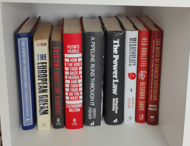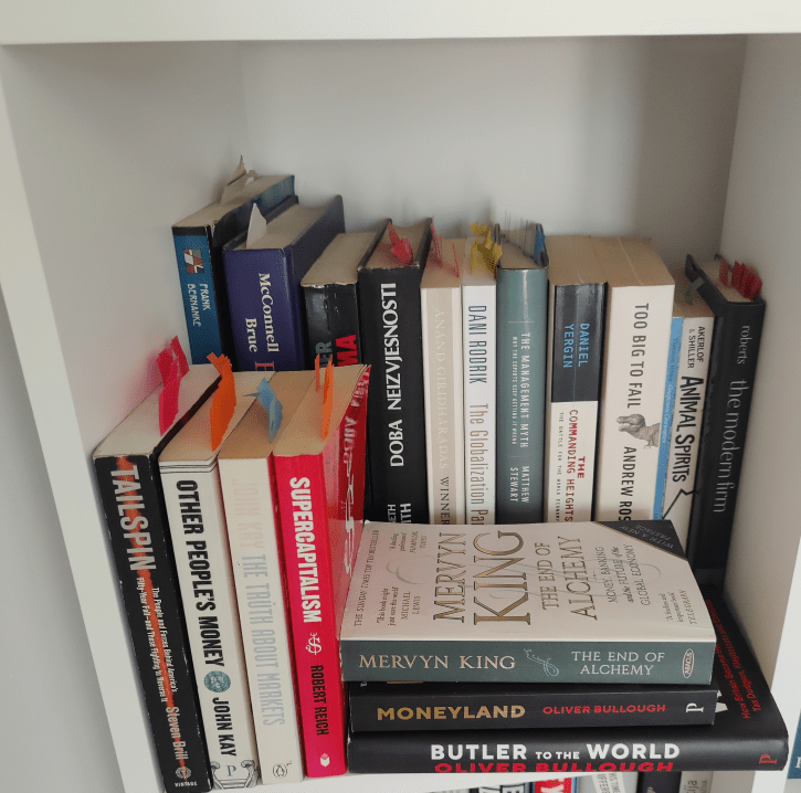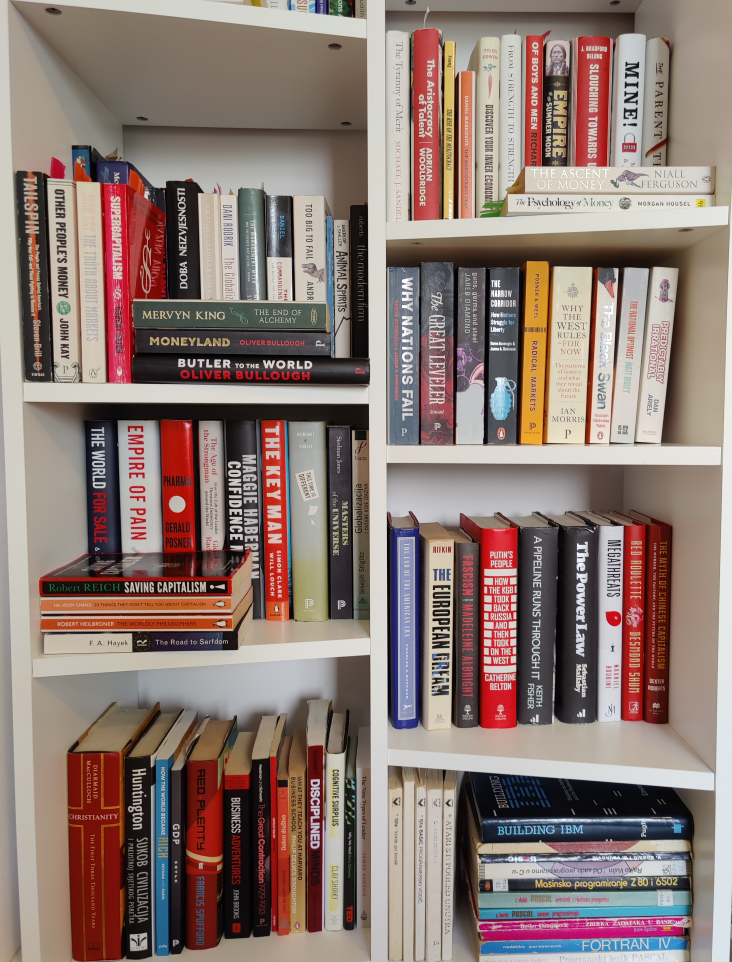 Lopine i grabežljivci posvuda 🙄, to je ono što je moj zaključak o današnjem modernom kapitalističkom društvu i sreća je da sam od knjiga na ovoj slici posvećenih toj temi pročitao zasad debelo manje od pola. Daj Bože da nam se društvena paradigma promijeni, pa da jednom postanu povijesni relikti, kakav je danas recimo Komunistički Manifest, ali nekako sumnjam u to, i bojim se da će svaka od njih i za deset godina biti jednako relevantna.