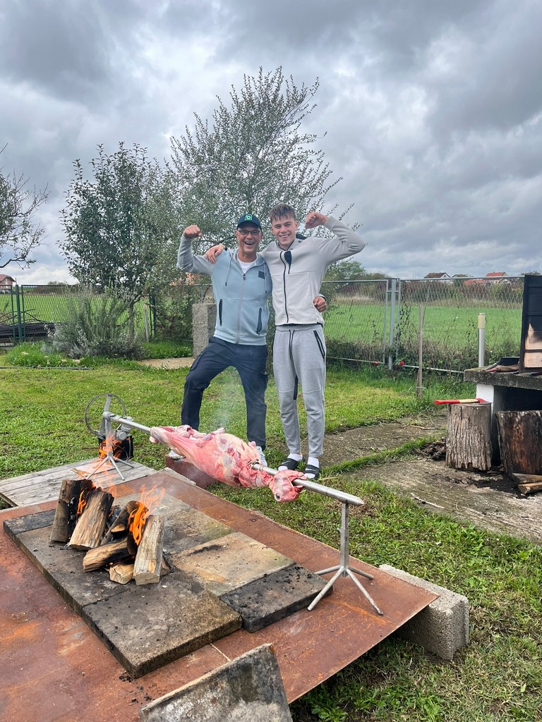 Nakon što je odrađena priprema pozicije i naložena vatra, sinčina i ja smo ga instalirali na njegovu poziciju za iduća tri i po sata 🔥🔥🔥.
