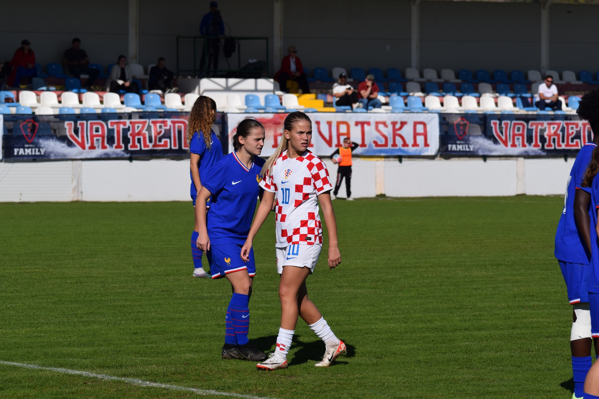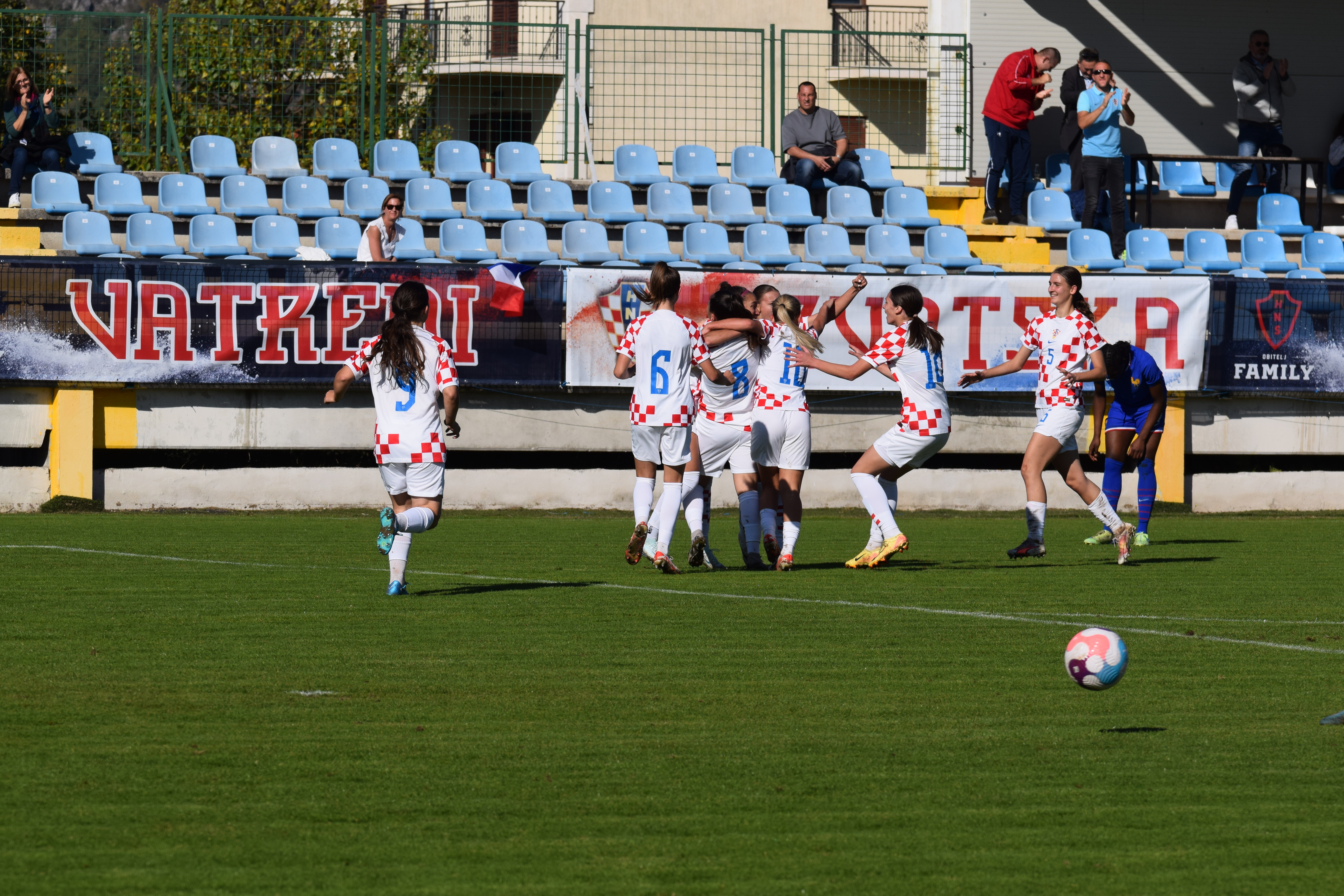 Čudesnih početnih dvadeset minuta, i generalno odlična utakmica hrvatskih reprezentativki protiv reprezentacije iz PRVOG EŠALONA evropskog kadetskog nogometa je odličan znak za budućnost ženskog nogometa u Hrvatskoj, i sad još preostaje pobijediti Bugarsku u četvrtak za osiguravanje minimalno 3., a možda i 2. 😎 mjesta u skupini.