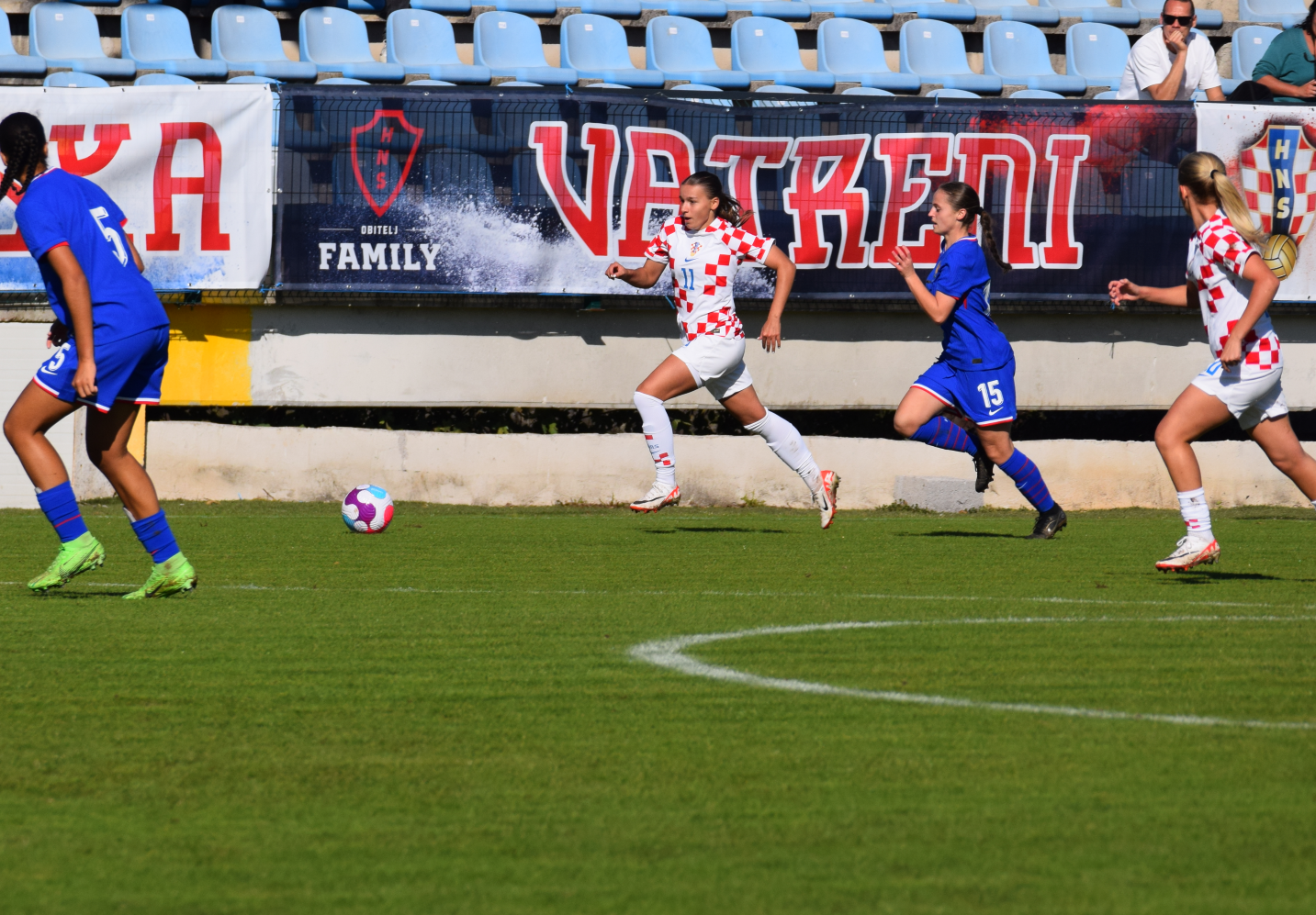 Furiozan, apsolutno furiozan je bio početak hrvatske reprezentacije koja je zbog ozljede Magde Vrtarić zaigrala u nešto izmijenjenoj početnoj postavi, s Antonelom Grgić na desnom beku, Lanom Popić odmah od početka na lijevom, i pomicanjem Petre Bandule u vršak napada s Marijom Došen. Od prve minute je odmah zaigrala i Samantha Alić, kao naš lijevi stoper, Valentina Akrap je zauzela poziciju centralnog stopera a Marta Pešut desnog, dok su u sredini operirale Mia Pestić i Ivona Oto, s Luanom kao isturenim prednjim veznim.