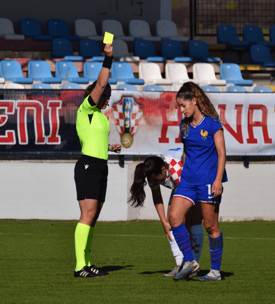 Naša klasična (a i najdraža 😎) postava 5 – 3 – 2 je od prve minute krenula stvarati probleme Francuskinjama koje su zaigrale otvoreno, ostavljajući puno mjesta iza svoje zadnje linije za dubinske lopte i prodore naših igračica.