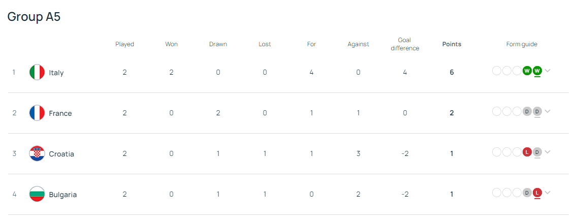 U drugoj utakmici danas, Italija je svladala Bugarsku 2 : 0, i sa 6 bodova je sigurni pobjednik naše skupine, a sve ostalo je otvoreno 😮.