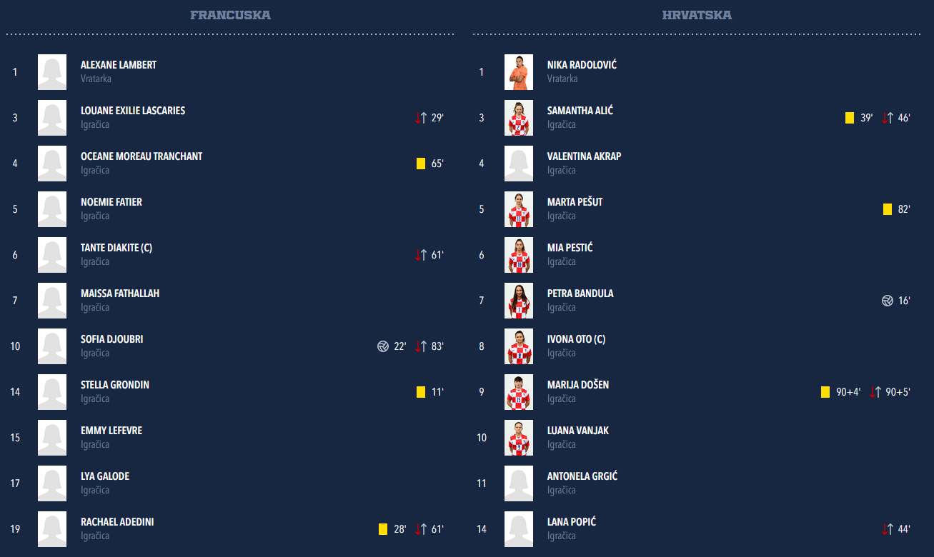 Uz to je u dva navrata iz sredine poslala jako lijepe lopte Mariji Došen u dubinski for … ali, stopericama francuske reprezentacije svake pohvale na reakciji u oba slučaja.