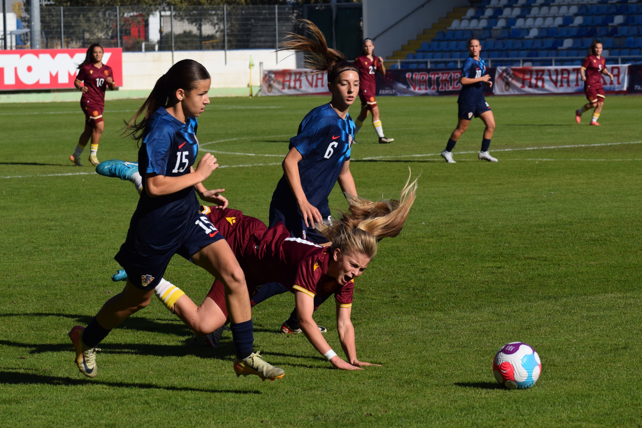 Odlično odigrana utakmica hrvatskih djevojaka u završnom trećem kolu prve runde kvalifikacija za WU-17 EURO, i ako su protiv Francuske impresionirale svojom furioznošću u prvih 20ak minuta, jučer su impresionirale svojom dominacijom tijekom cijele utakmice, ne dozvolivši da rezultat u iti jednom trenutku dođe u pitanje.
