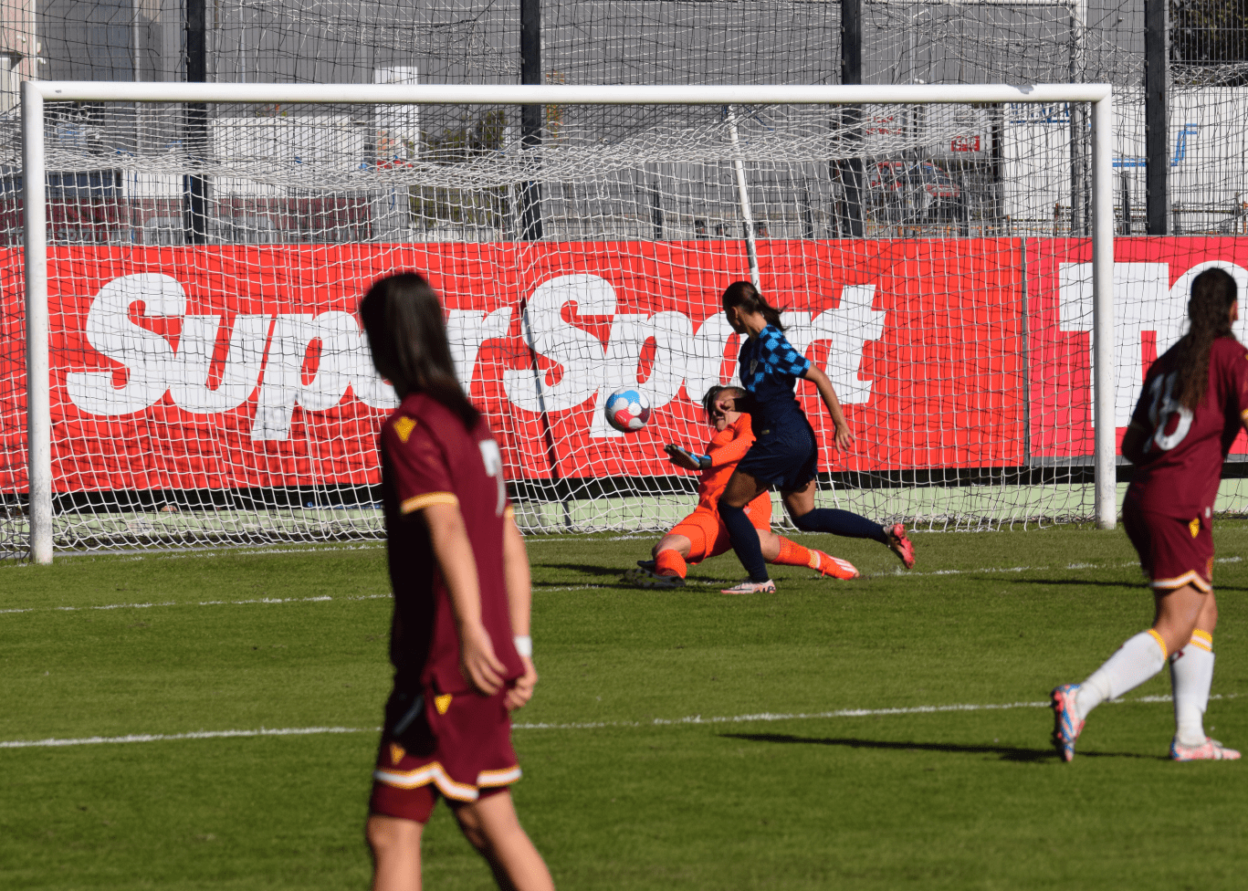 ali se lopta odbija par metera lijevo do Luane koja vidi usamljenu Petru Bandulu na rubu kaznenog prostora