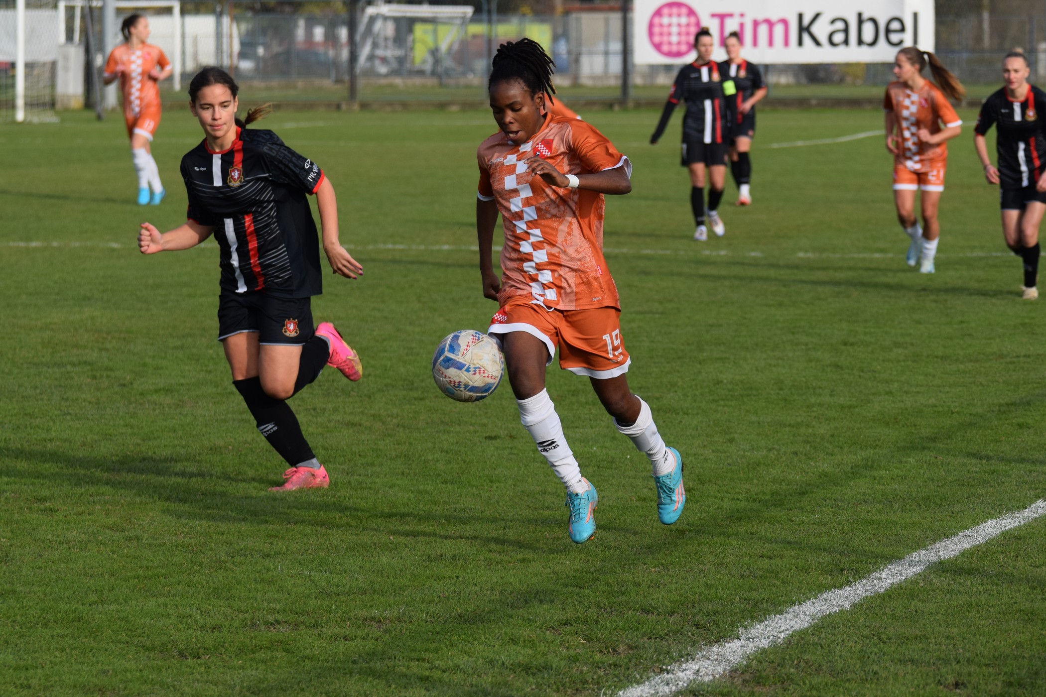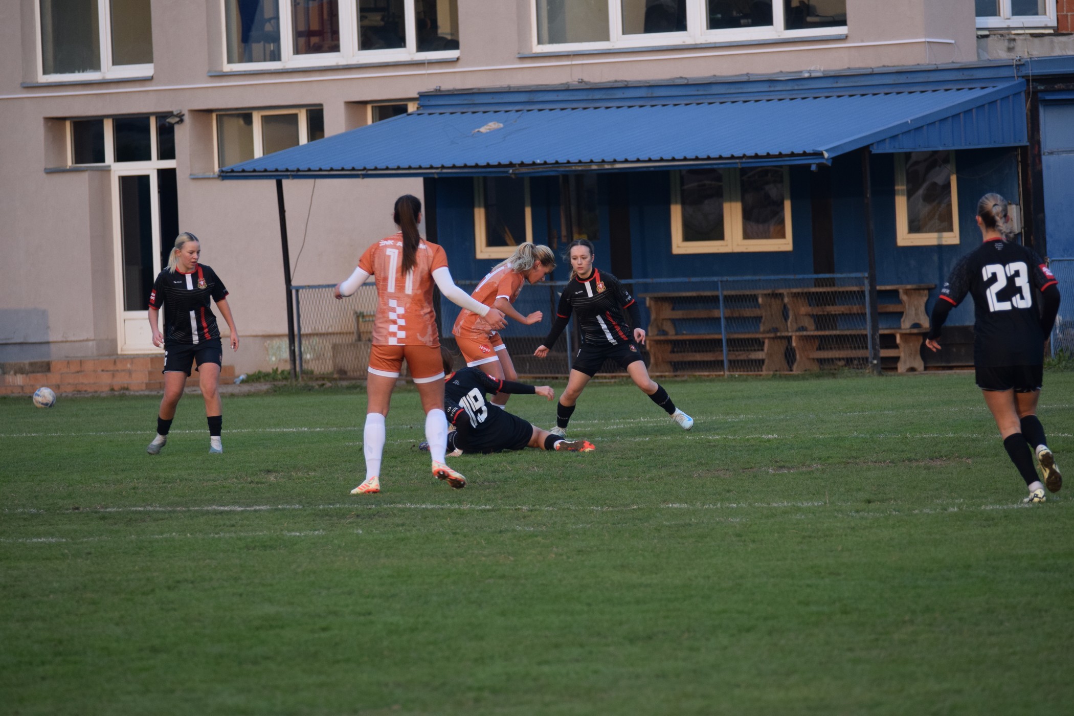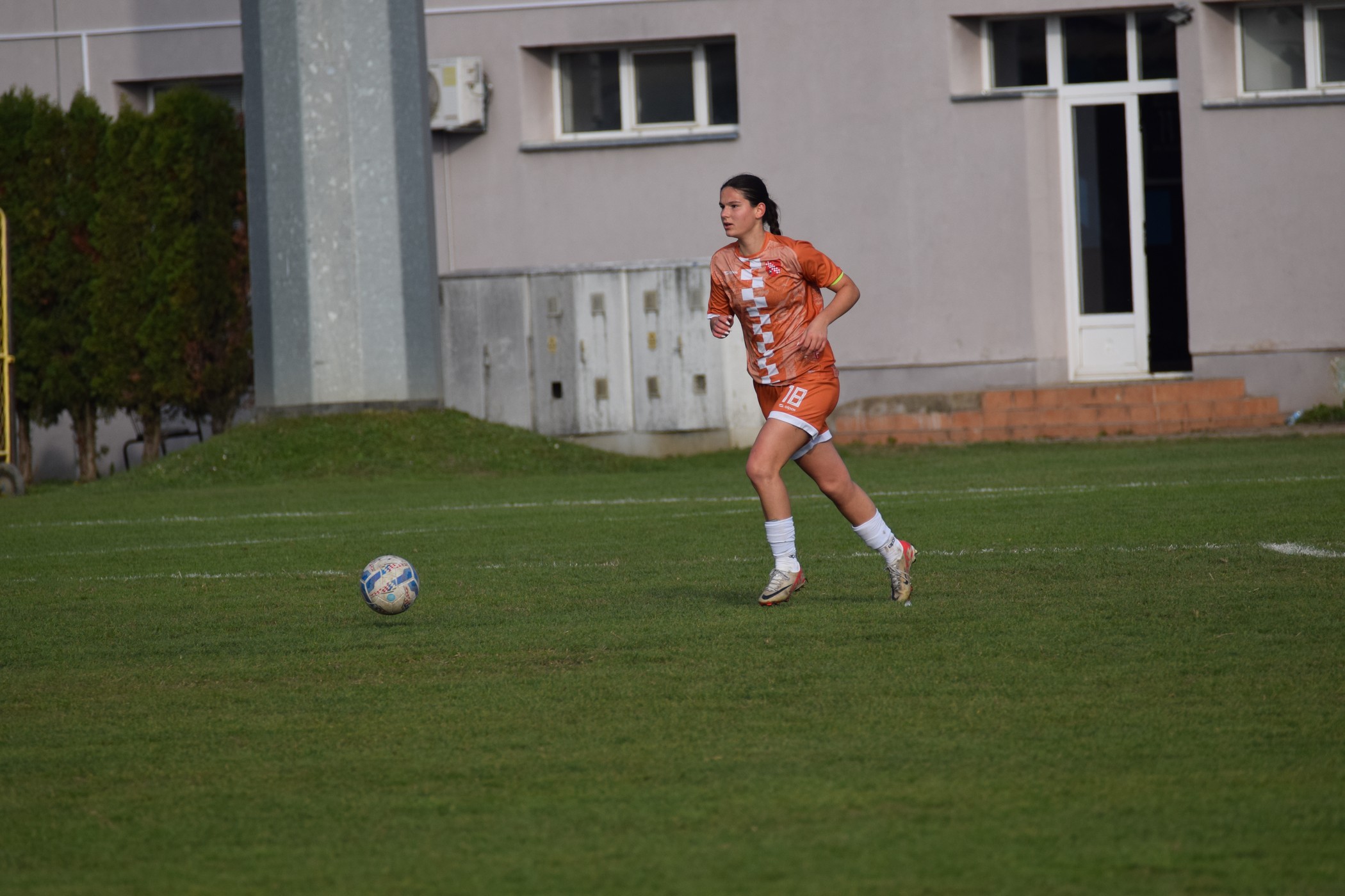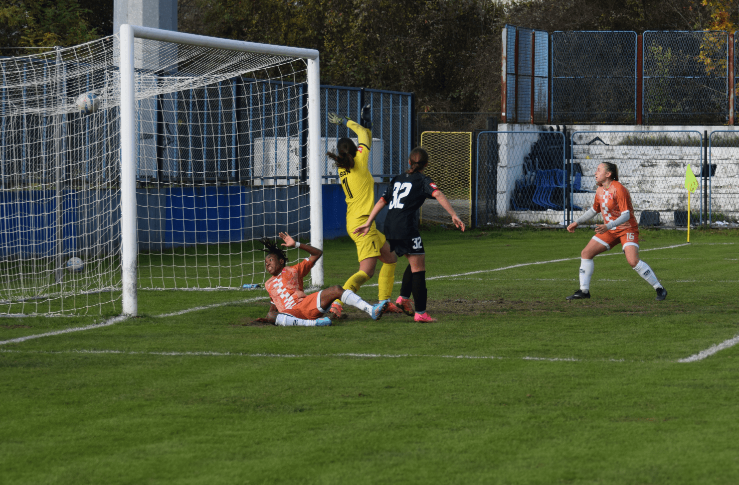 Nakon jedne dosta nespretne intervencije Anje Popović, koja je inače odigrala odličnu utakmicu i bila kao i uvijek stameni blok naše obrane ❤️, na lijevoj strani par metara u našoj polovici kod aut linije, gorička devetka je iščeprkala loptu