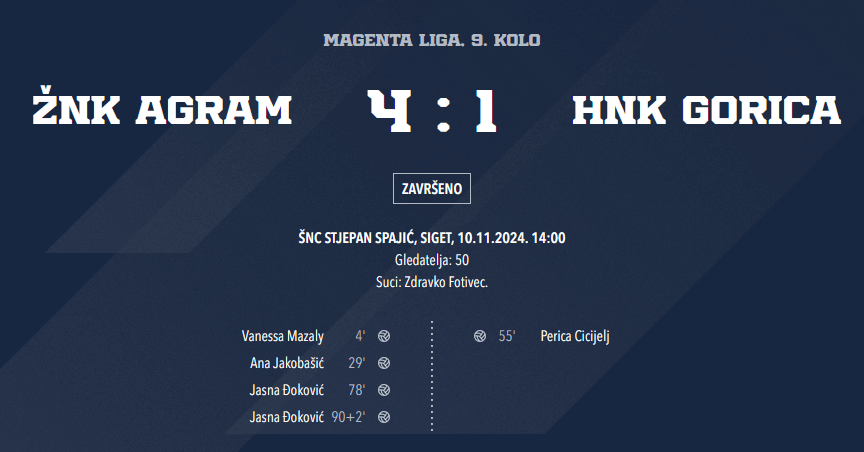Do kraja utakmice su Agramerke i dalje napadale, Kolčić + Došen lijevo te Resanović + Đoković desno su i dalje stvarali pritisak, i onda u sudačkoj nadoknadi, još jedan penal za Agram.