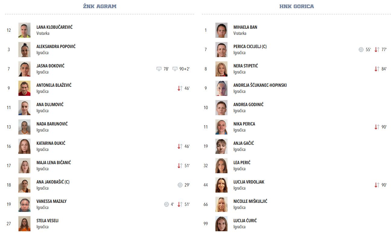 Početak drugog poluvremena je donio promjene u sastavu Agrama – ušle su Lea Kolčić i Lu umjesto Đukić i Blažević, i dok se nova postava još uigravala, Goričanke su postigle gol u 55. minuti.