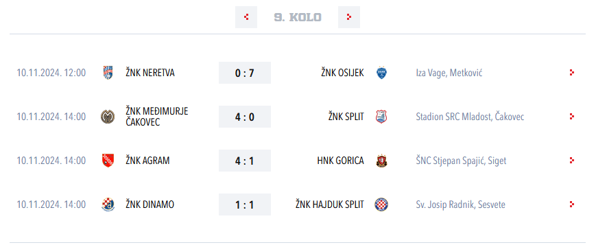 Evo i svih rezultata 9. kola.