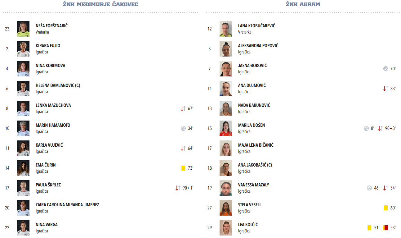 Od postignutog gola Mazaly u prvoj minuti, do prave momčadske reakcije na crveni karton Kolčić i gubitak jedne igračice, kad su Agramerke doista ubacile u višu brzinu i tako borbeno i junački parirale igračicama Međimurja da se skoro i nije vidjelo da ih je jedna manje na terenu, bilo je to poluvrijeme koje nije bilo lako gledati sa strane dok sam se trudio fotografirati ključne trenutke (u čemu sam čak bio i polovično uspješan), ali je to bilo 45 minuta (pa onda još bar +8 u nadoknadi) najboljeg što nogomet može ponuditi.
