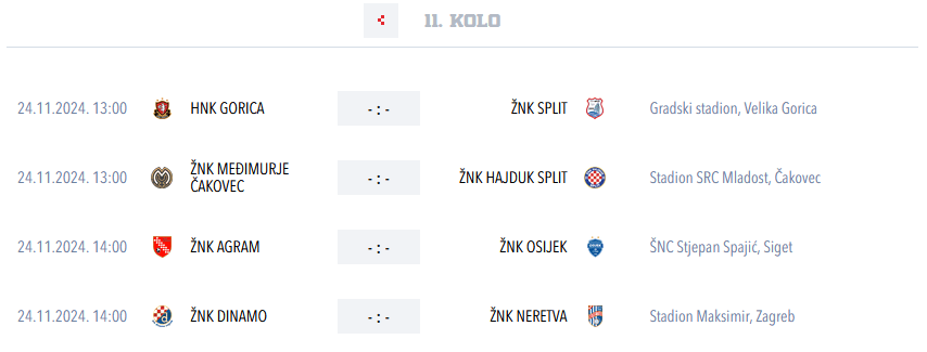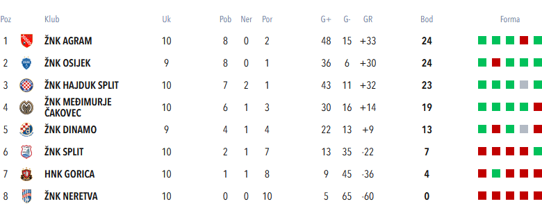 Prve četiri ekipe u direktnim dvobojima, pri čemu Agram protiv oslabljenog Osijeka traži svoju prvu povijesnu pobjedu u prvenstvu, dok se Međimurje protiv Hajduka nada priključiti vodećem triu u borbi za naslov prvaka (a Hajdučice naravno žele održati priključak s Agramom i Osijekom).