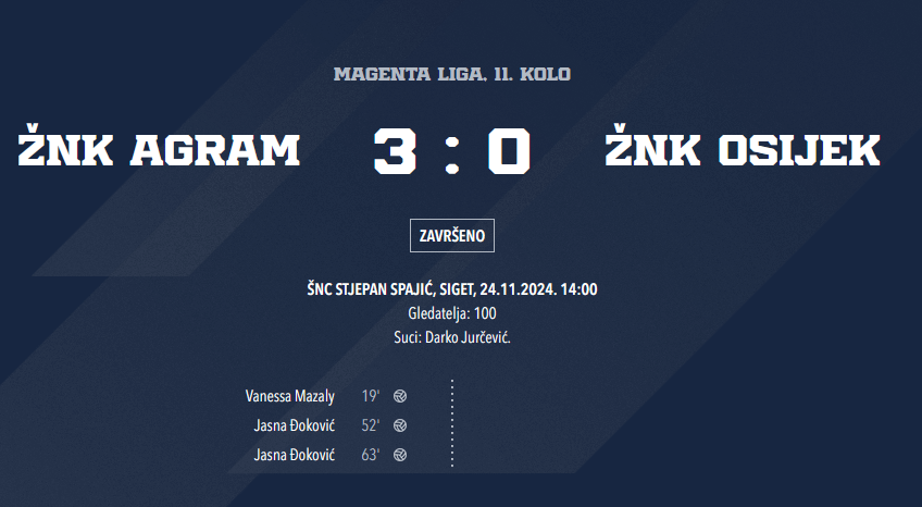 2 misli o “11. kolo Prve HNLŽ, Agram – Osijek 3 : 0, i PRVA POVIJESNA pobjeda 💪💪💪”