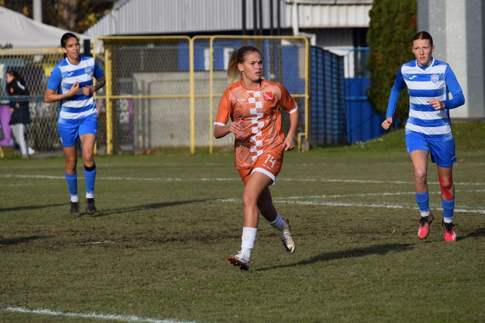 Marija Došen, koja je u suzama napustila teren u sudačkoj nadoknadi protiv Međimurja, se također čudesno rekuperirala i od 1.150 slika koje sam snimio, ona je bar na 70, u njenim neprestanim prodorima po lijevoj strani, uz asistenciju Stele Veseli, pouzdanoj na lijevom beku a koja se skoro i sama upisala u listu strijelaca nakon jednog odličnog, ali za dlaku nepreciznog, udarca glavom.