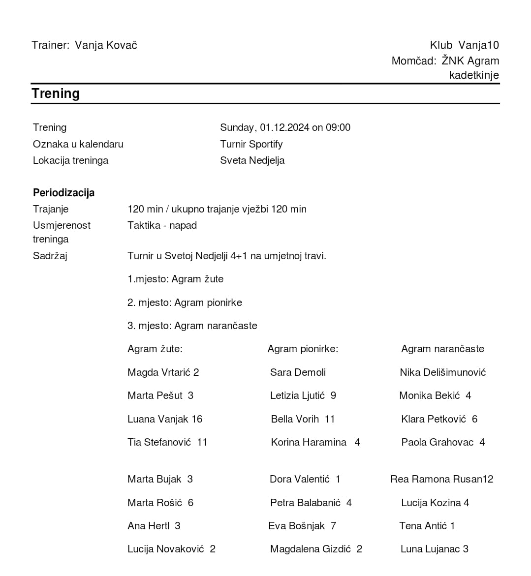 I rezultati svih utakmica Agramerki (uz zahvale treneru Vanji Kovaču na ovim slikama).