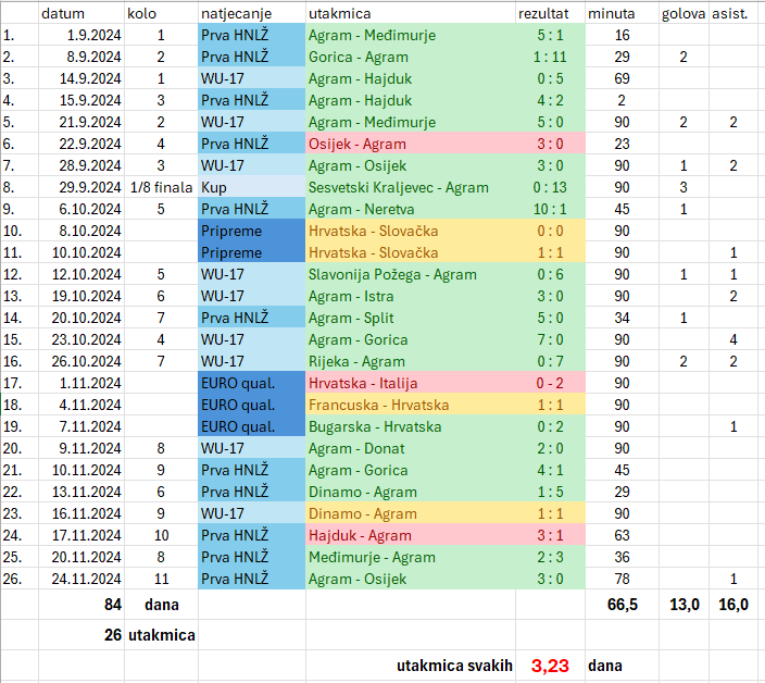 Post o čudesnih 36 dana tijekom kojih je Luana odigrala 14 utakmica sam objavio nekidan, a danas je na redu rekapitulacija kompletne polusezone, pa evo: U 84 dana od prve do zadnje utakmice, Lu je odigrala 26 utakmica, postigla 13 golova i imala 16 asistencija (actually, sigurno ih je bilo bar 2-3 više, recimo na … Nastavi čitati Rekapitulacije polusezone za moju Lu ❤️