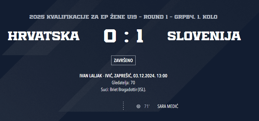 Nisu naše juniorke zaslužile izgubiti danas od Slovenije, u završnoj utakmici EURO kvalifikacija u B4 grupi Lige B, čime su ostale bez plasmana u Ligu A i bez šansi za plasman na EURO iduće godine, ali tako to nekad ispadne u nogometu.