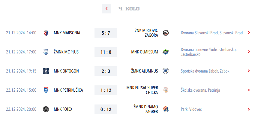 Tablica nakon četiri kola. Iščekuju se okršaji Dinamo – Alumnus i Alumnus – MC Plus (na rasporedu u idućem 5. kolu, koje će se igrati 5. siječnja) da vidimo do kraja kako stvari stoje.