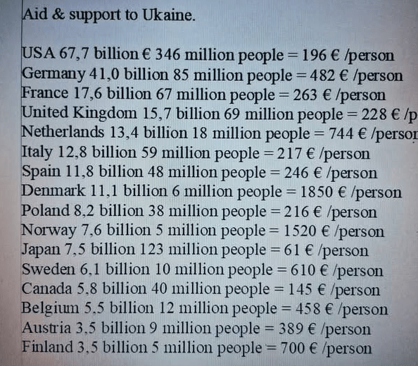 Koliko je koja država poslala pomoći Ukrajini! Da se zapiše za povijest. Podjeli ovo: Klikom podijelite na Facebooku(Otvara se u novom prozoru) Facebook Click to share on X(Otvara se u novom prozoru) X Lajk Učitavanje... Srodno Svijet