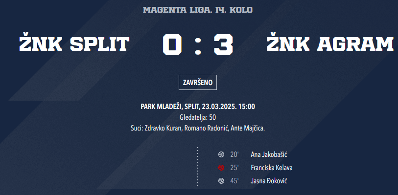 O utakmici nemam nikakvih saznanja, osim da mi je Lu prije utakmice javila “da je teren katastrofa” (a e, kišilo je u Dalmaciji 🙄), tako da se pobjeda 3 : 0 može smatrati solidnim uspjehom.