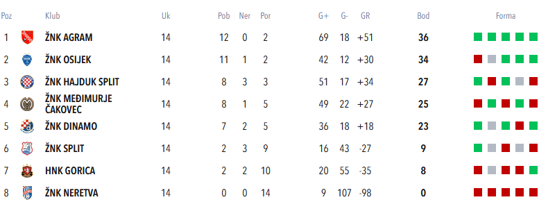 S četrnaestim kolom Prve HNLŽ (službeno Magenta lige), završio je njen prvi dio u kojem se osam klubova natjecalo za prva četiri mjesta i sve je bilo jasno još prošlo kolo – Dinamo je ispao u Ligu za bedake, zajedno sa Splitom, Goricom i Neretvom (koja je gotovo sigurni putnik u drugu ligu na kraju sezone), a za titulu prvaka će se boriti Agram, Osijek, Hajduk i Međimurje.