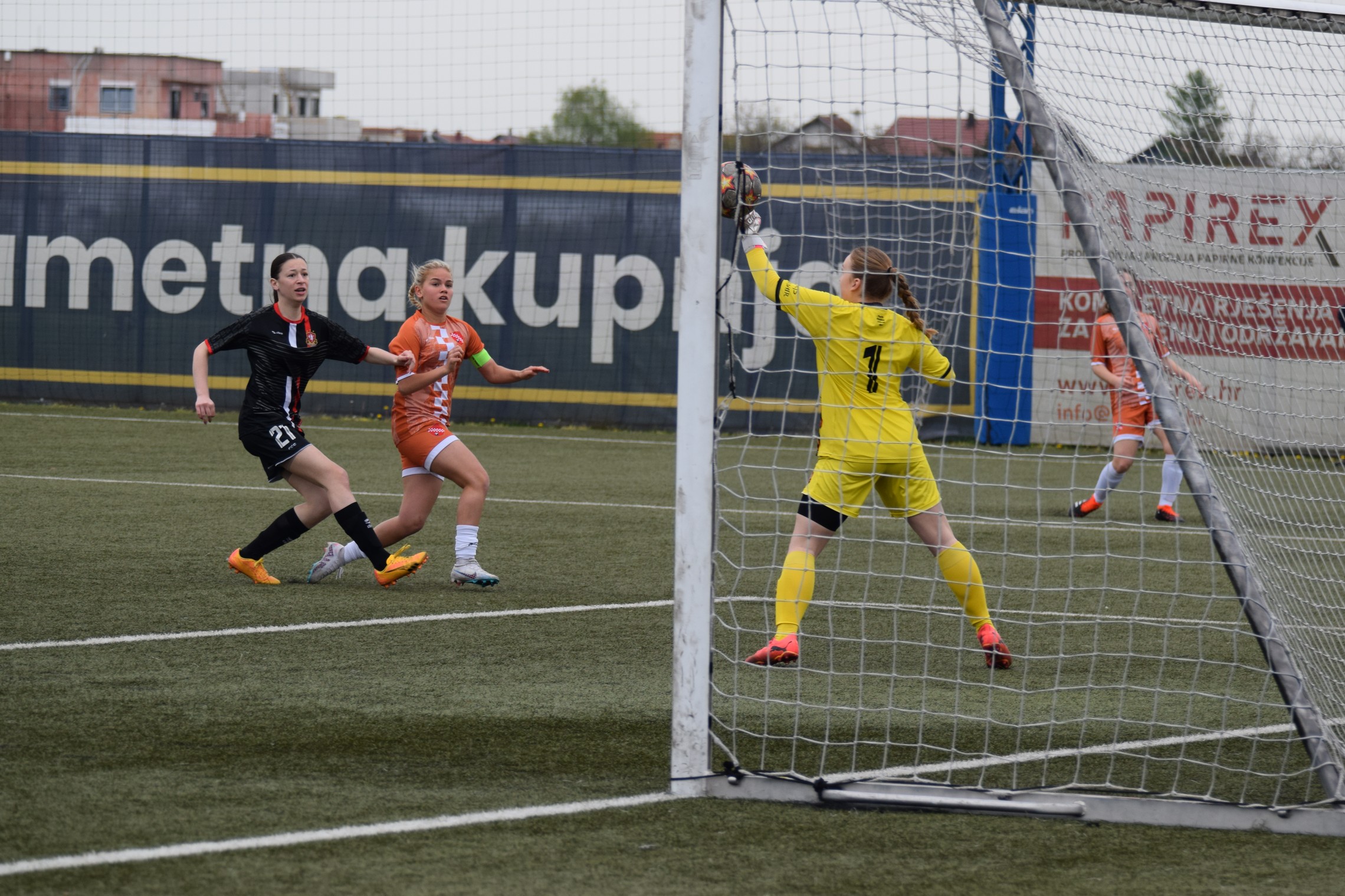 Ali udarac, koliko god je bio do kraja precizan, nije bio i dovoljno jak i golmanica je vrhunskom reakcijom taj udarac obranila!