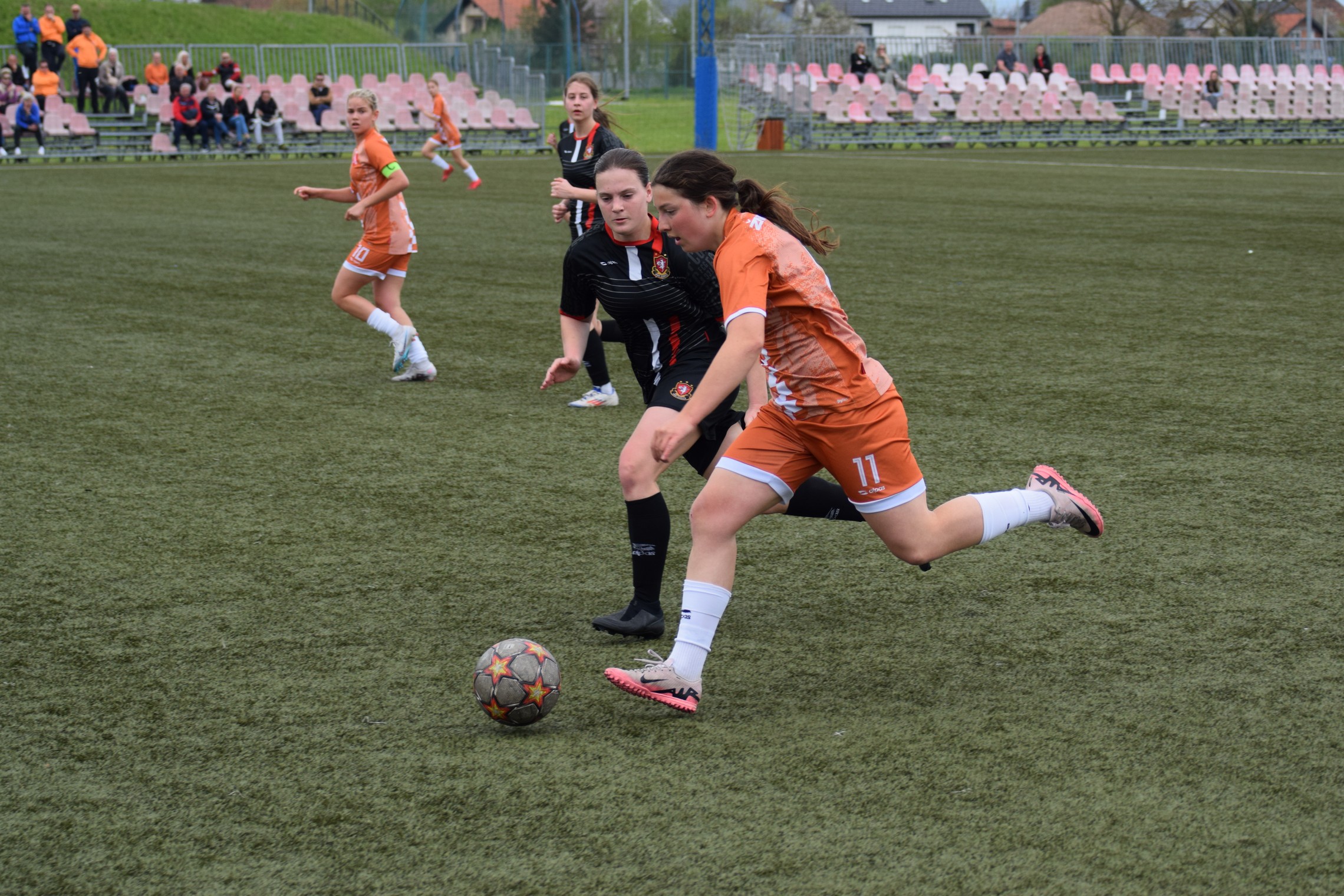 I onda u 43. minuti, jedan centaršut pogađa igračicu Gorice u ruku u kaznenom prostoru i to je jedanaesterac.