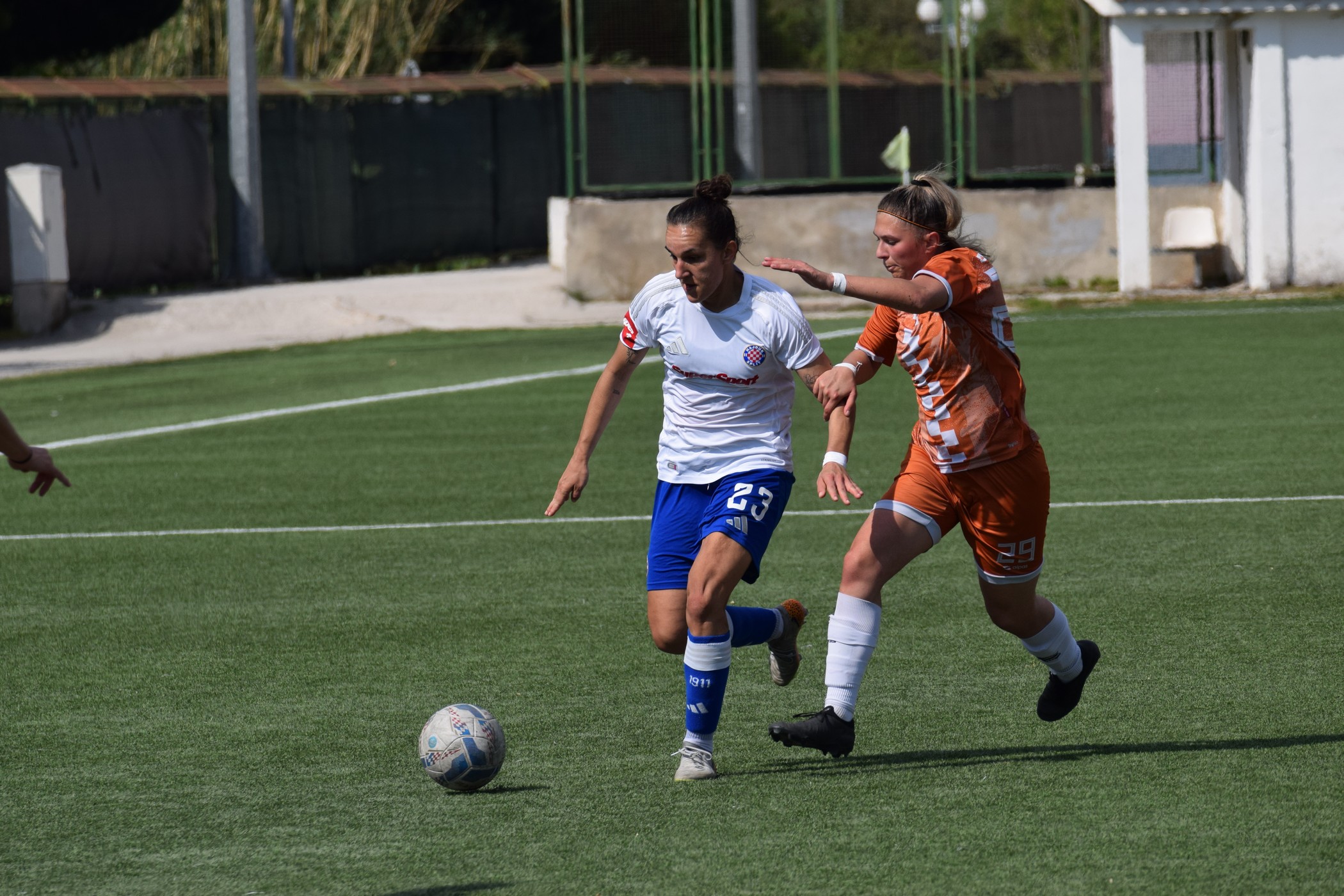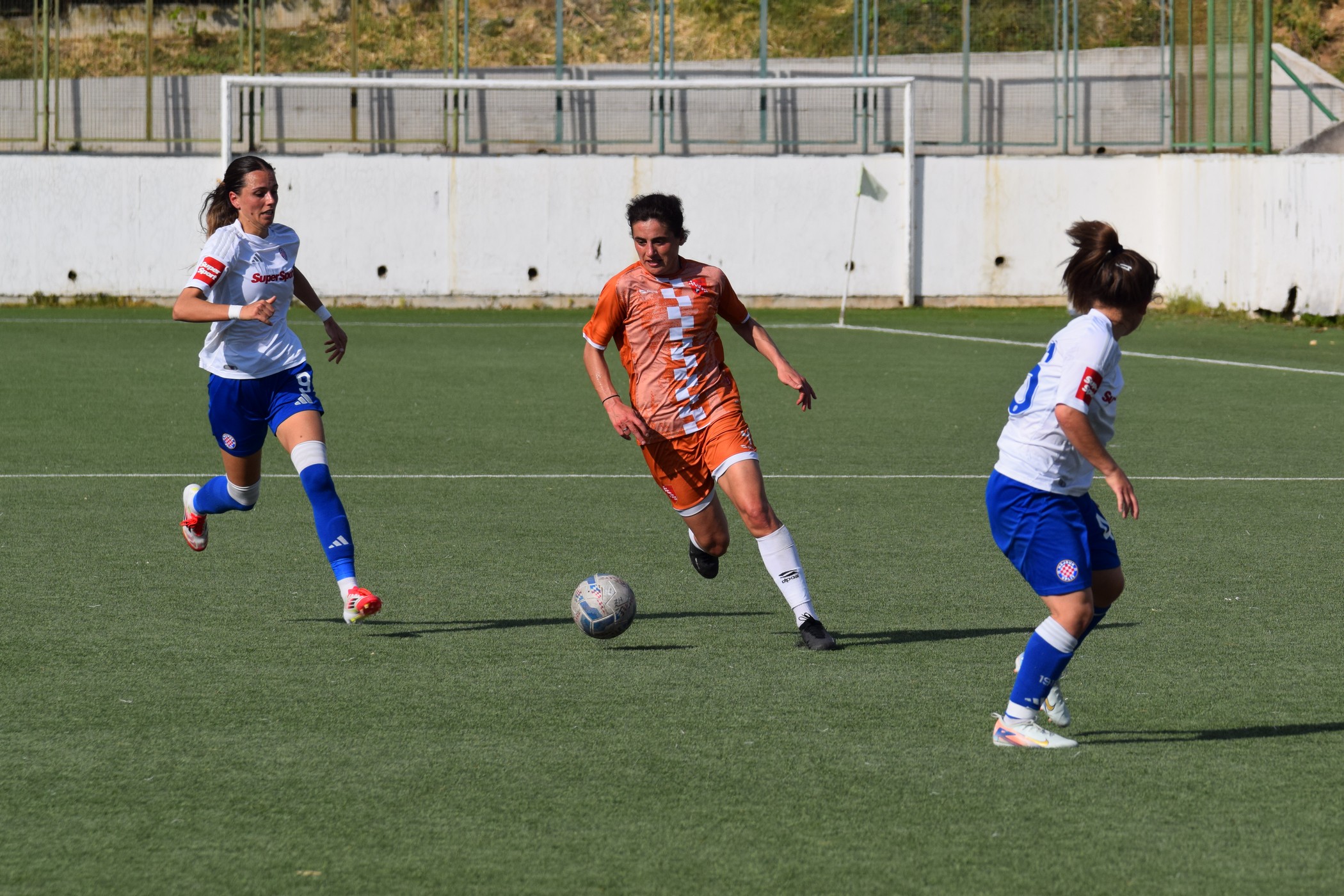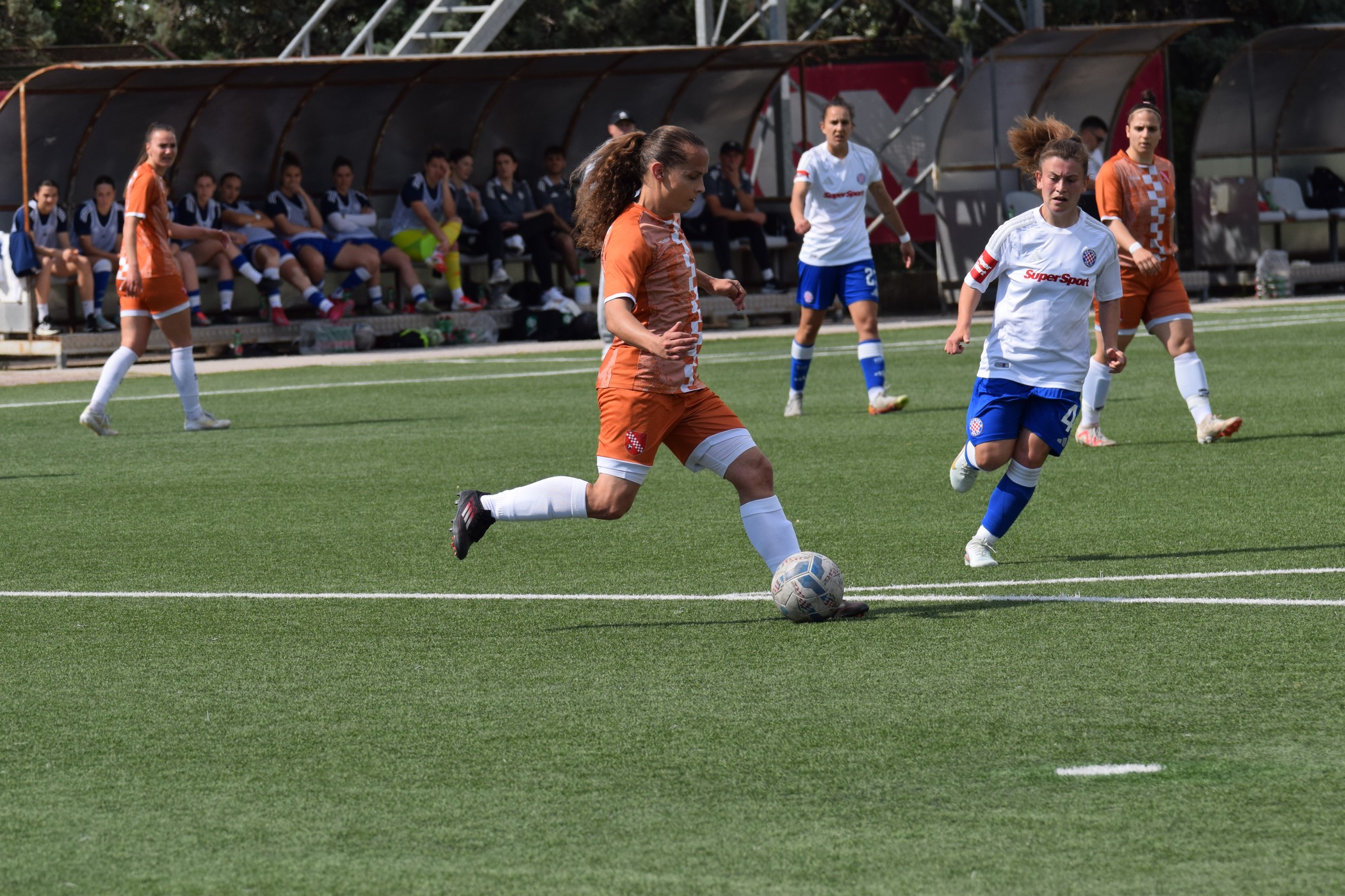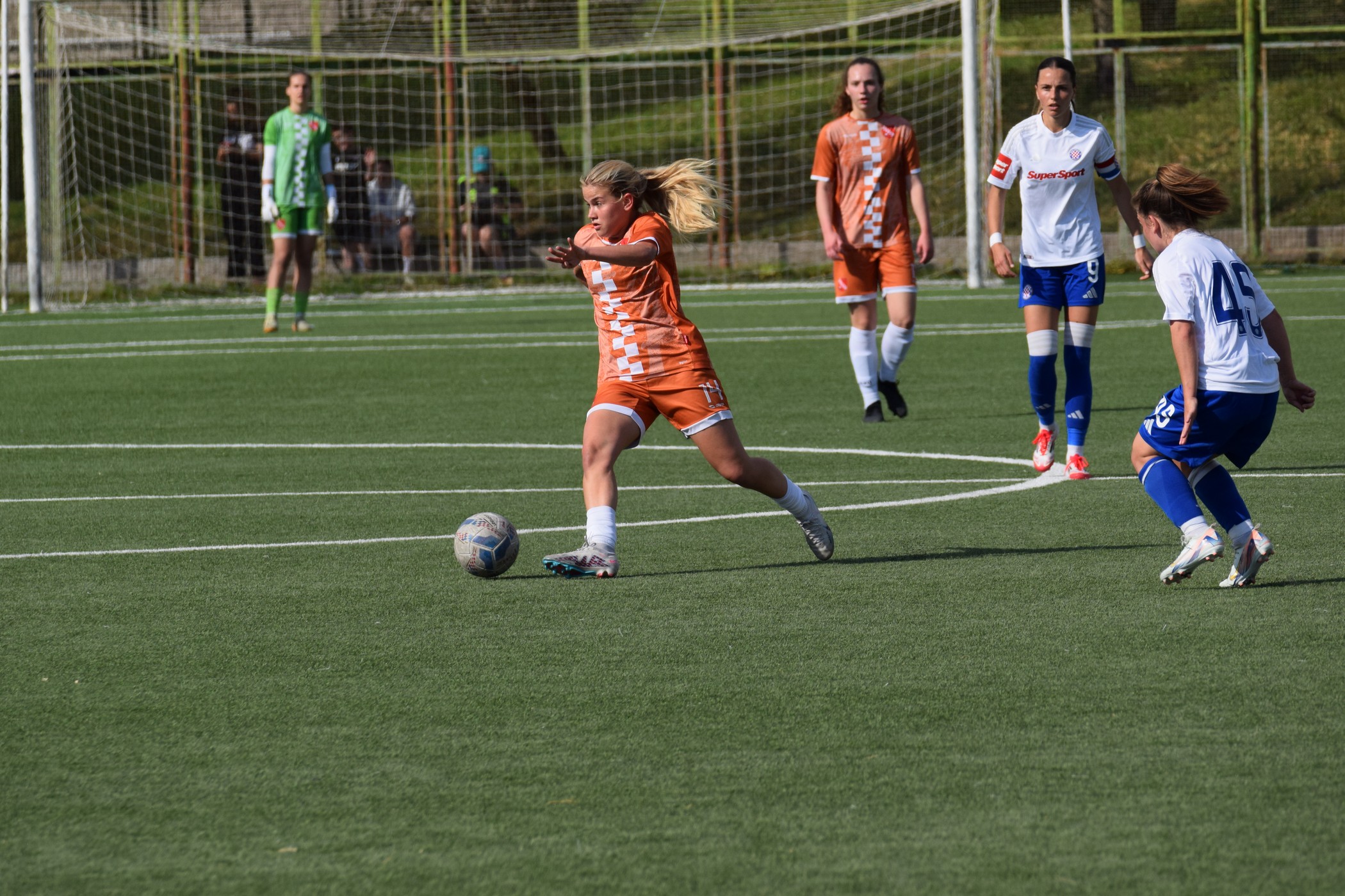 Prvih 25 minuta utakmice je proteklo u igri koja bi se uvjetno rečeno mogla opisati kao ravnopravna, ali se isto tako mora reći da su intenzitet i želja ekipe Hajduka bili bar duplo veći nego kod Agramerki čime su Hajdučice i više nego nadoknađivale veću “individualnu nogometnu klasu” igračica Agrama.
