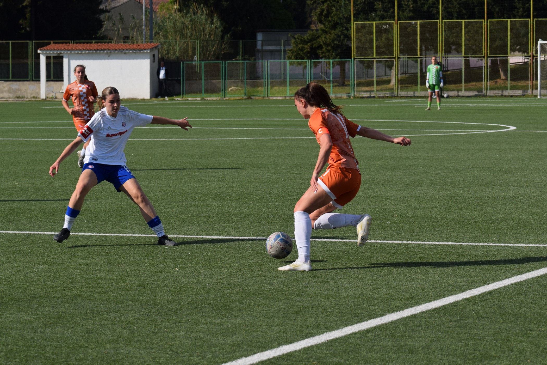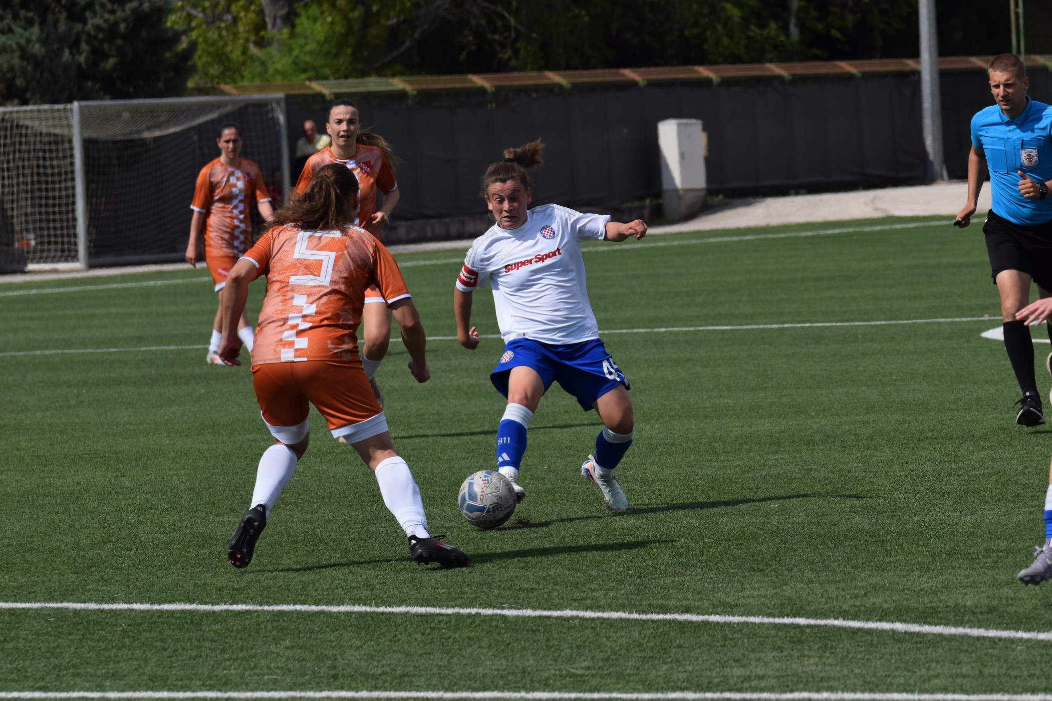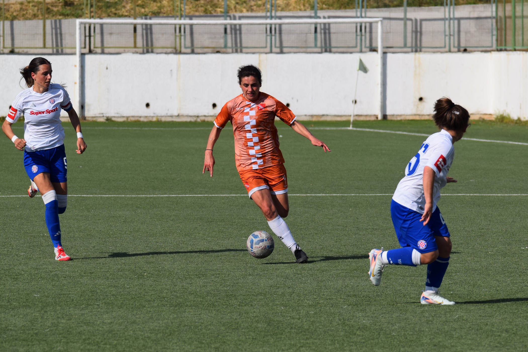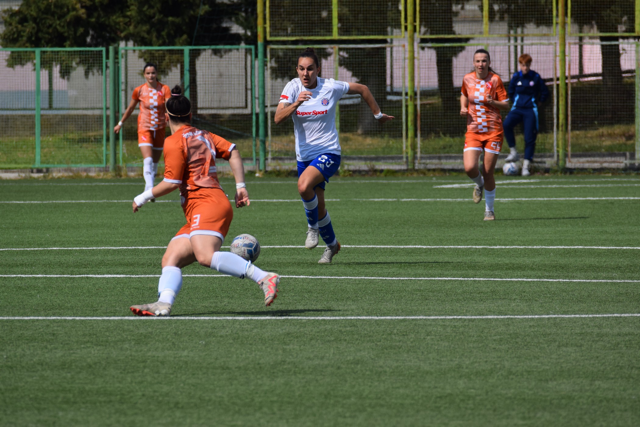 Prvih 25 minuta utakmice je proteklo u igri koja bi se uvjetno rečeno mogla opisati kao ravnopravna, ali se isto tako mora reći da su intenzitet i želja ekipe Hajduka bili bar duplo veći nego kod Agramerki čime su Hajdučice i više nego nadoknađivale veću “individualnu nogometnu klasu” igračica Agrama.