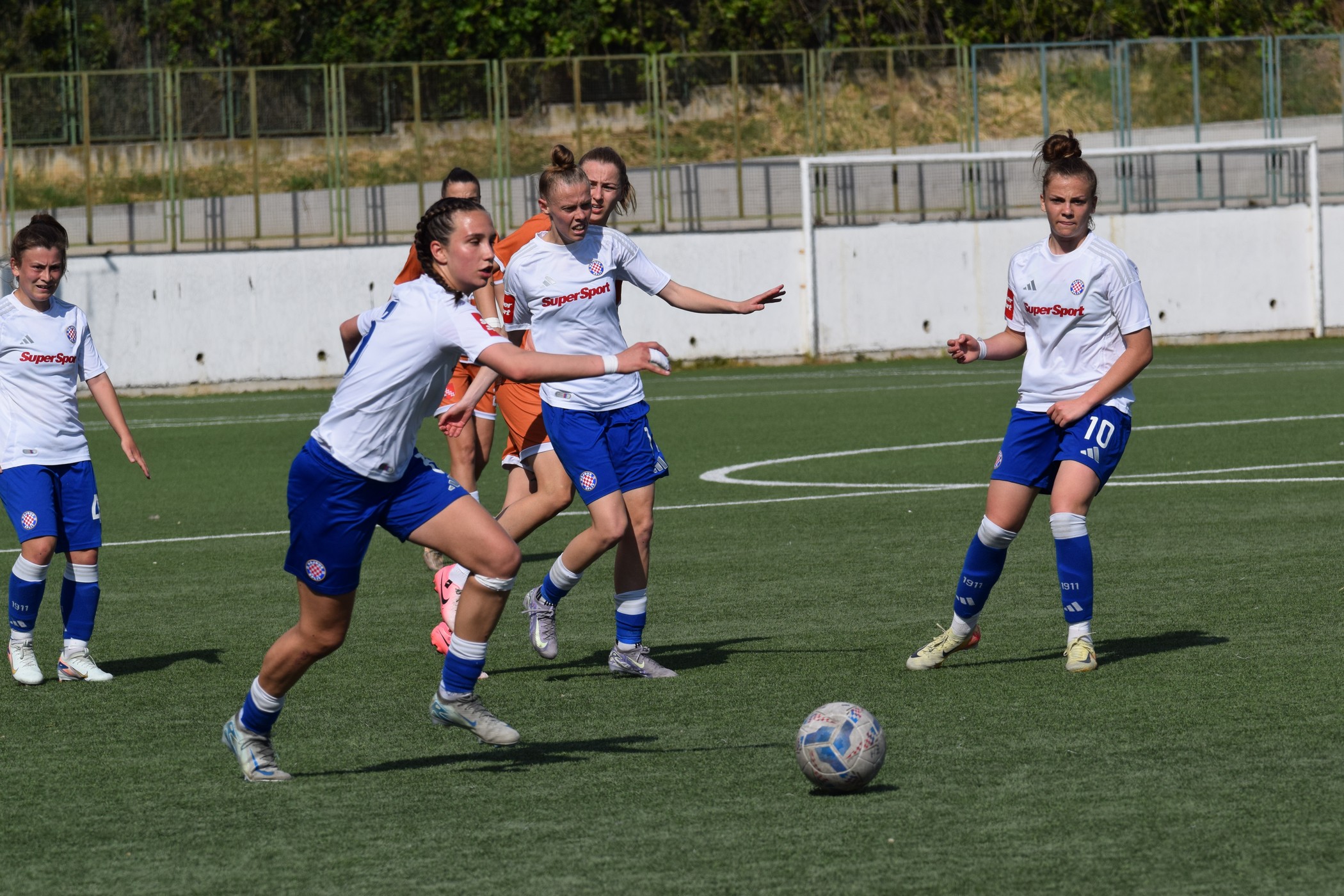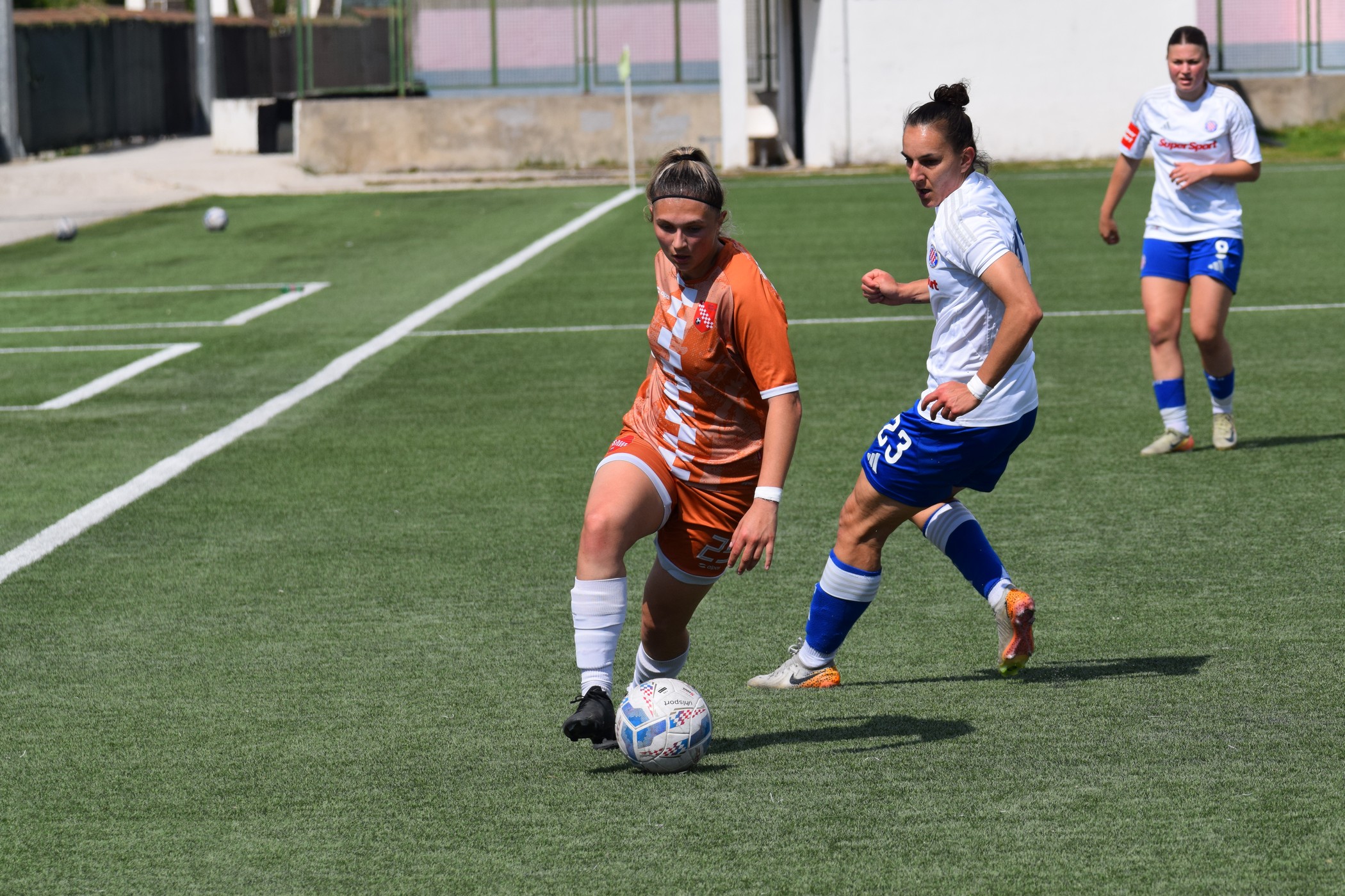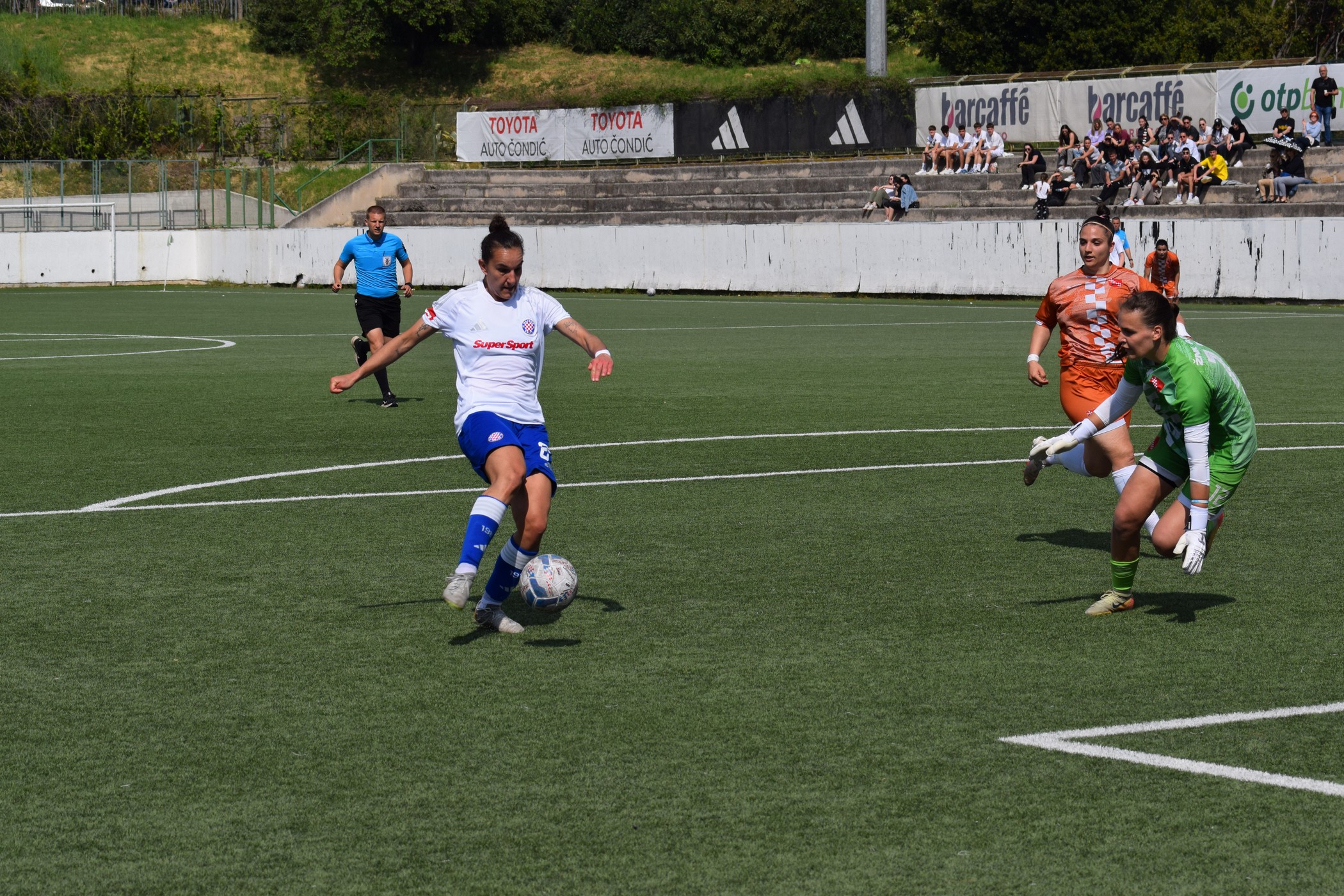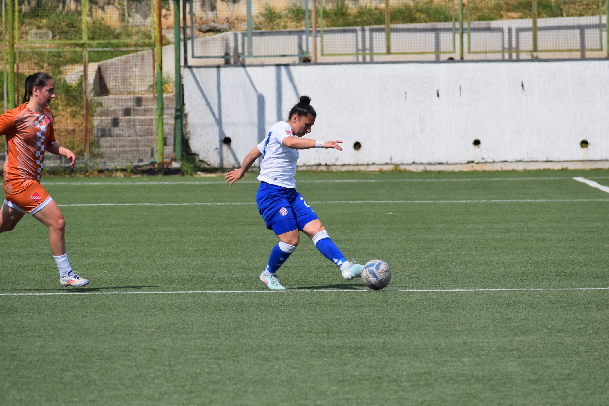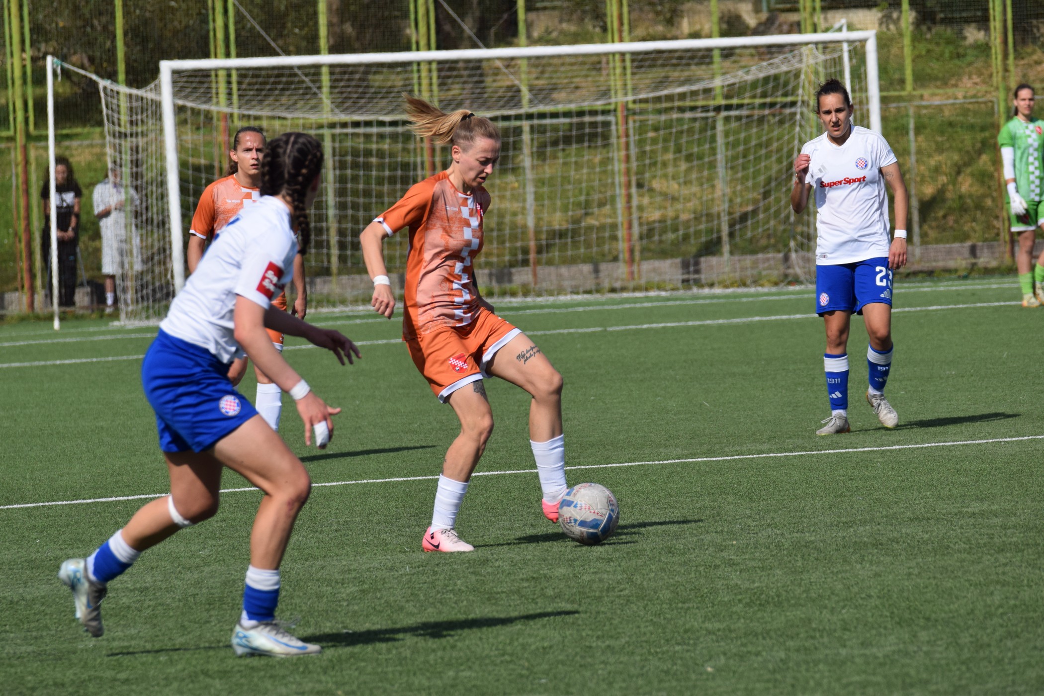 Prvih 25 minuta utakmice je proteklo u igri koja bi se uvjetno rečeno mogla opisati kao ravnopravna, ali se isto tako mora reći da su intenzitet i želja ekipe Hajduka bili bar duplo veći nego kod Agramerki čime su Hajdučice i više nego nadoknađivale veću “individualnu nogometnu klasu” igračica Agrama.