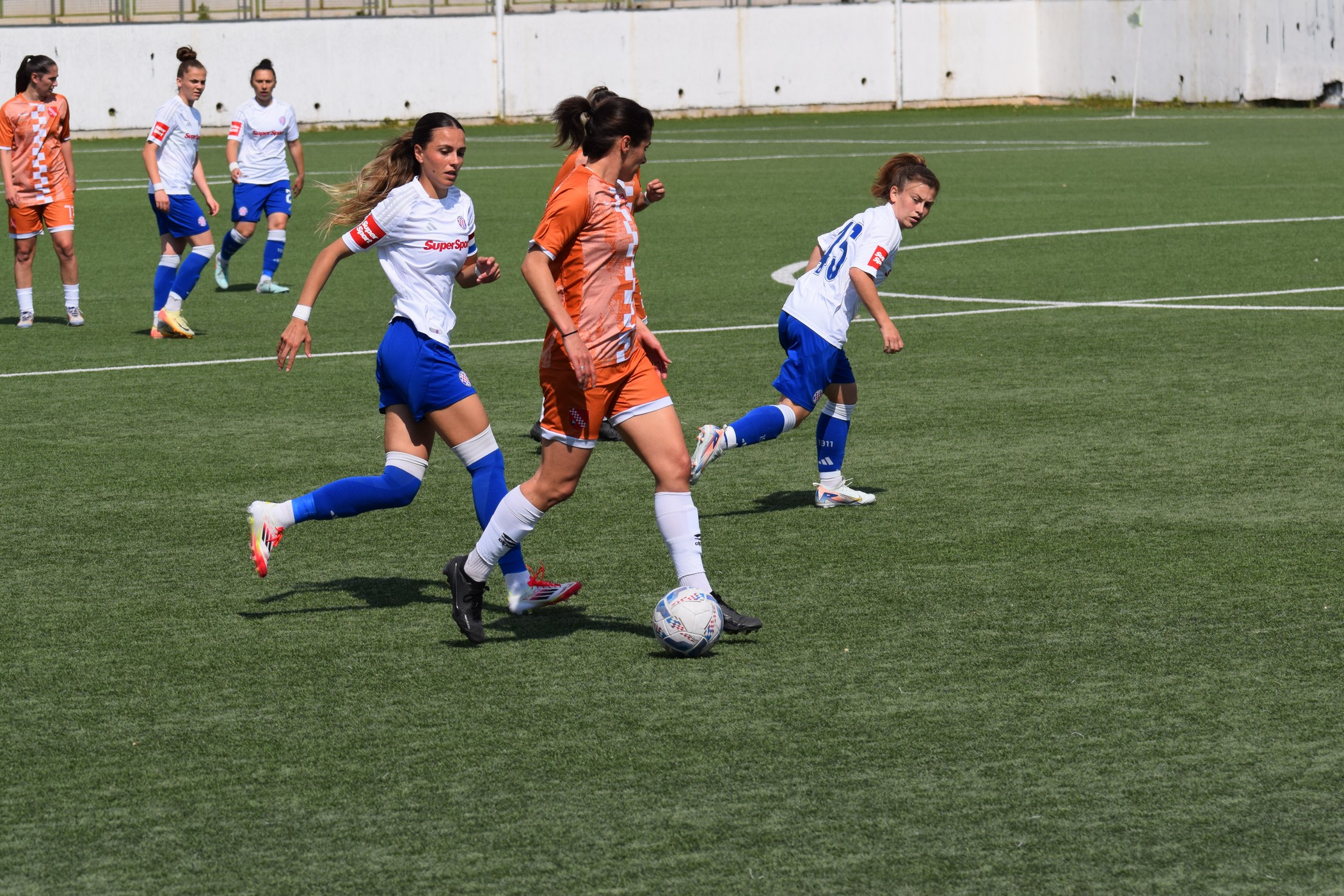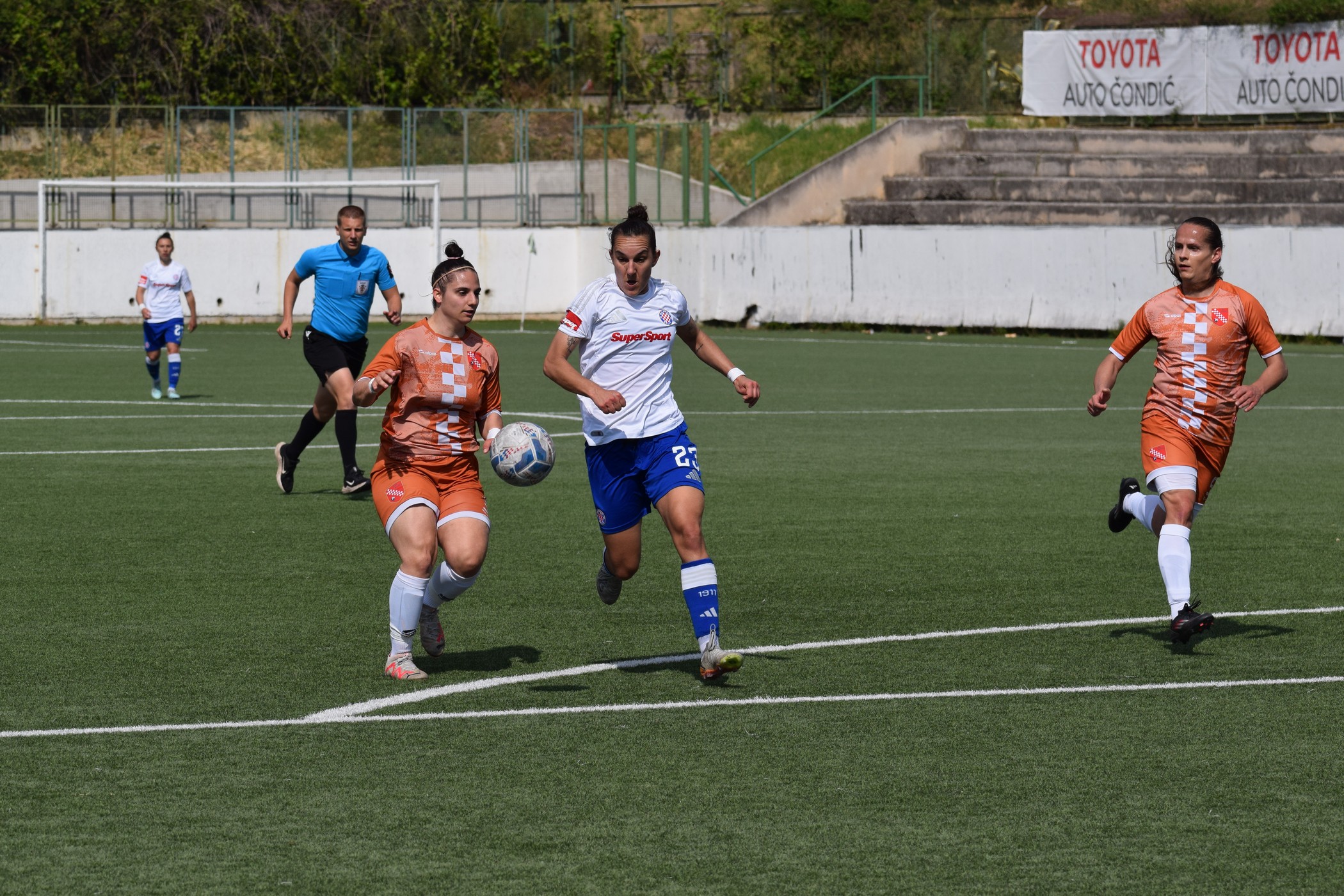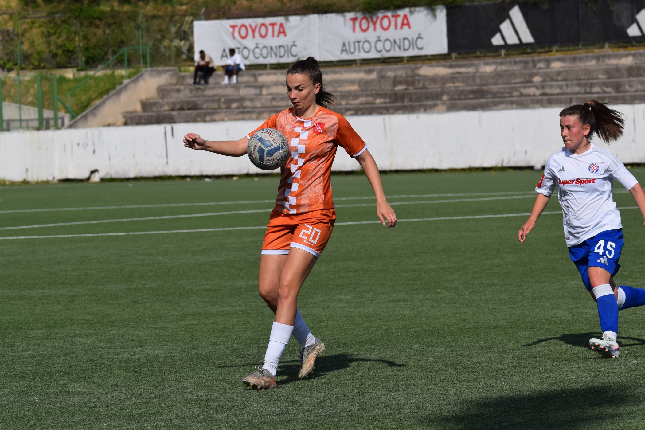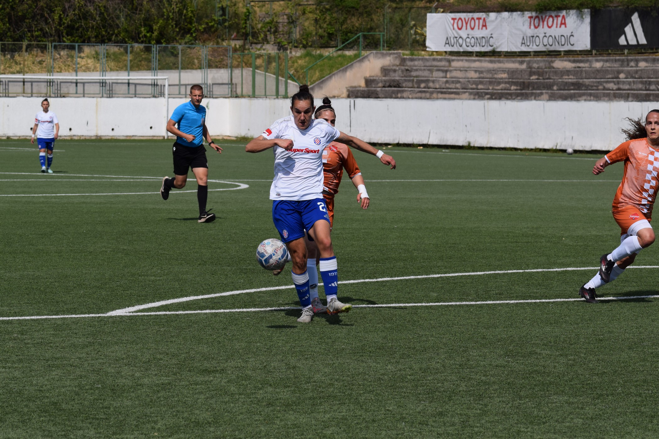 Prvih 25 minuta utakmice je proteklo u igri koja bi se uvjetno rečeno mogla opisati kao ravnopravna, ali se isto tako mora reći da su intenzitet i želja ekipe Hajduka bili bar duplo veći nego kod Agramerki čime su Hajdučice i više nego nadoknađivale veću “individualnu nogometnu klasu” igračica Agrama.
