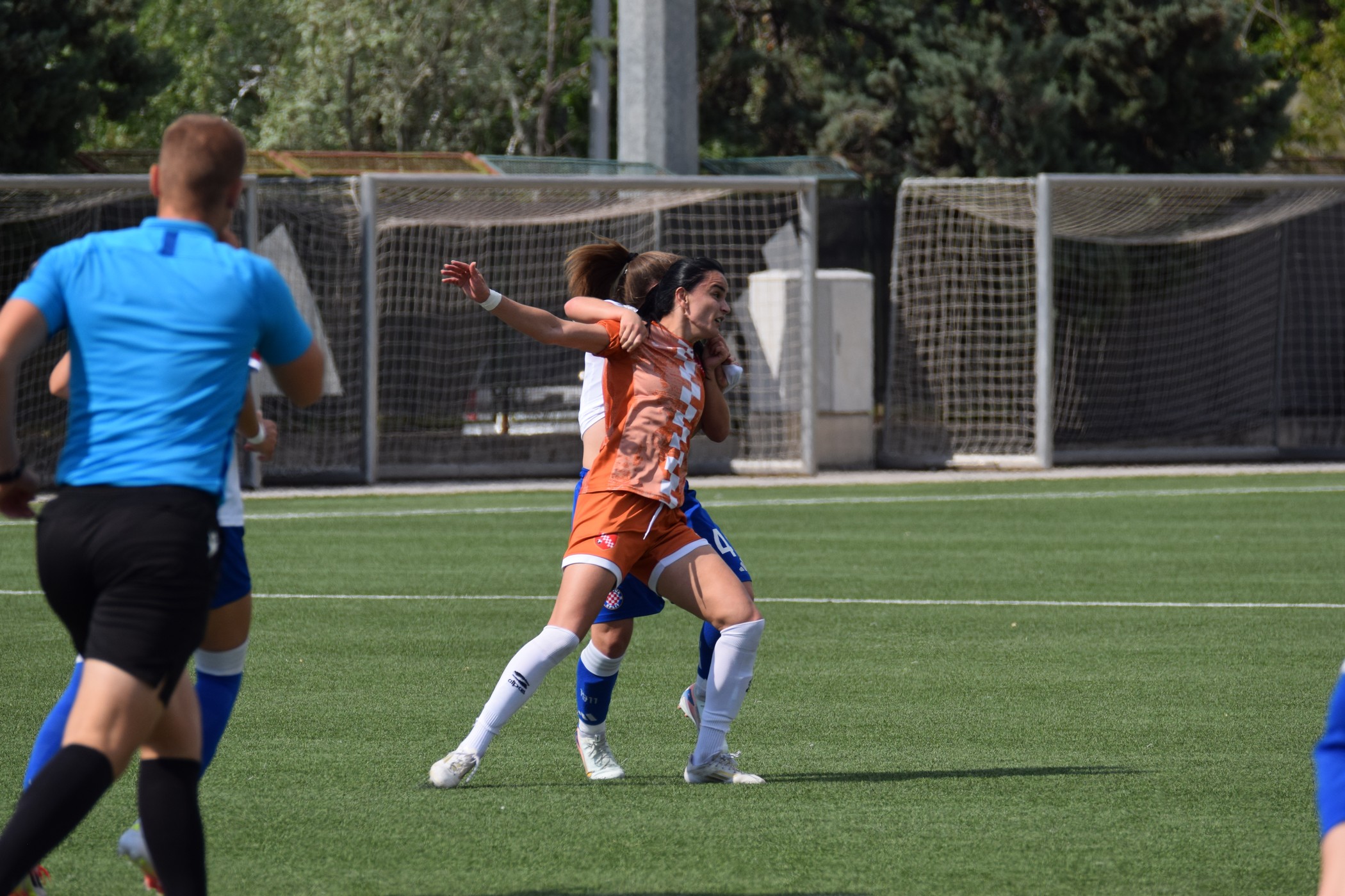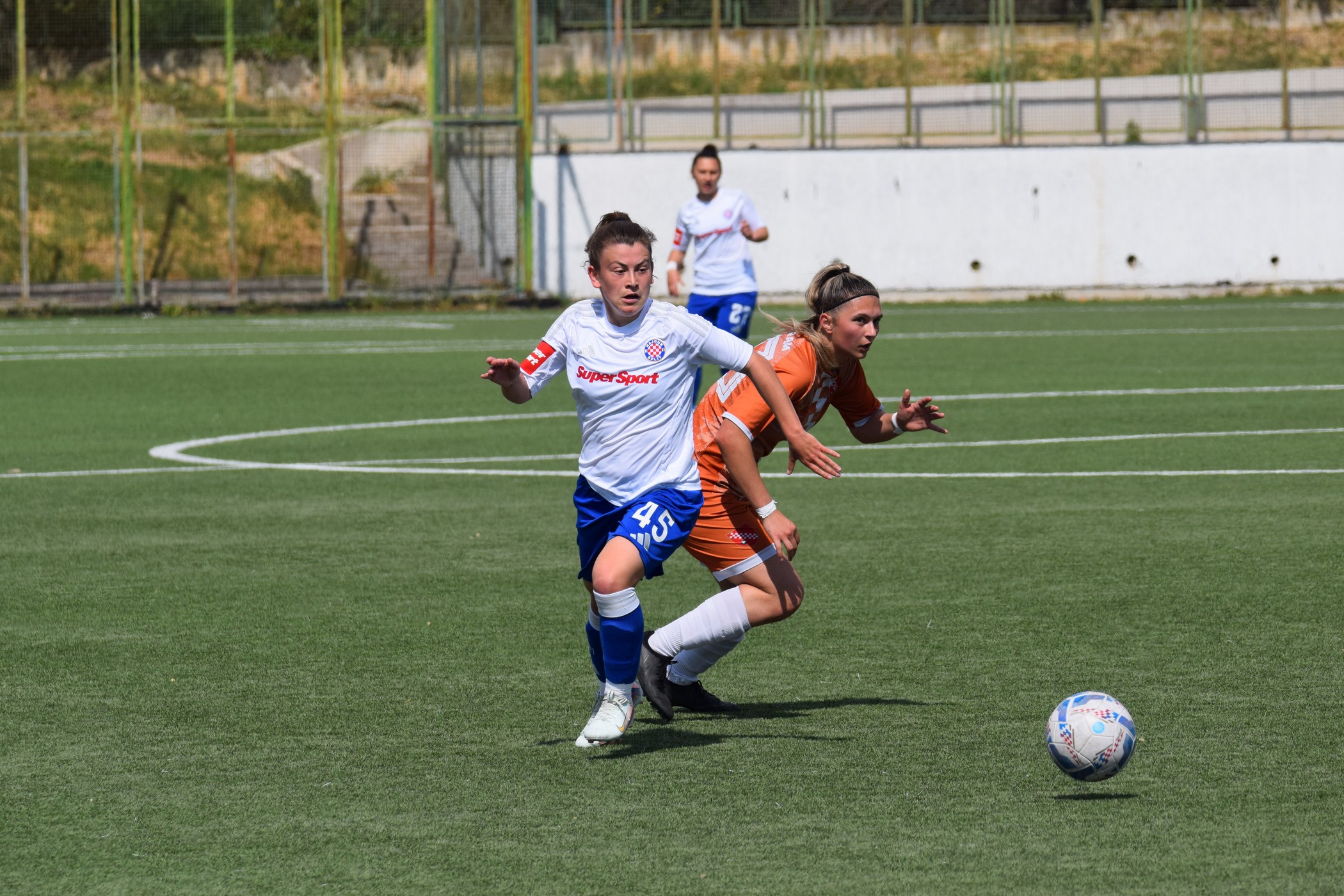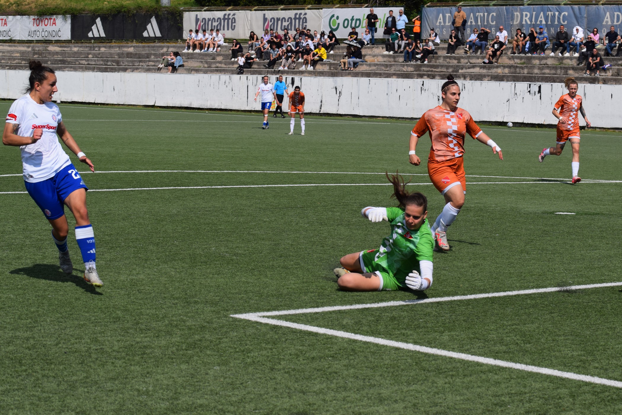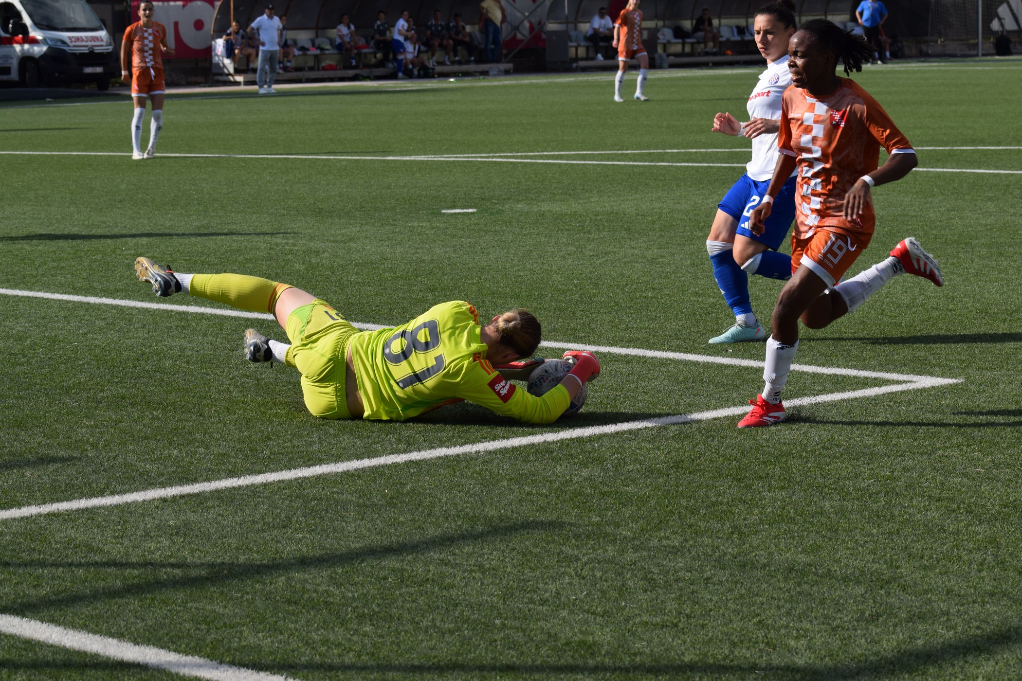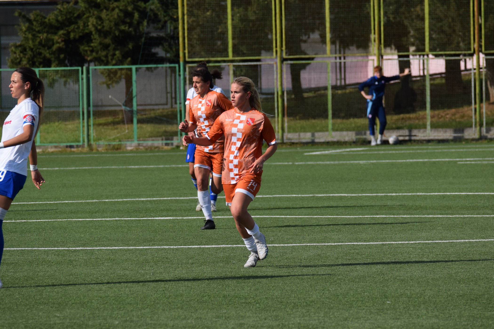 Janja Čanjevac prodire po lijevoj strani i upućuje odličnu loptu za Andreu Grebenar koja je u prodoru u Agramovom šesnaestercu, ali je u stopu prati Marija Došen i u duelu joj izbija loptu, no Marija pada a Andrea ostaje na nogama, uočava Antonelu Blažević samu kao duh na deset metara i odigrava savršeno dodavanje … no Blaška puca visoooooko preko vrata.