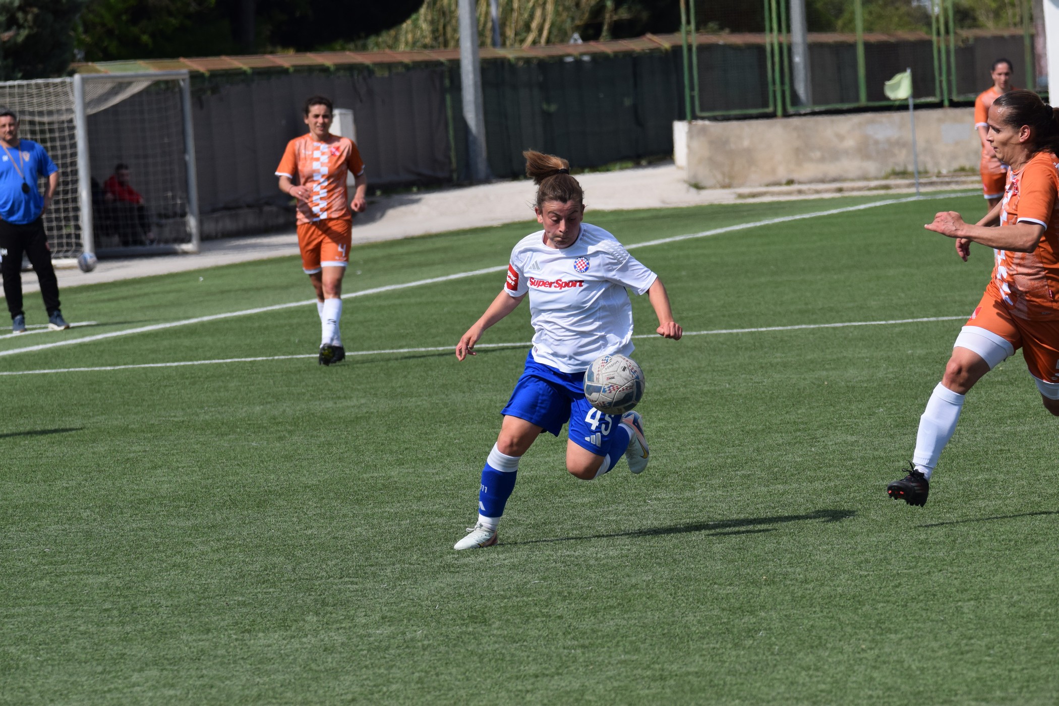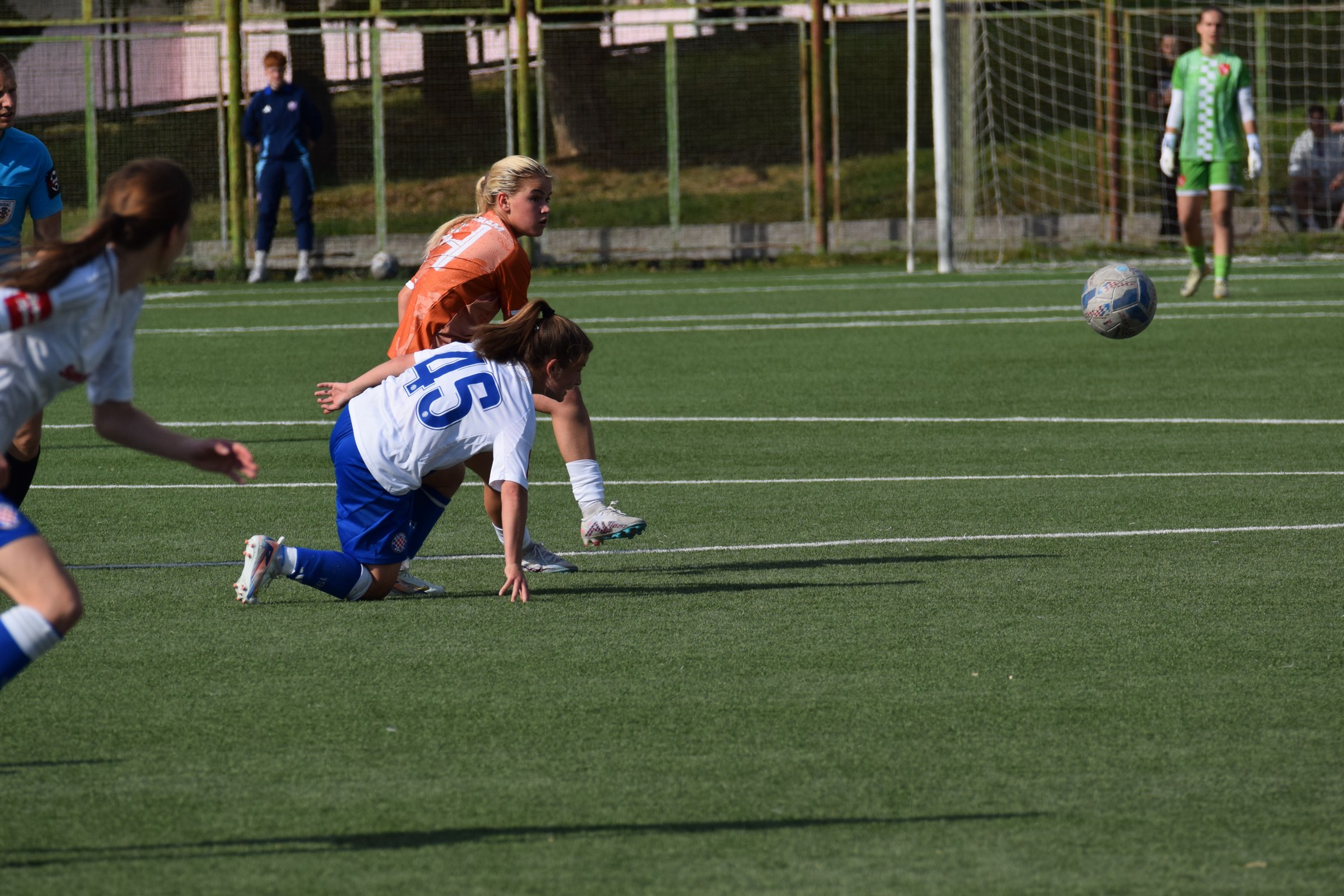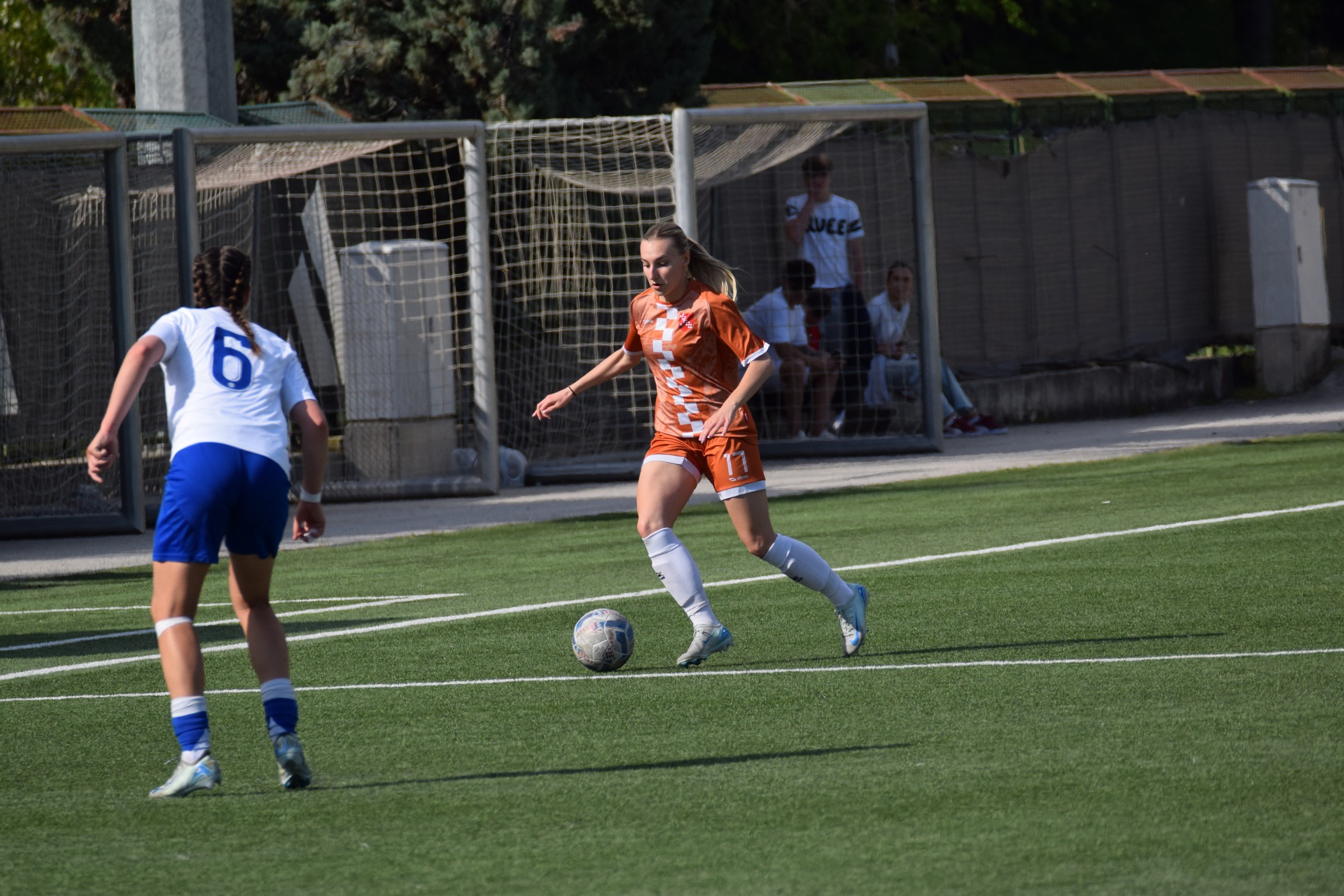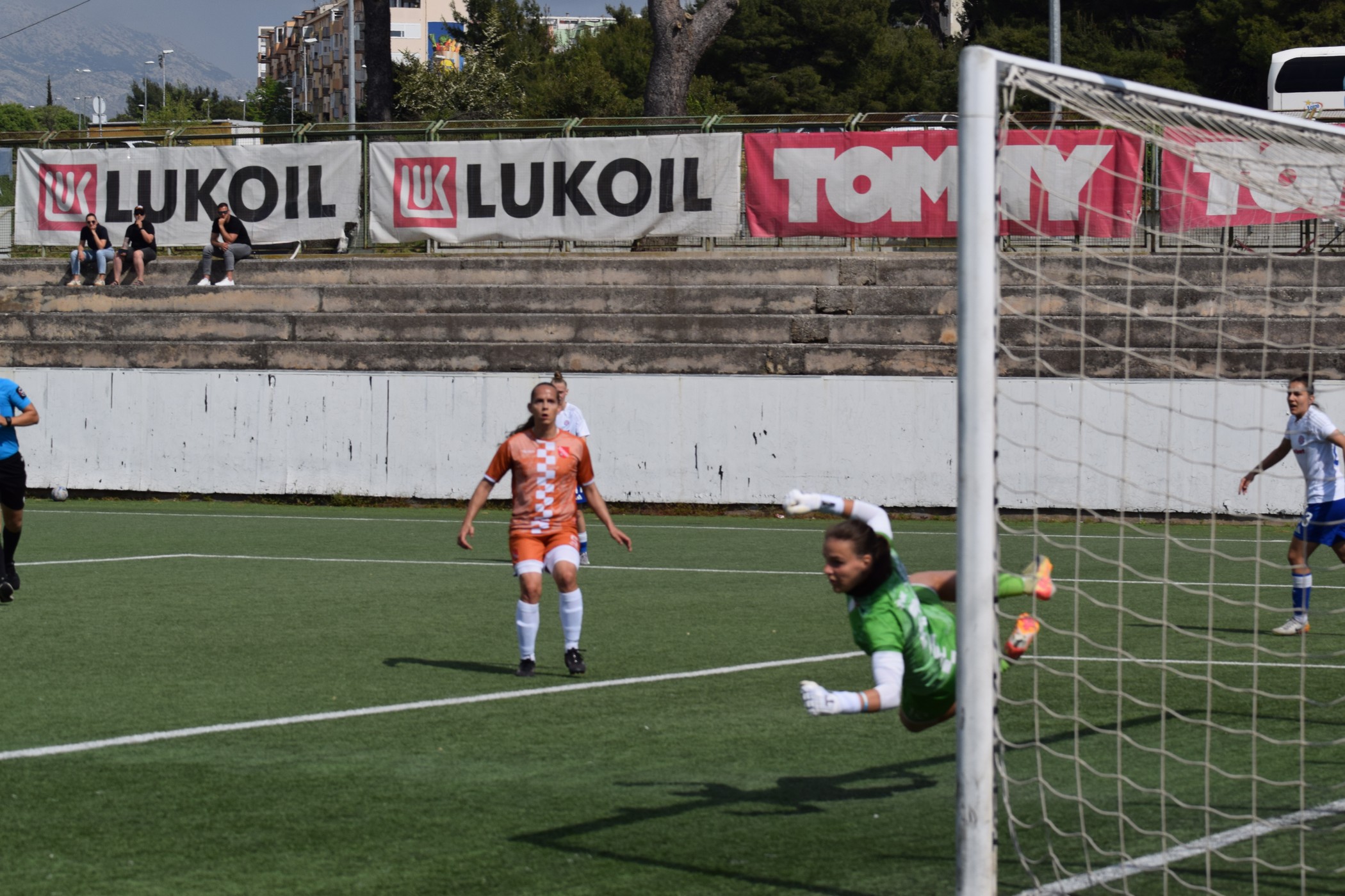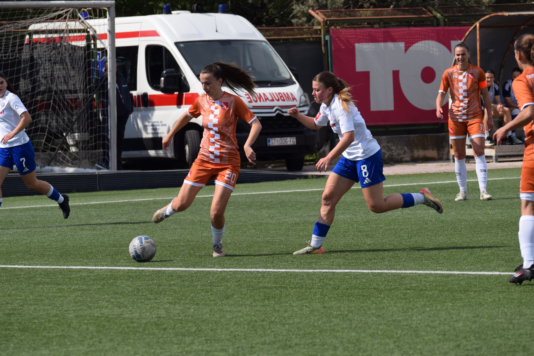 Janja Čanjevac prodire po lijevoj strani i upućuje odličnu loptu za Andreu Grebenar koja je u prodoru u Agramovom šesnaestercu, ali je u stopu prati Marija Došen i u duelu joj izbija loptu, no Marija pada a Andrea ostaje na nogama, uočava Antonelu Blažević samu kao duh na deset metara i odigrava savršeno dodavanje … no Blaška puca visoooooko preko vrata.
