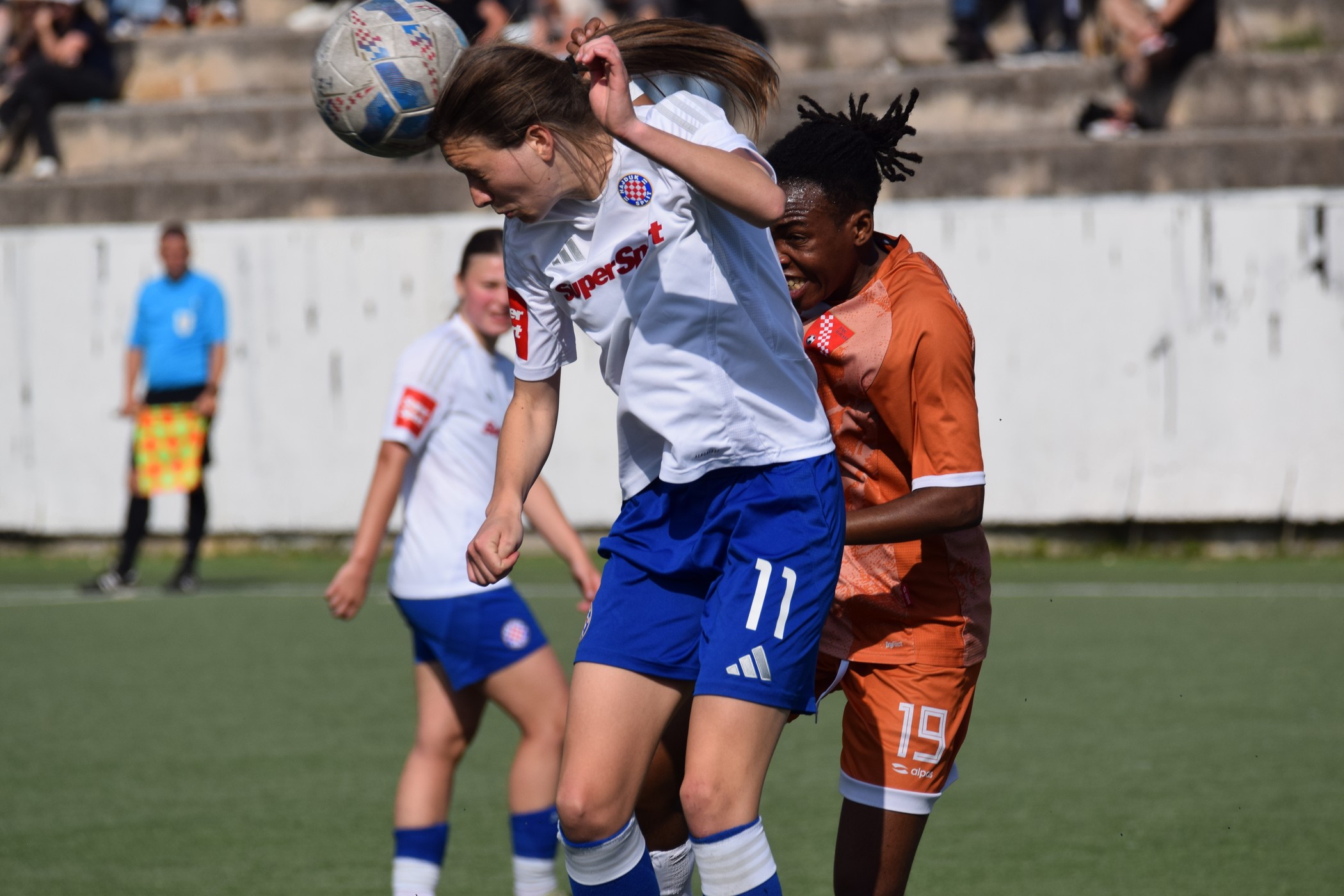 Na lijevoj strani je Stela zajedno s Dujmi stvarala poprilično kaosa, i imala nekoliko odlični prodora i nabačaja, Mazaly se okomito zabijala kao osica u obranu Hajduka (a meni je na pameti što bi bilo da je recimo Mazaly igrala prvo poluvrijeme, dok je Hajduk pritiskao i ostavljao puno više prostora u svojoj obrani 🤔), a i moja Lu je bila odlična ❤️. Standardno intenzivna u svim duelima, precizna u dodavanju lopte, i nije me nimalo začudilo kad mi je rekla da su je svi pohvalili nakon utakmice.