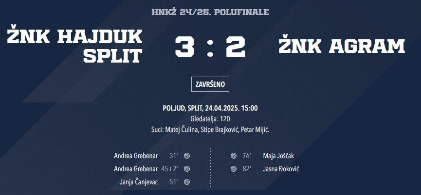 2 misli o “Polufinale Kupa, ŽNK Hajduk – ŽNK Agram 3 : 2”