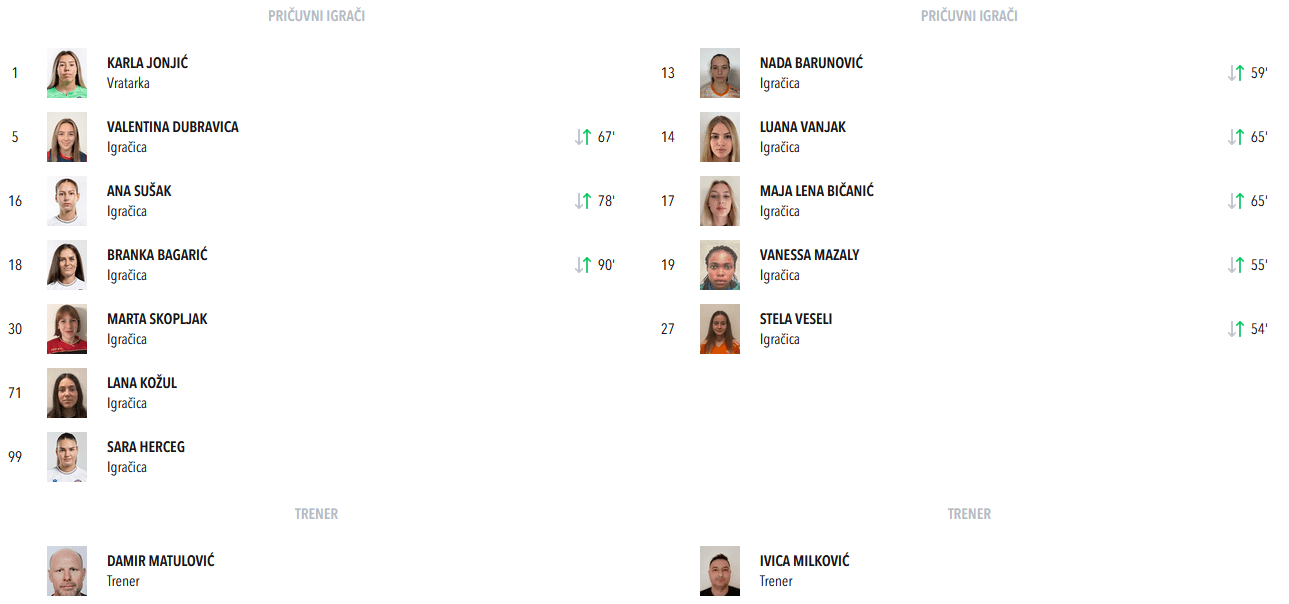 U 54′ su Stela i Mazaly zamijenile Lojnu i Došen, u 59′ je ušla Nada umjesto Popović, i za kraj su u 65′ ušle Lu i Maja umjesto Kolčić i Bulut.