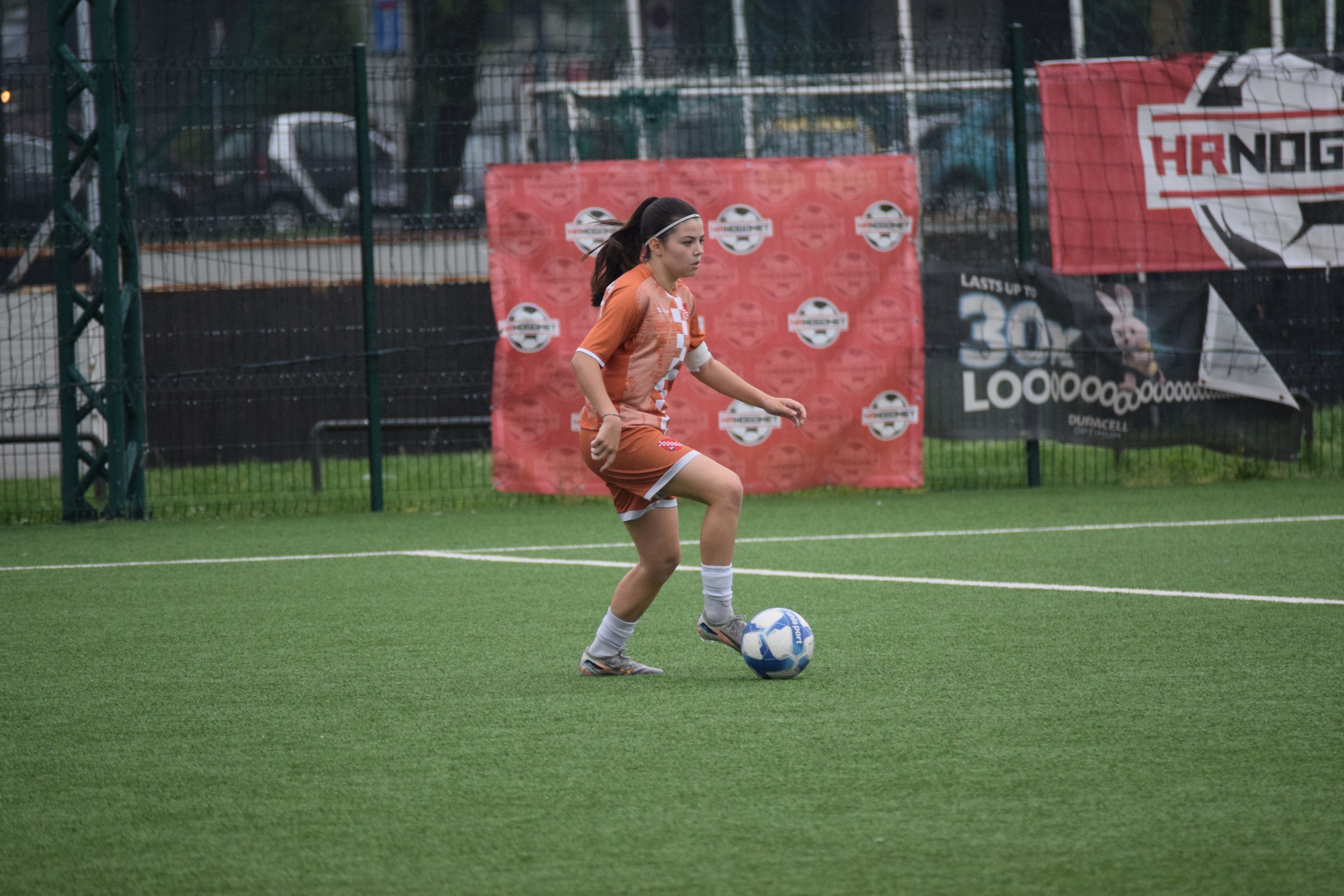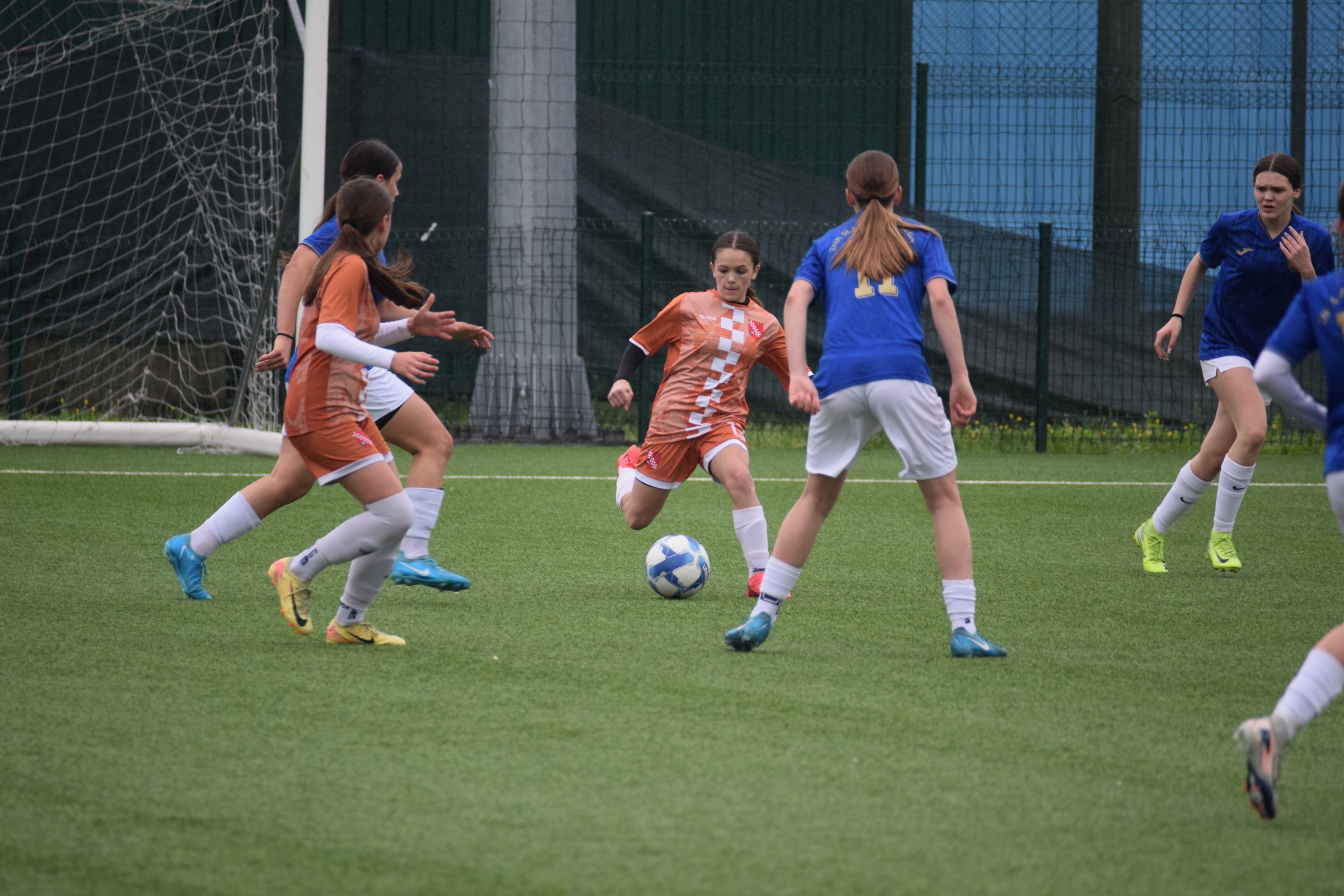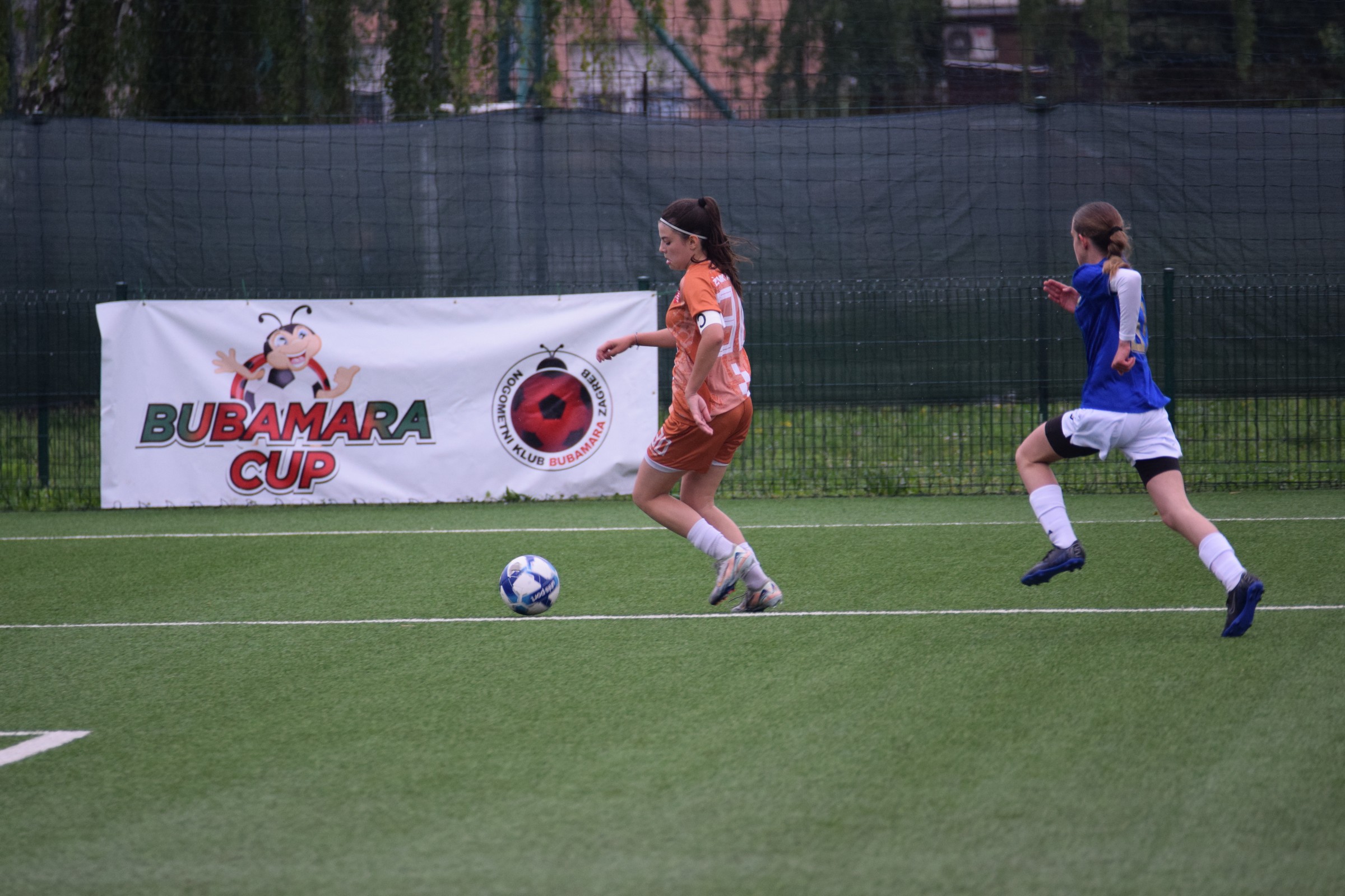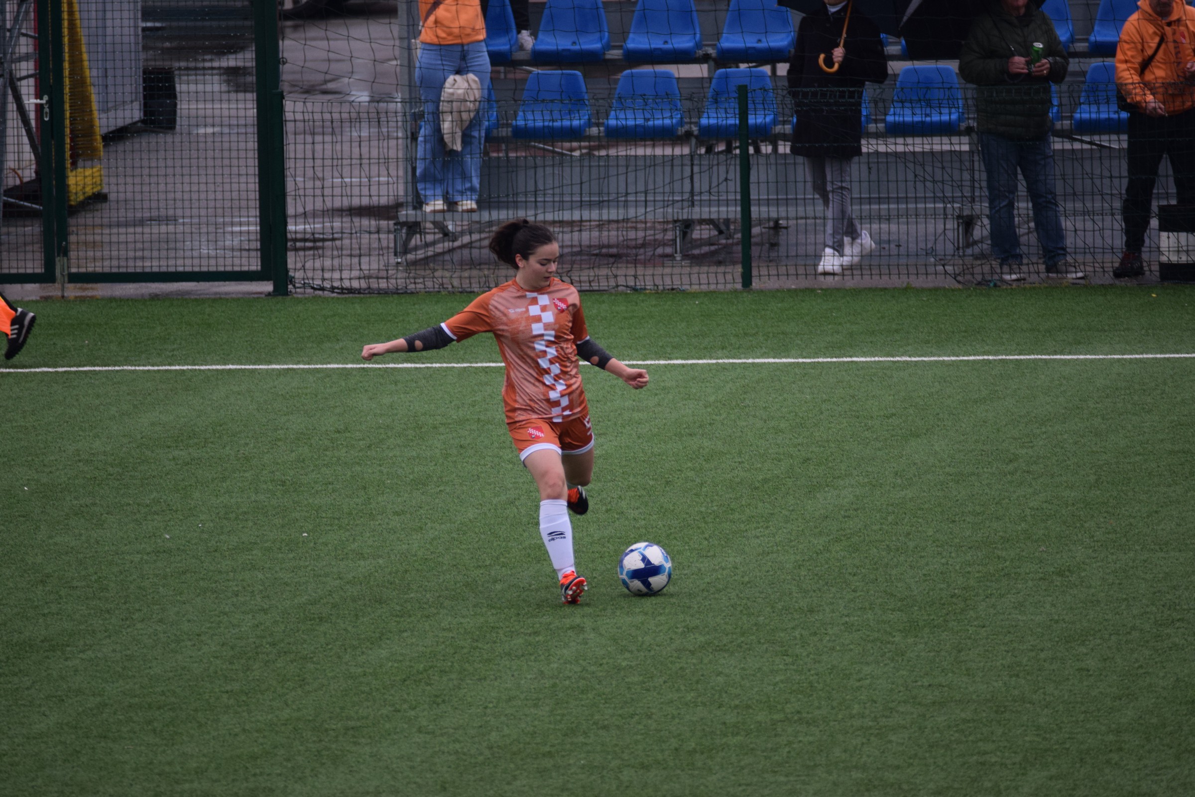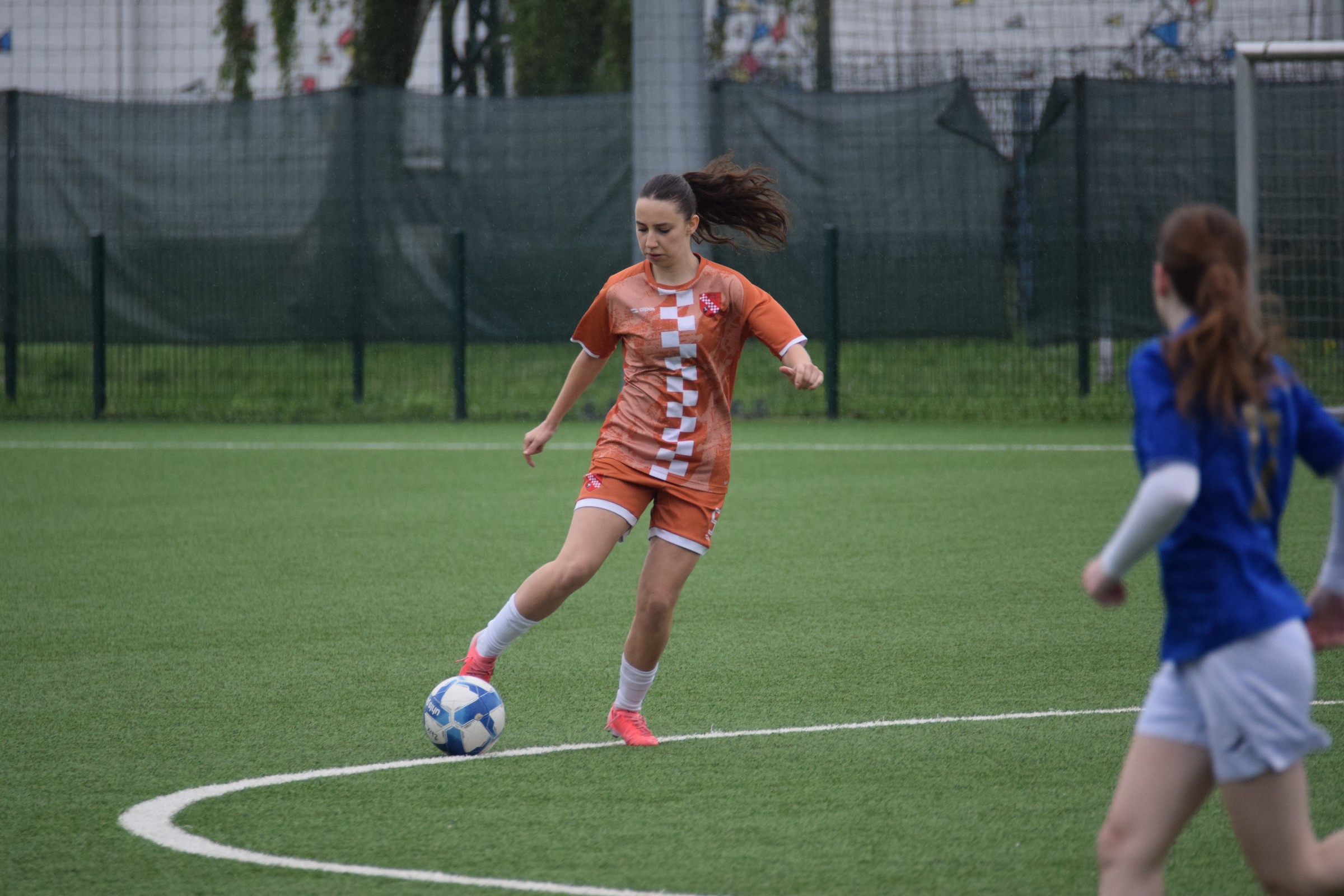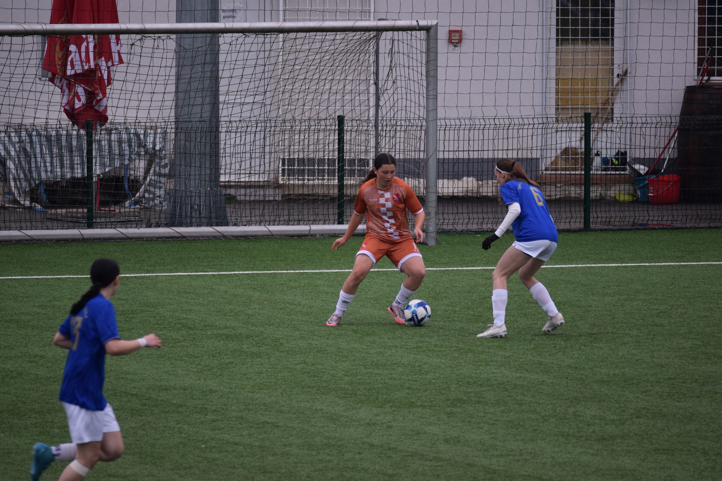 Daleko bolji pogled, snimio sam i par videa, a i bio mi je više pun đolenko kiše koja je padala cijelu utakmicu pionirki – držati istovremeno u lijevoj ruci kišobran, u desnoj fotoaparat, s time da svako malo tu lijevu ruku moraš podignuti (jer s njom pridržavam teleobjektiv) i onda mahnito podešavati fokus … umorih se 😂.