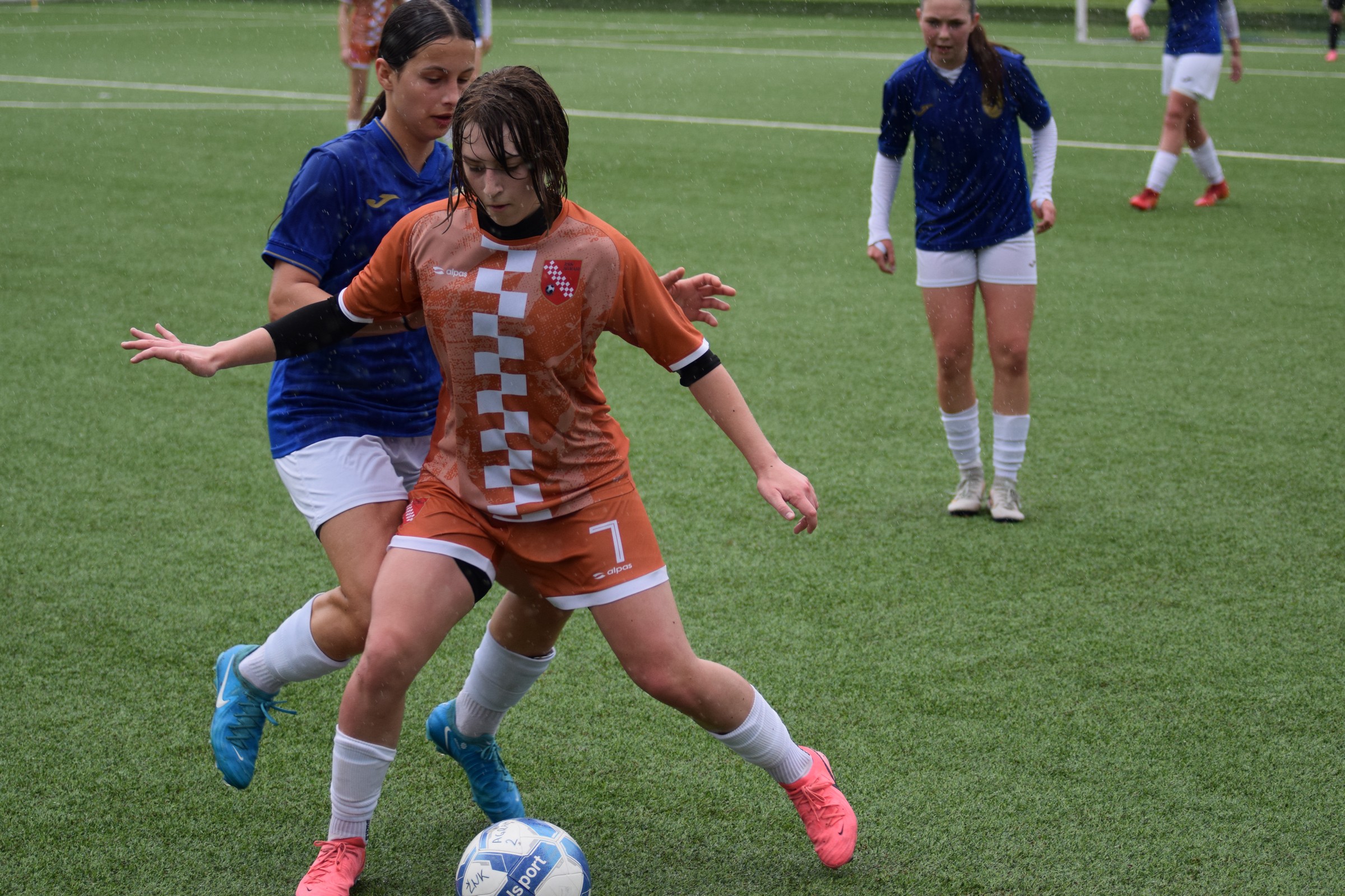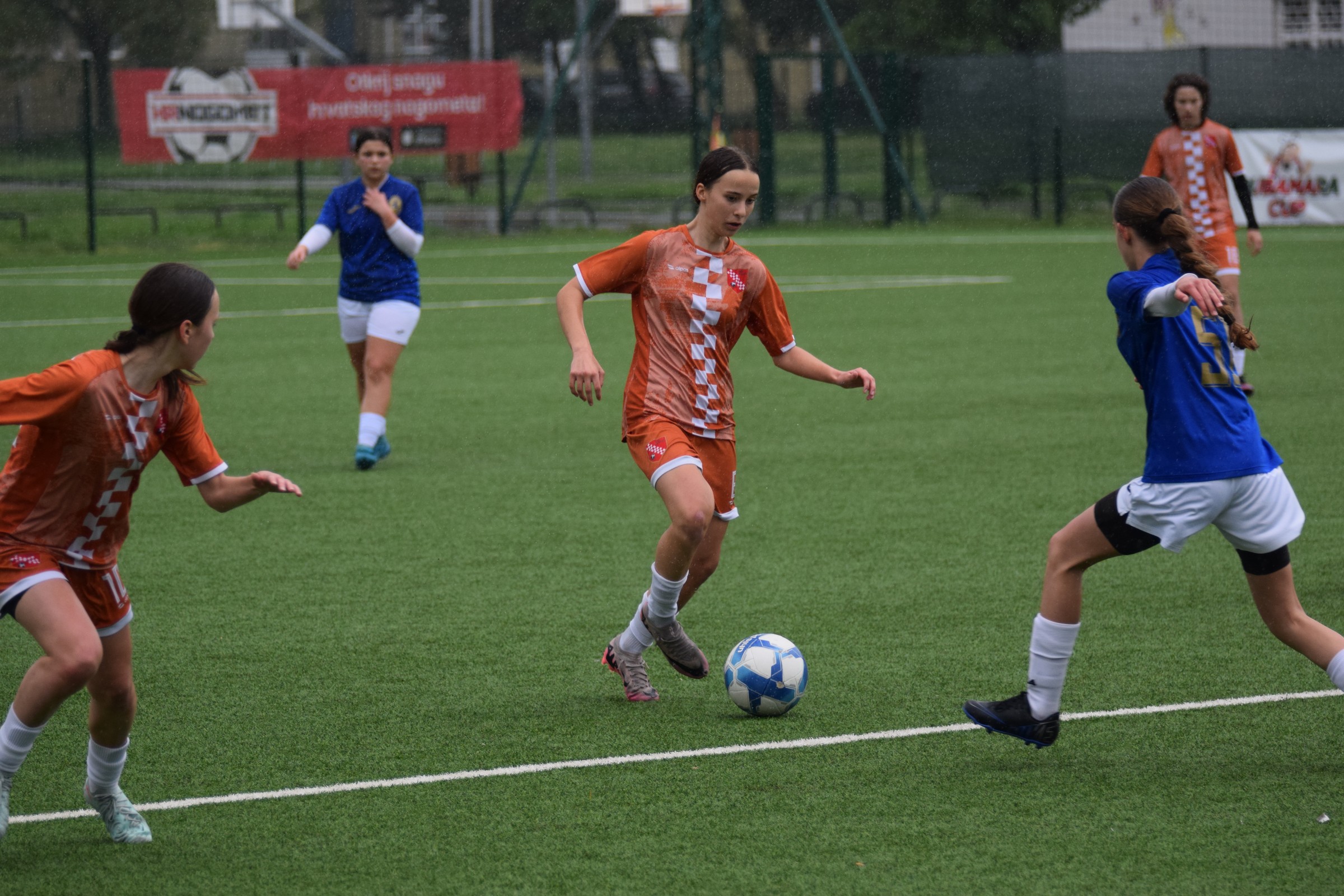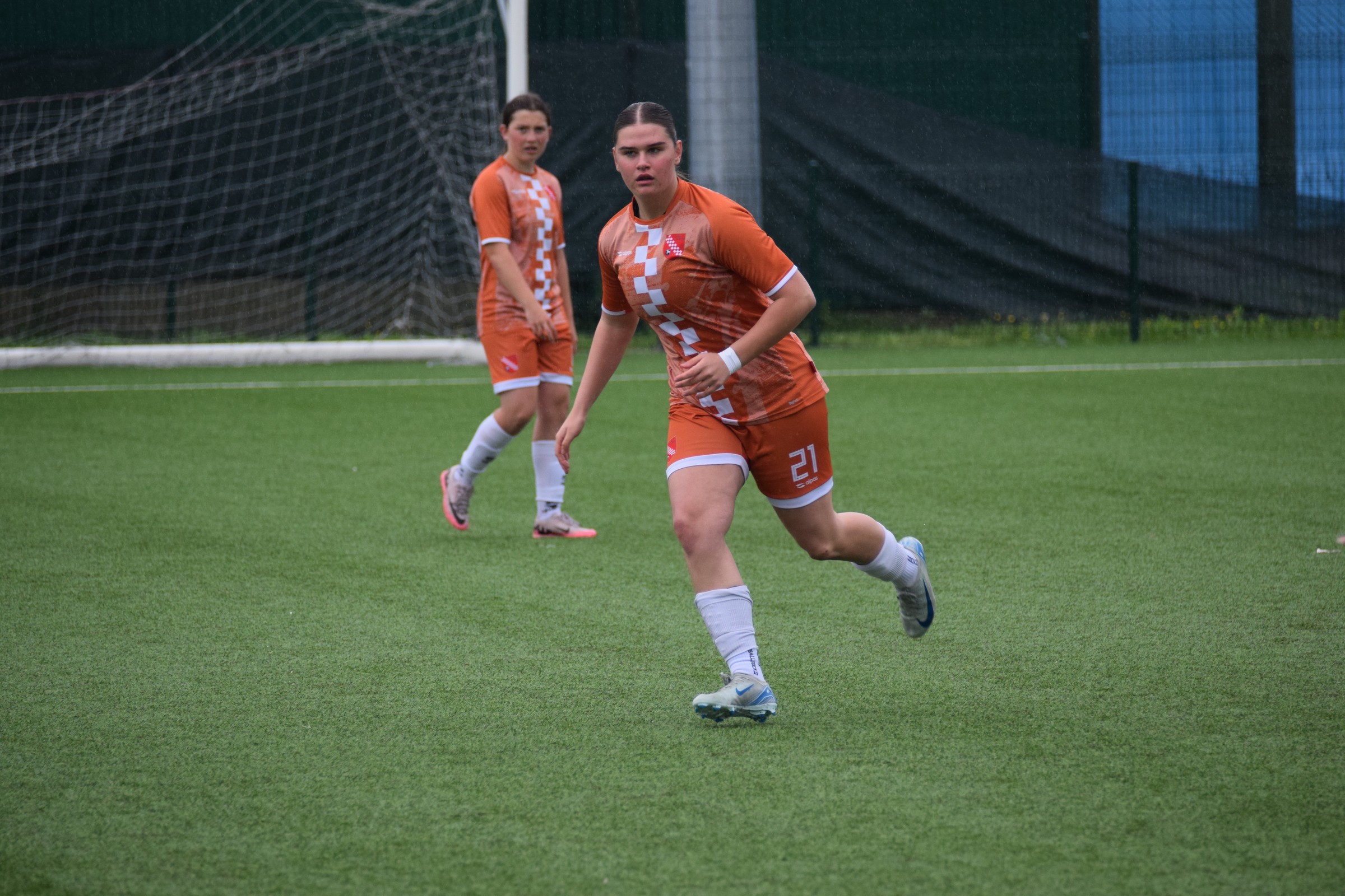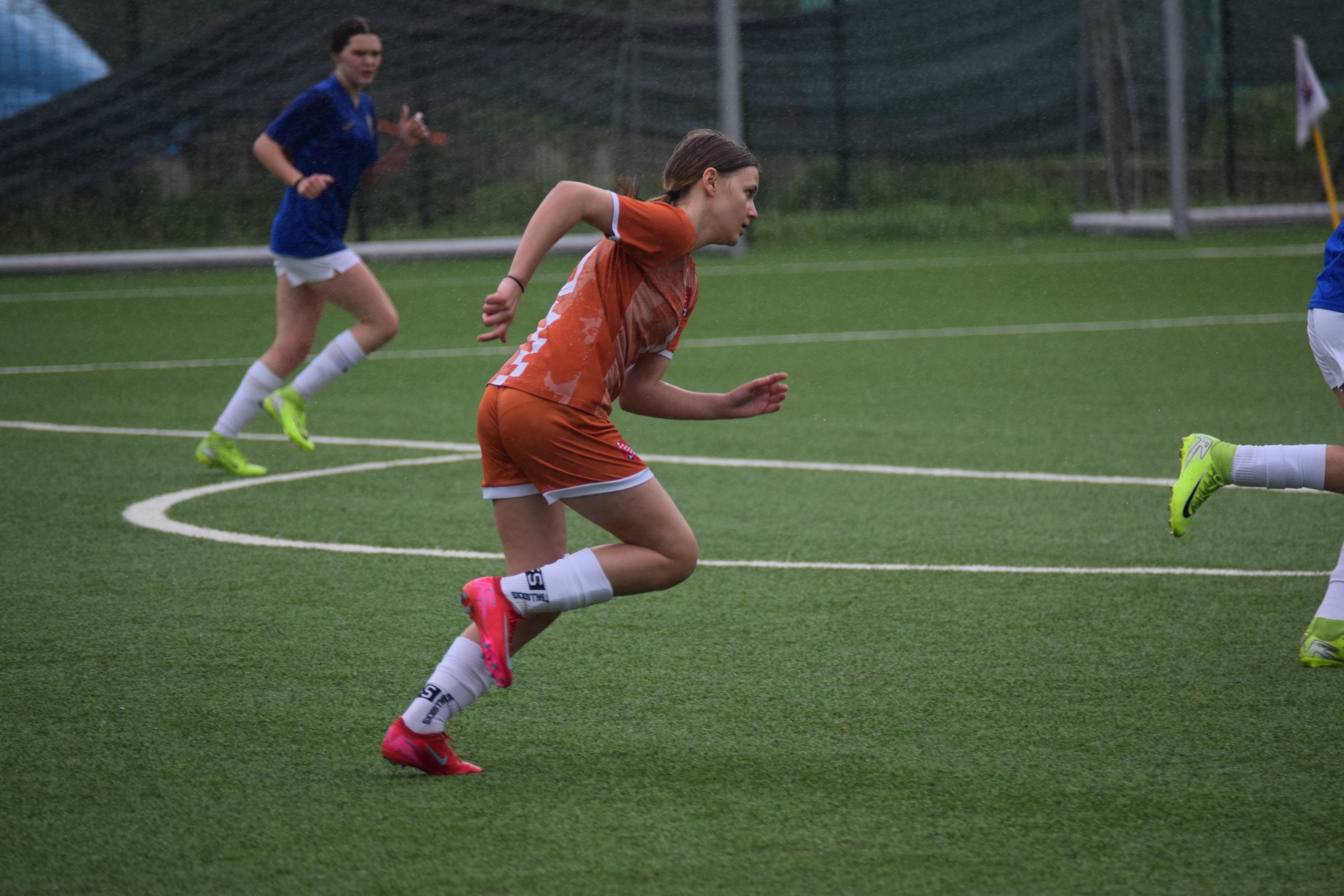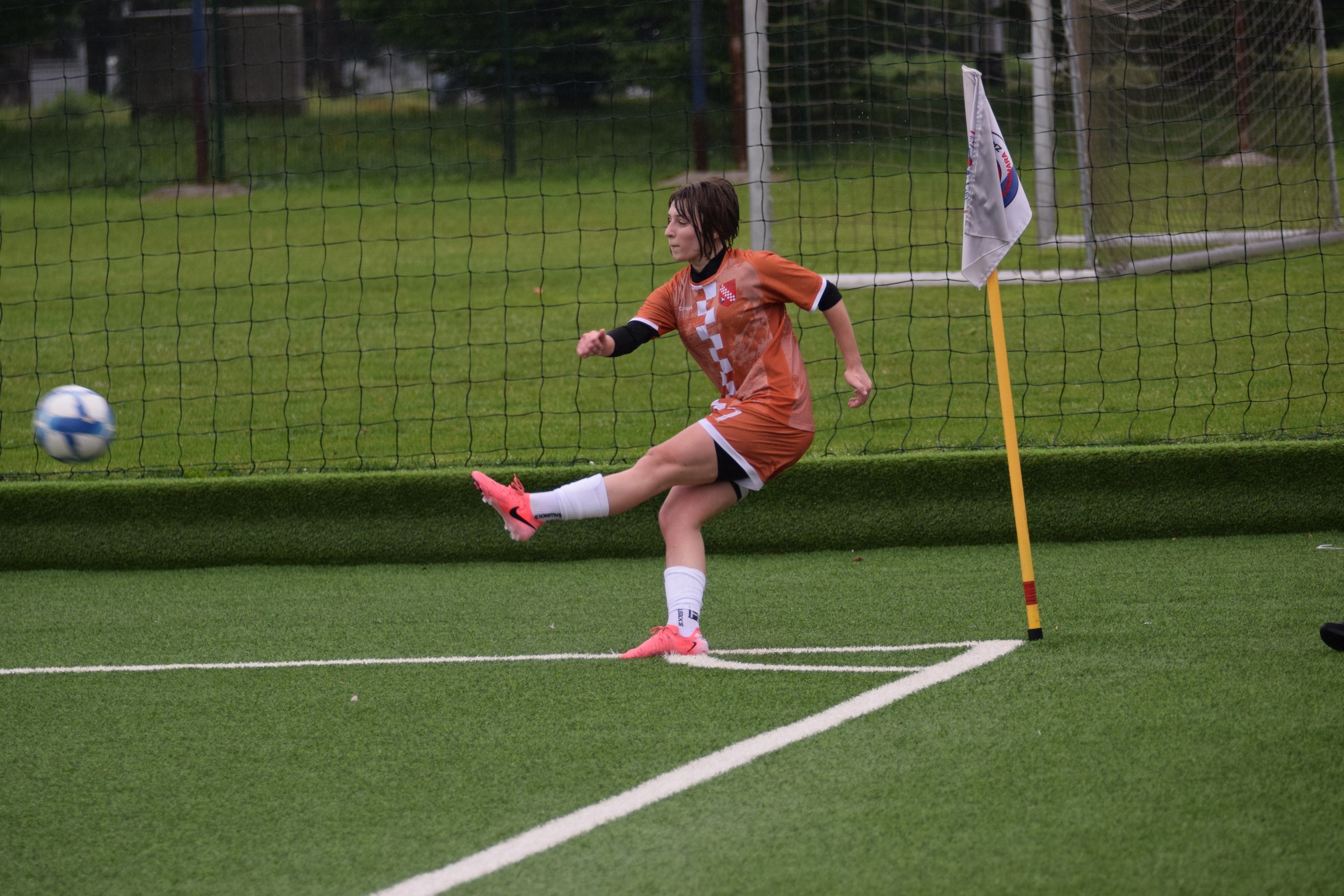 Daleko bolji pogled, snimio sam i par videa, a i bio mi je više pun đolenko kiše koja je padala cijelu utakmicu pionirki – držati istovremeno u lijevoj ruci kišobran, u desnoj fotoaparat, s time da svako malo tu lijevu ruku moraš podignuti (jer s njom pridržavam teleobjektiv) i onda mahnito podešavati fokus … umorih se 😂.