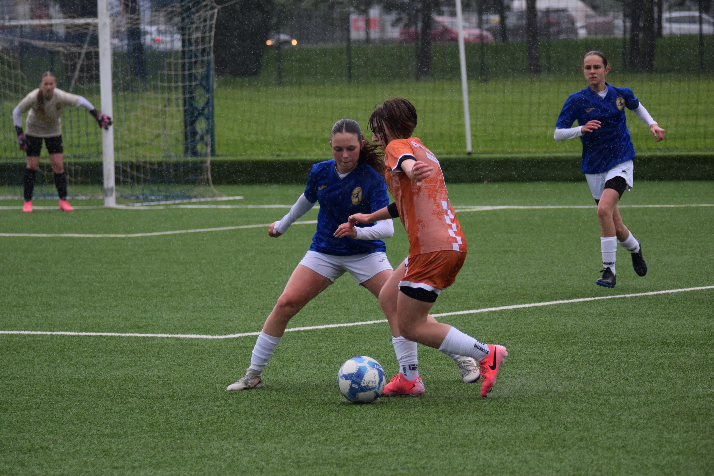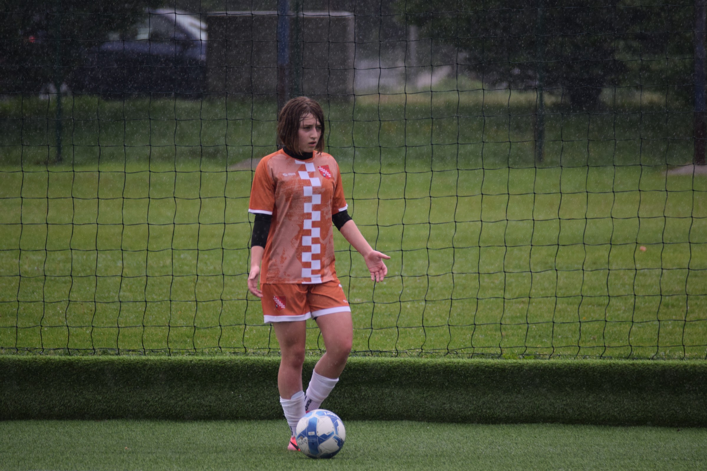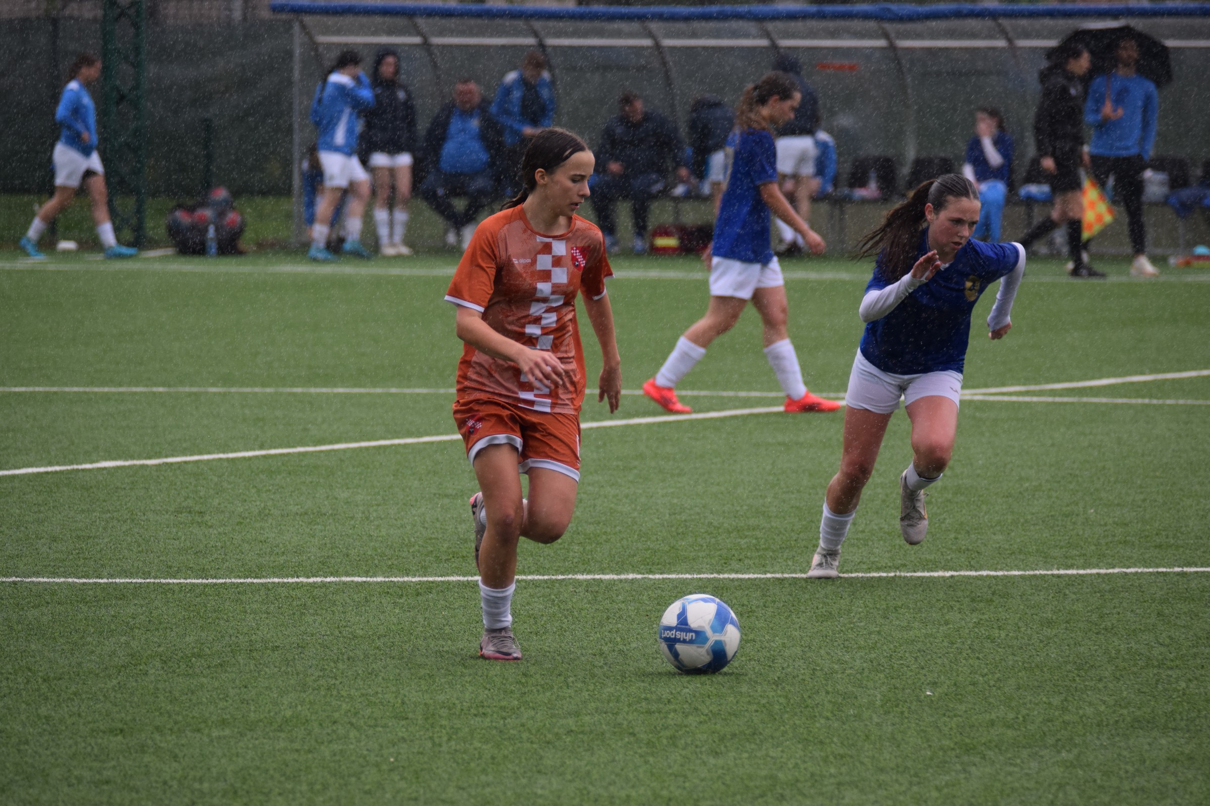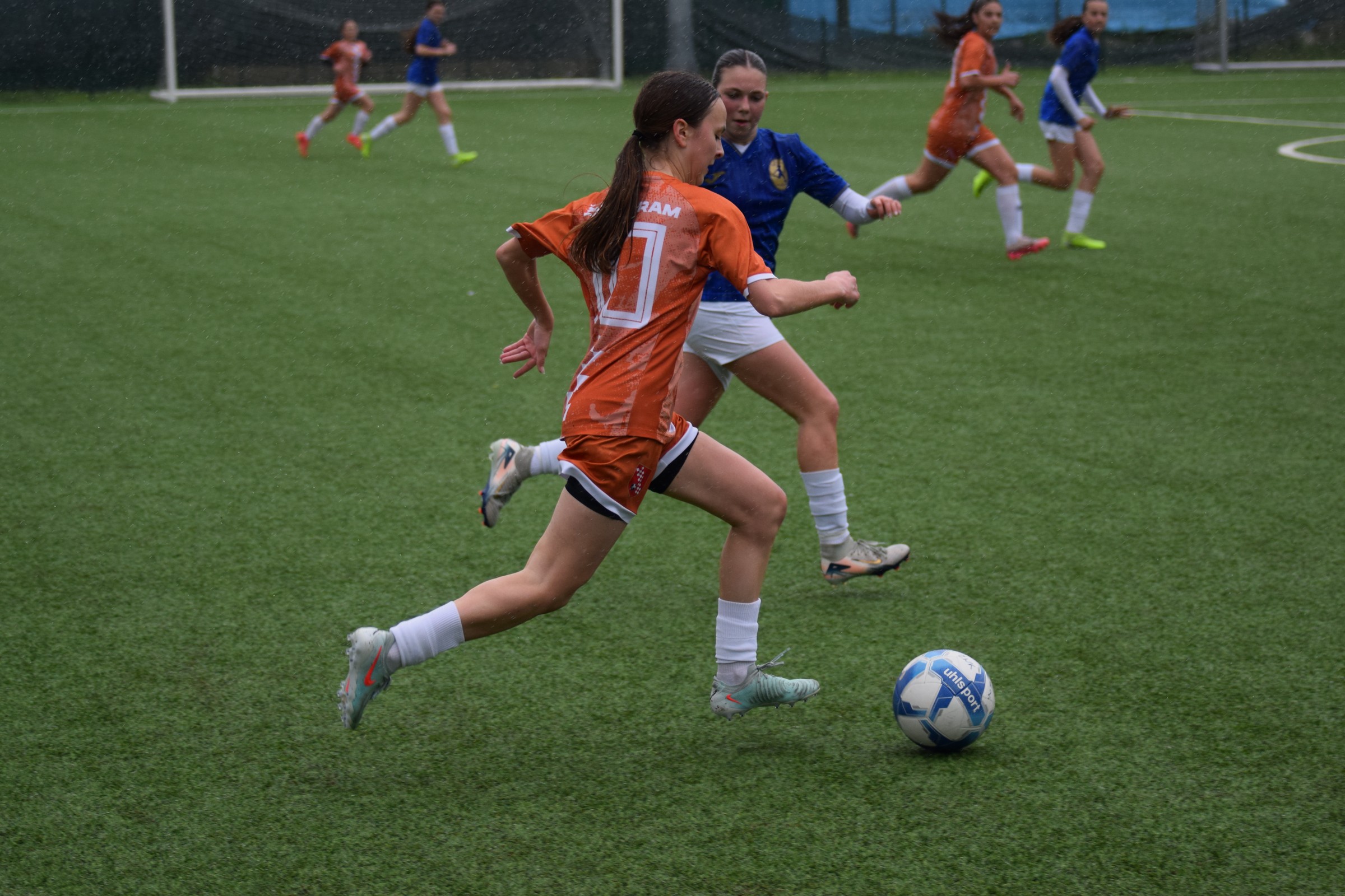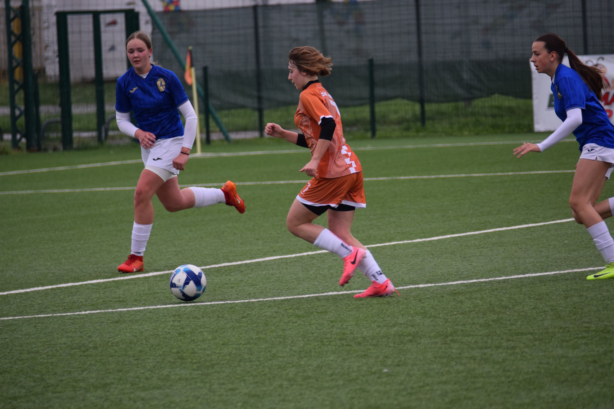 Daleko bolji pogled, snimio sam i par videa, a i bio mi je više pun đolenko kiše koja je padala cijelu utakmicu pionirki – držati istovremeno u lijevoj ruci kišobran, u desnoj fotoaparat, s time da svako malo tu lijevu ruku moraš podignuti (jer s njom pridržavam teleobjektiv) i onda mahnito podešavati fokus … umorih se 😂.