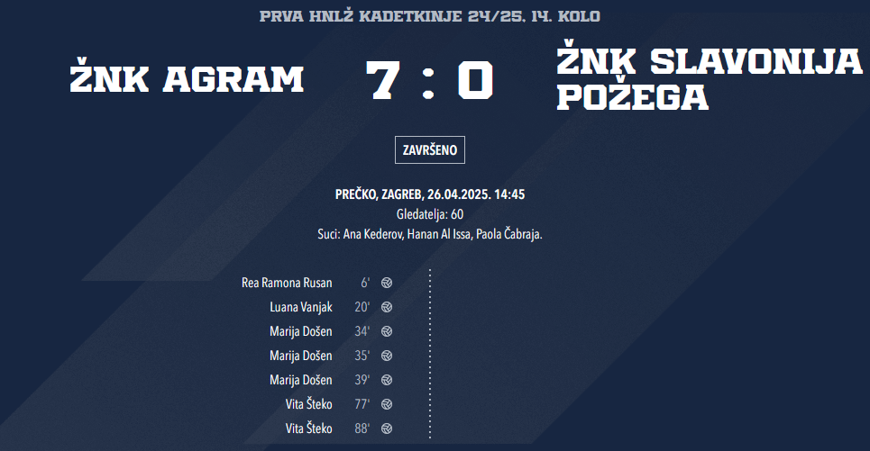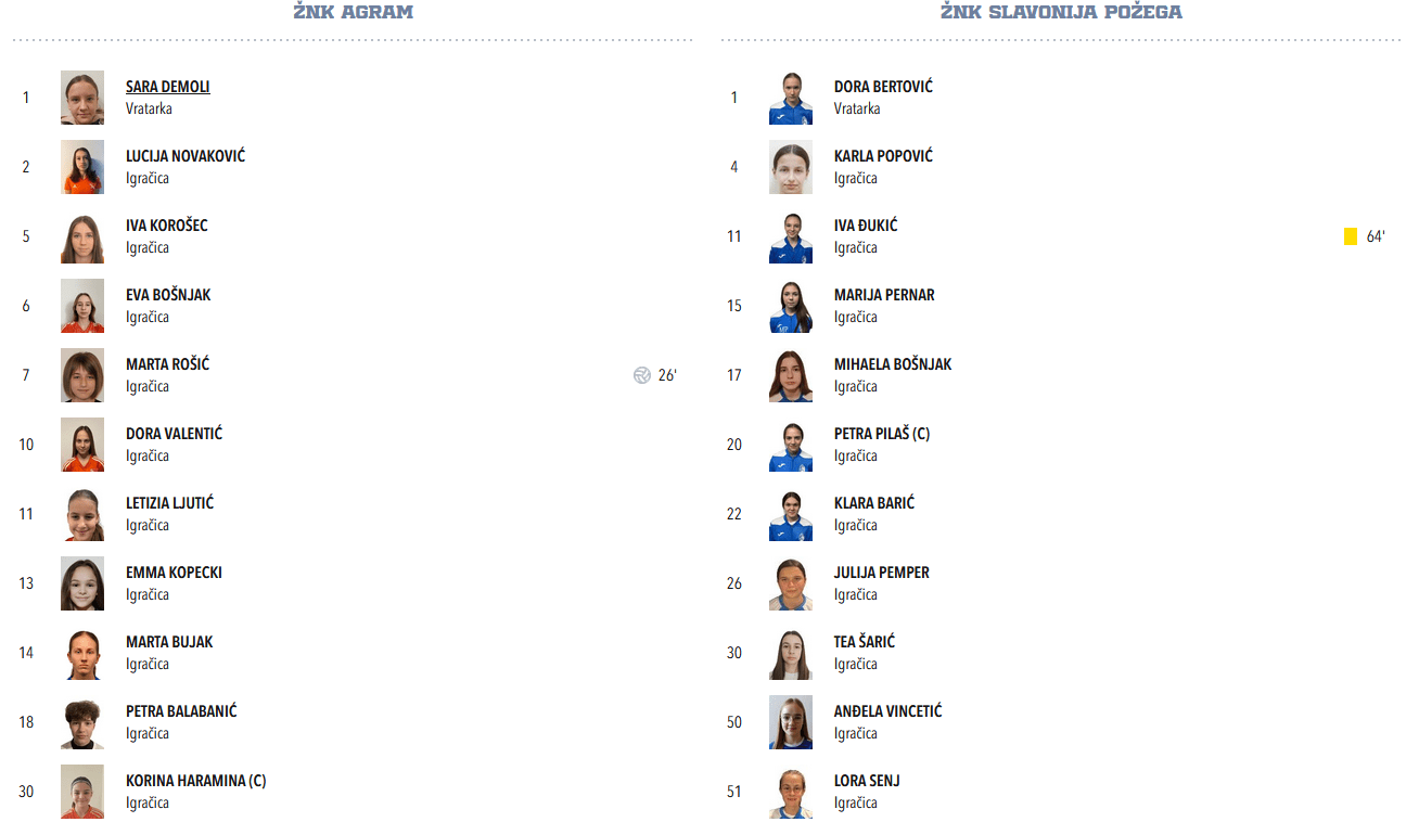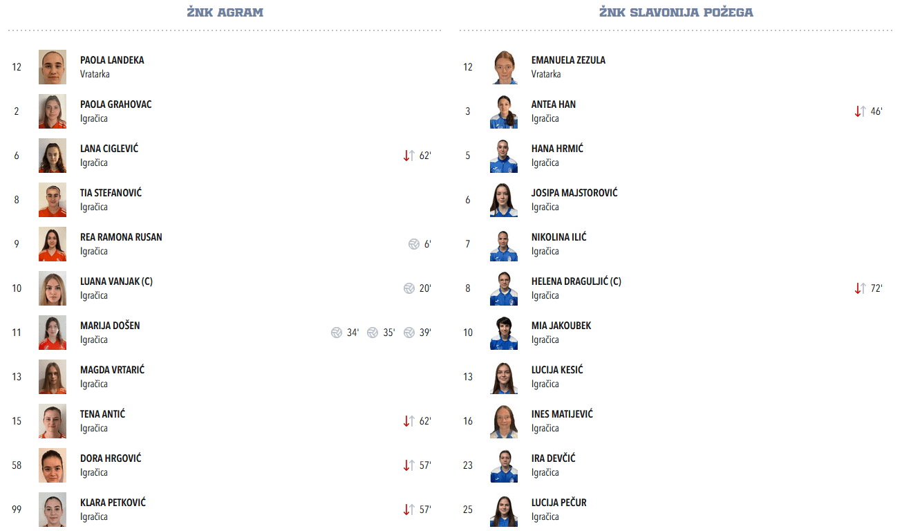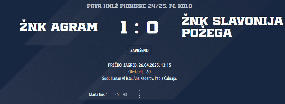 Marta Rošić je zabila odličan gol i tijekom cijele utakmice prezentirala svoju ekstra klasu, Korina, Dora i Letizia su Agramove pionirke koje sam već zapamtio, a tijekom ove utakmice mi je za oko zapela i Petra Balabanić, koja je u obrani suvereno rješavala sve pokušaje igračica Slavonije da nešto naprave u napadu.