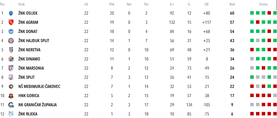 Nakon tog jesenskog poraza od Donata su dva kola kasnije izgubile nes(p)retno i od Osijeka, naslov je počeo bježati u domenu teorije … no remi Donata kod Hajduka je dao nadu … ali trebalo je najprije pobijediti doma i Donat i Osijek.