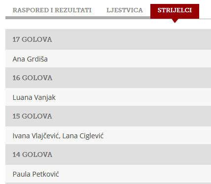 Iz tog blog posta je zanimljivo podsjetiti se na tadašnju listu najboljih strijelkinja u prvenstvu.