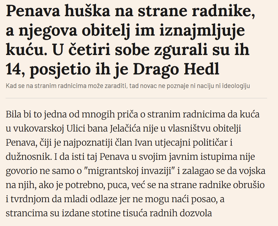 Znači … ustašoid Penava iznajmljuje svoju kuću stranim imigrantima radnicima, a zajedno s ovim svojim gubavoidima želi zabraniti plakate na hinduskom jeziku!!!