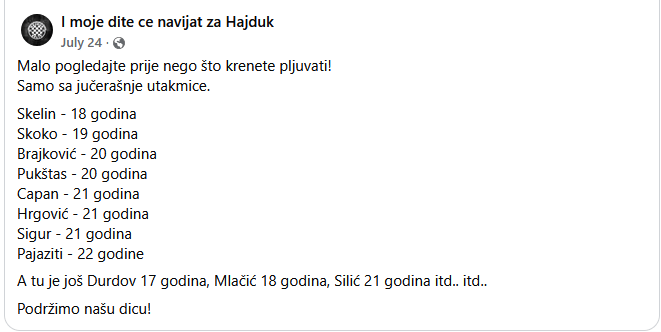 … ali, JE LI OVO ISTINA da Hajduk konačno daje priliku svojoj dici a ne preplaćenim i isluženim strancima?