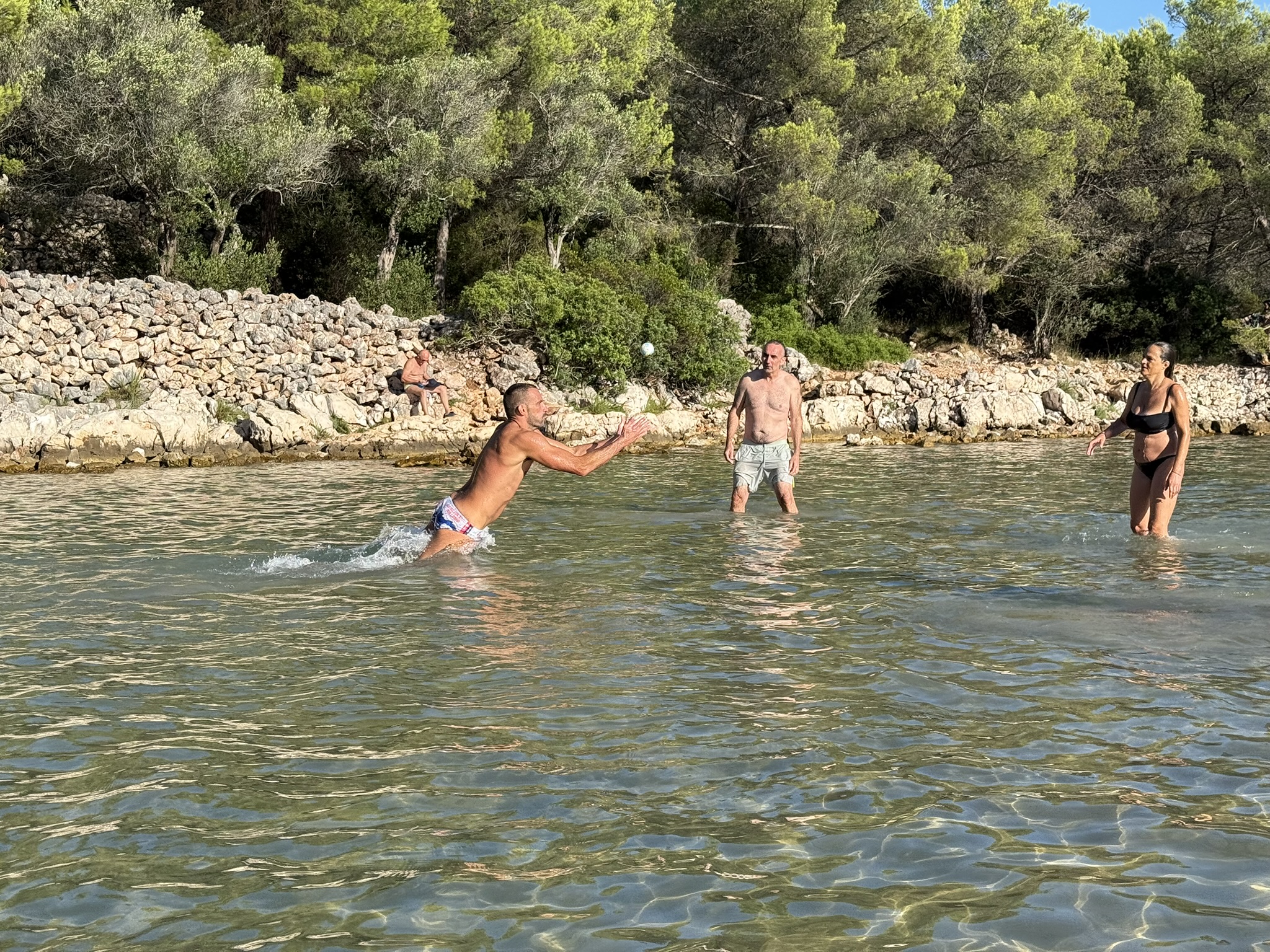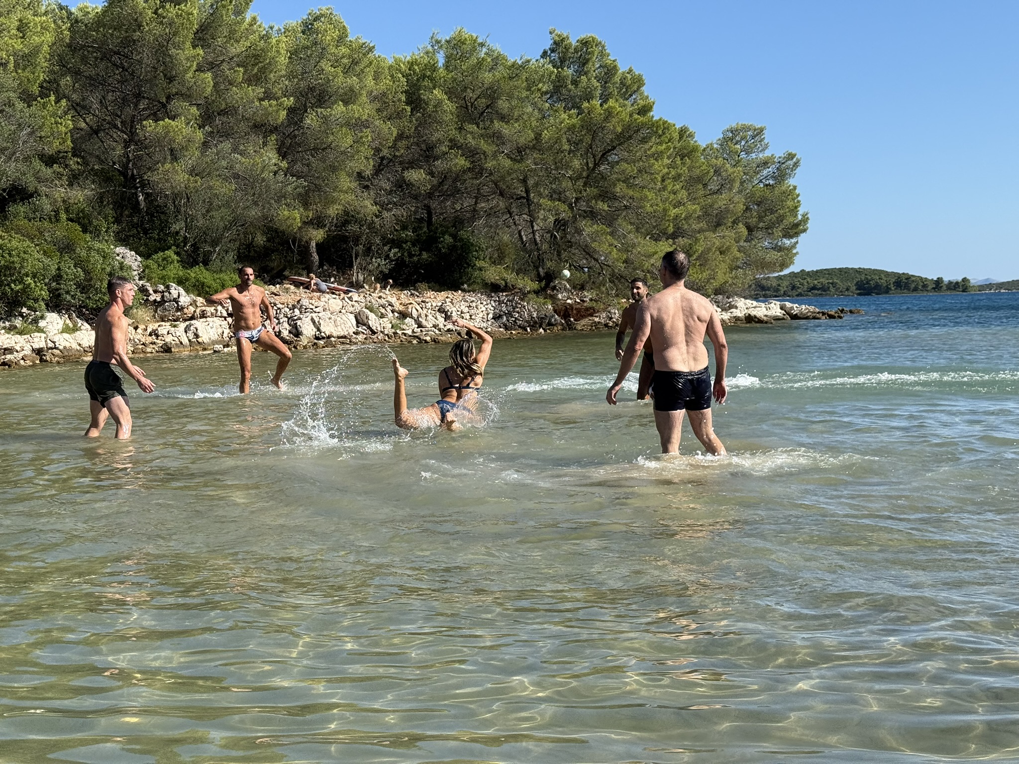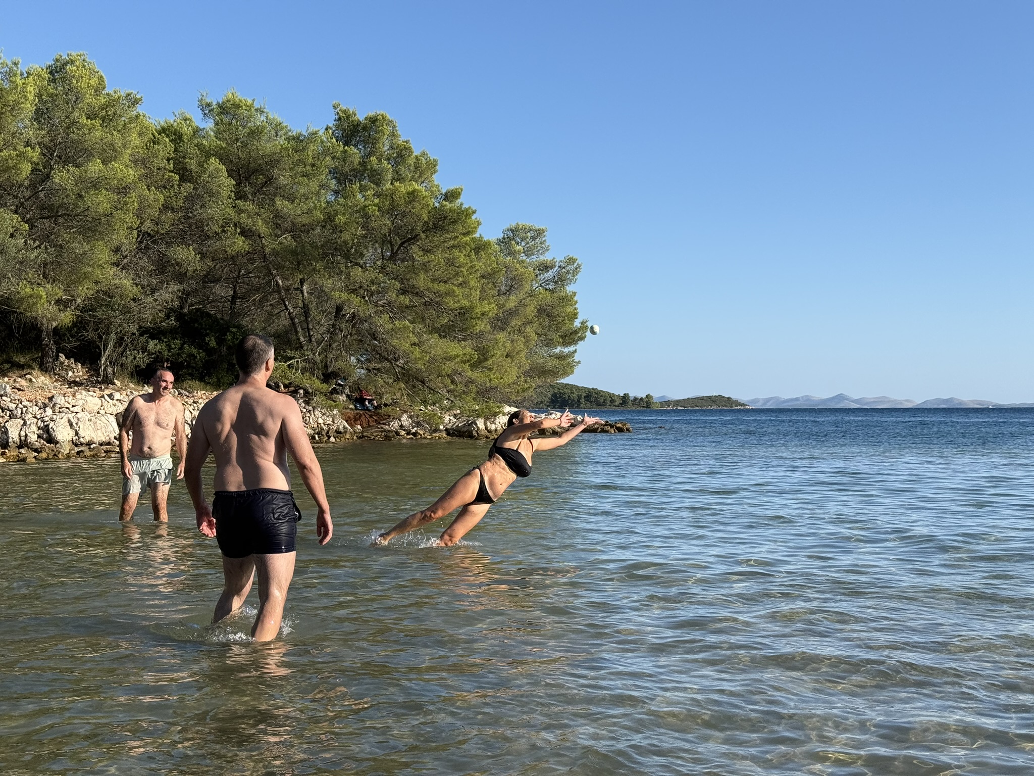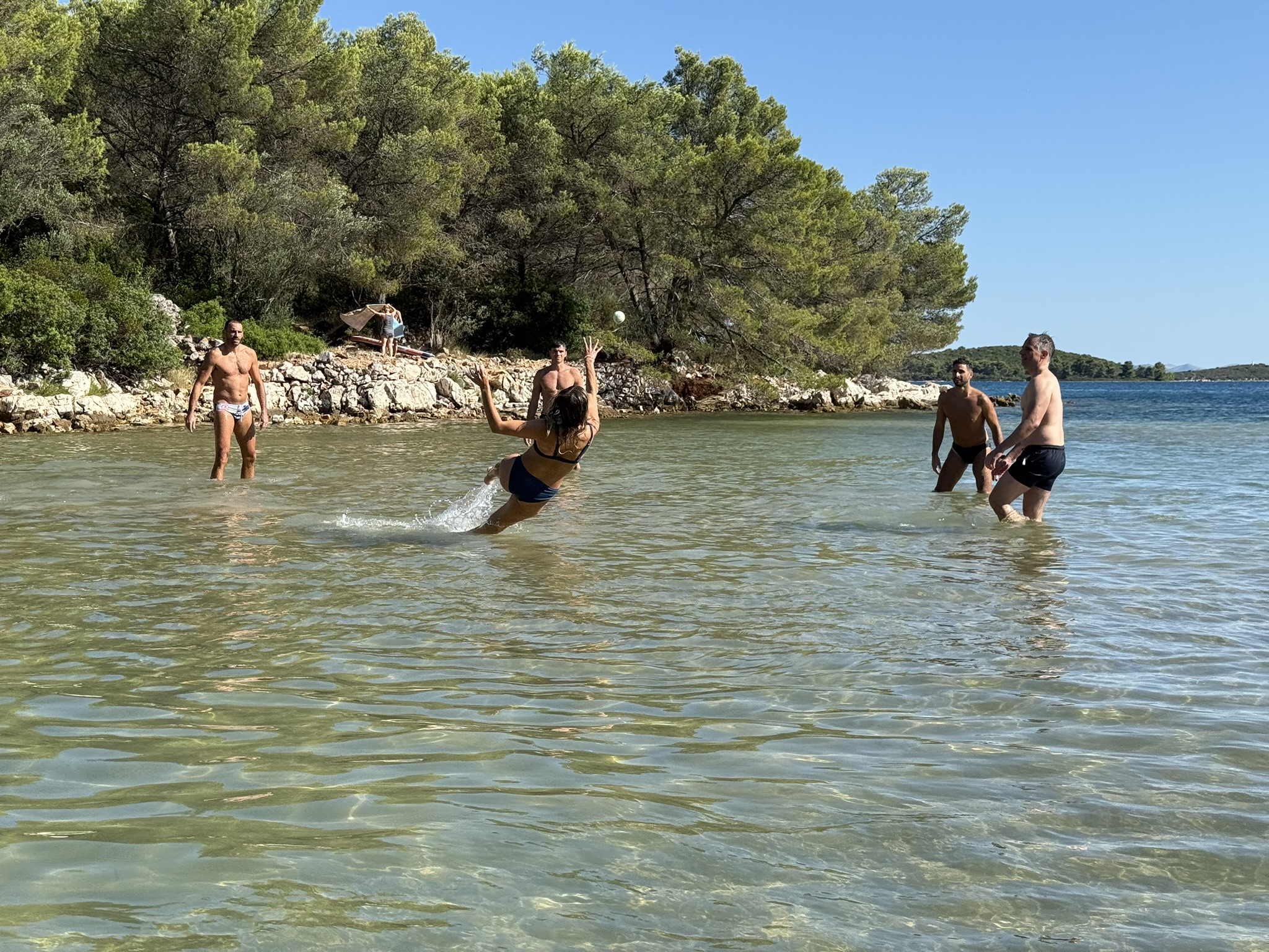 Dok je Veronika oduševljavala Boru, Luču, Tonija i Marijana, u našoj grupi je briljirala Vedrana i u jednom trenutku su nam se zvizde posložile “kako triba” i bacili smo doista čudesnu partiju!!! Parada na paradu, svi letaju dok se loptica svim silama trudi da završi u moru … ali mi ne damo i itamo je u zrak opet i opet i oet … svatko je bacio bar 3-4 odlične parade i nakon te partije nam je definitivno trebao kratki odmor.