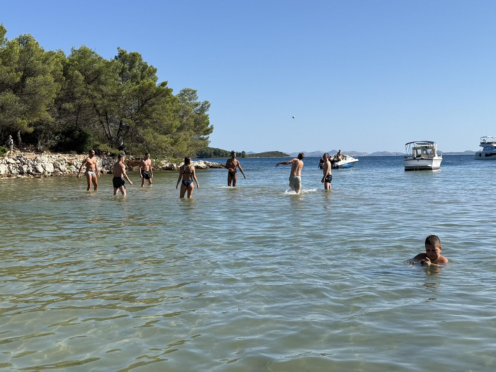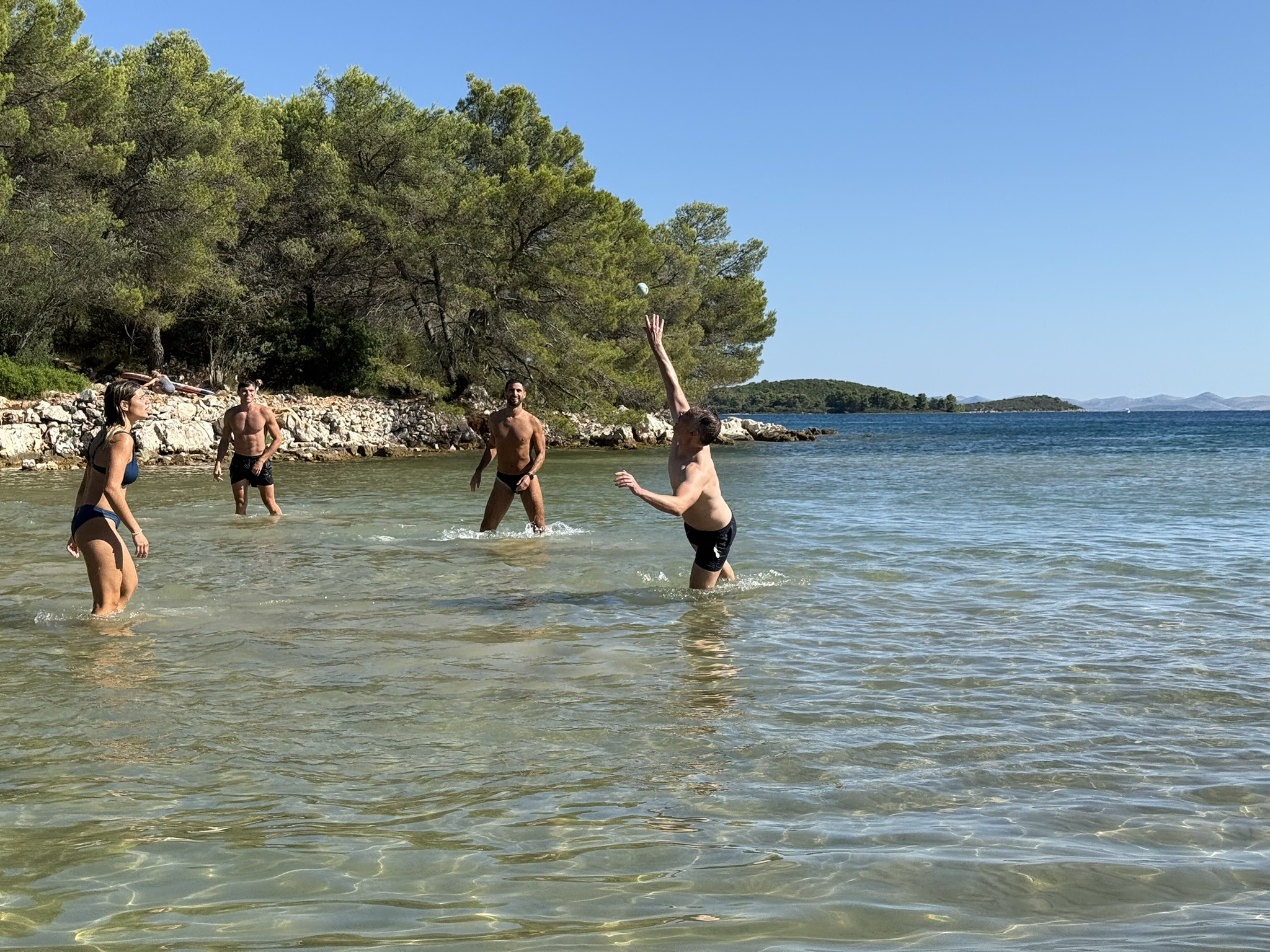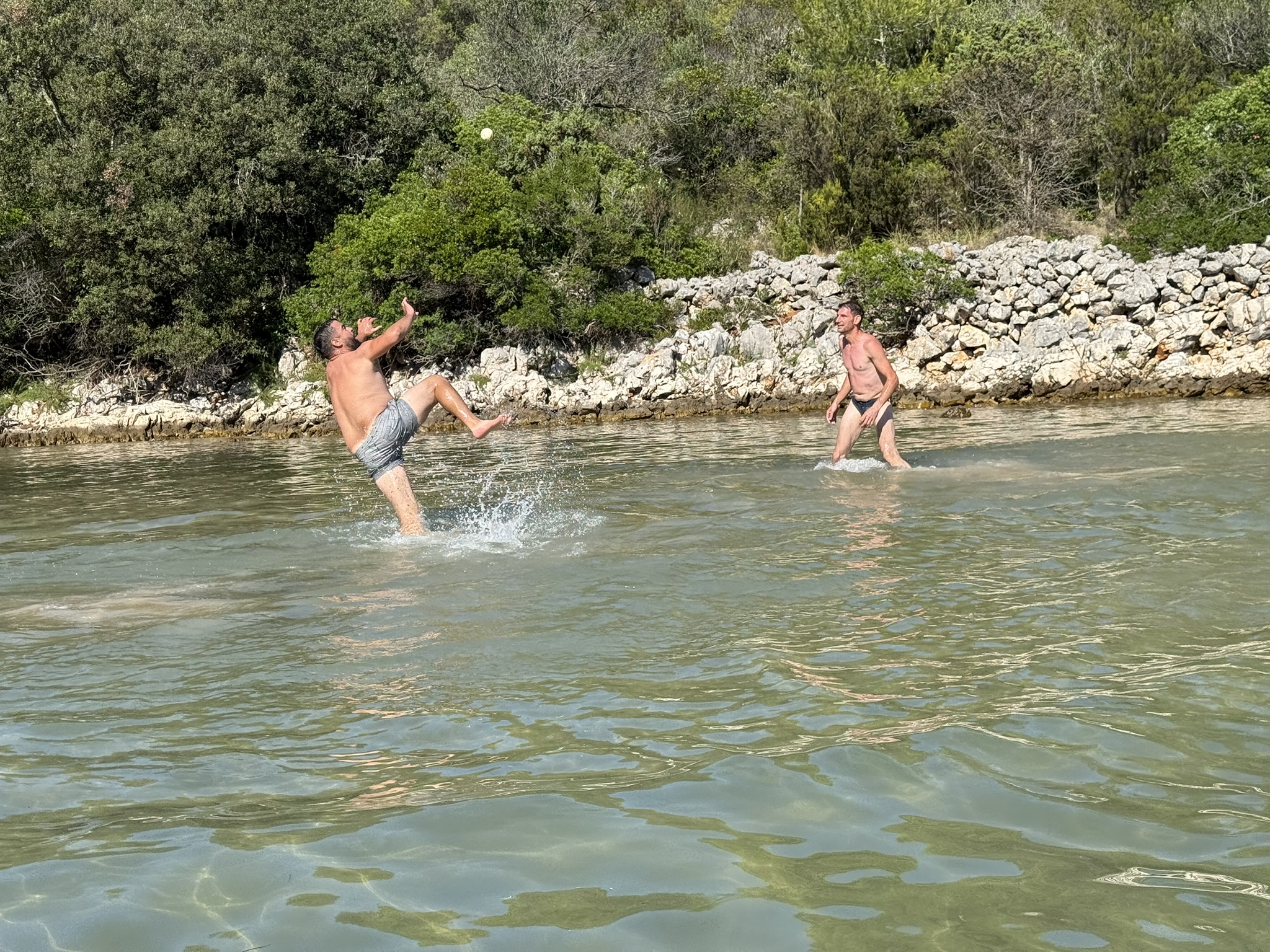 Dok je Veronika oduševljavala Boru, Luču, Tonija i Marijana, u našoj grupi je briljirala Vedrana i u jednom trenutku su nam se zvizde posložile “kako triba” i bacili smo doista čudesnu partiju!!! Parada na paradu, svi letaju dok se loptica svim silama trudi da završi u moru … ali mi ne damo i itamo je u zrak opet i opet i oet … svatko je bacio bar 3-4 odlične parade i nakon te partije nam je definitivno trebao kratki odmor.