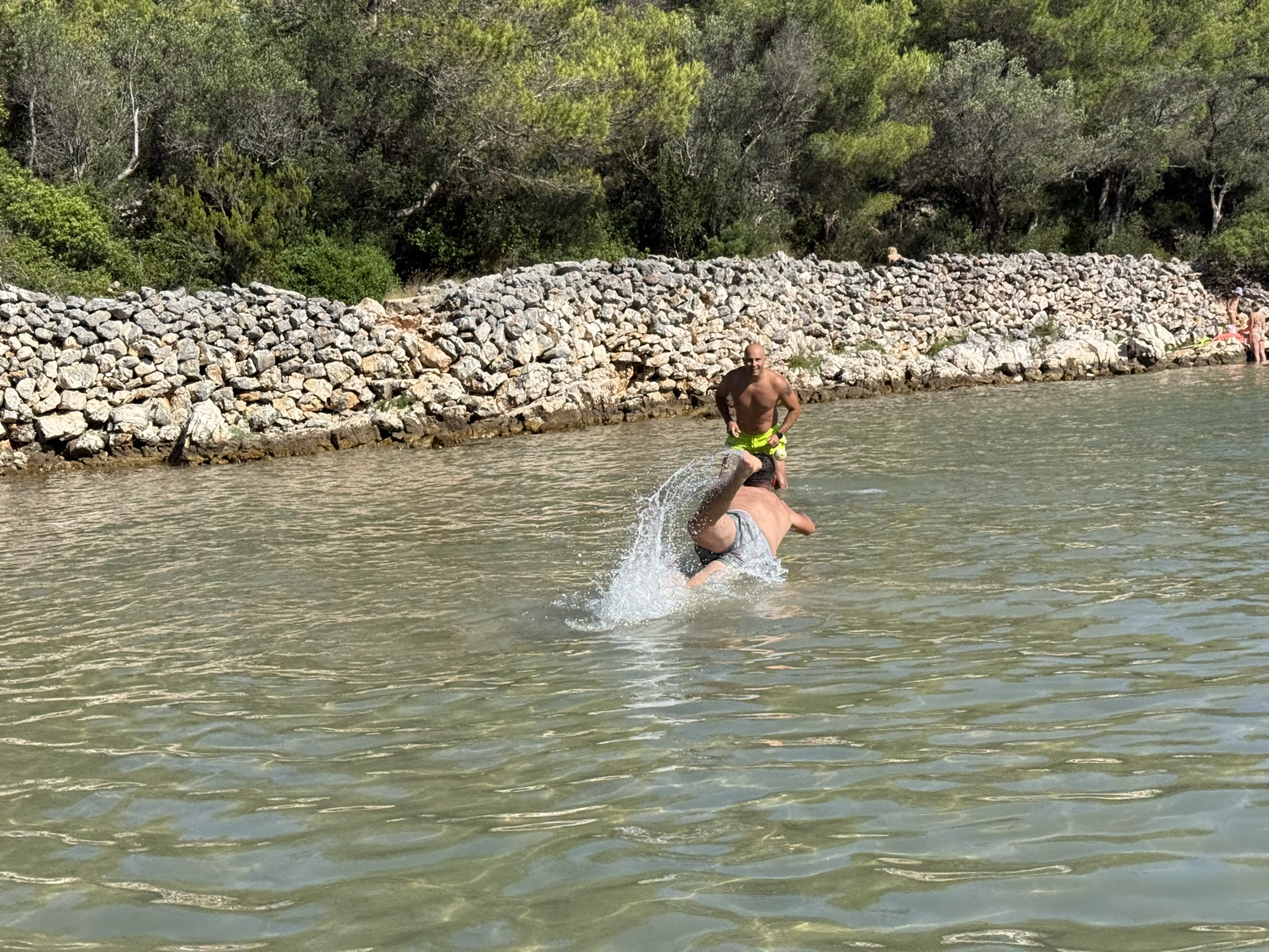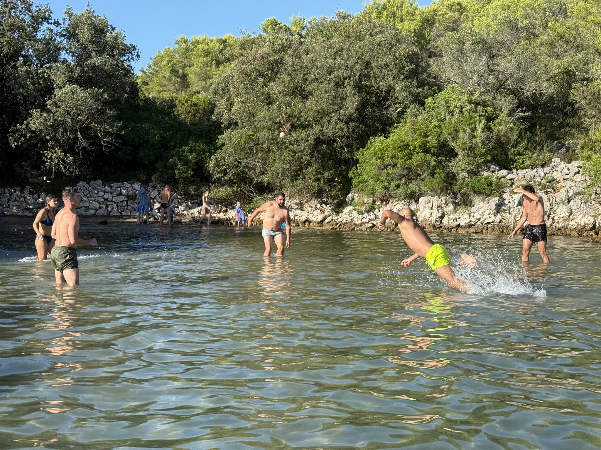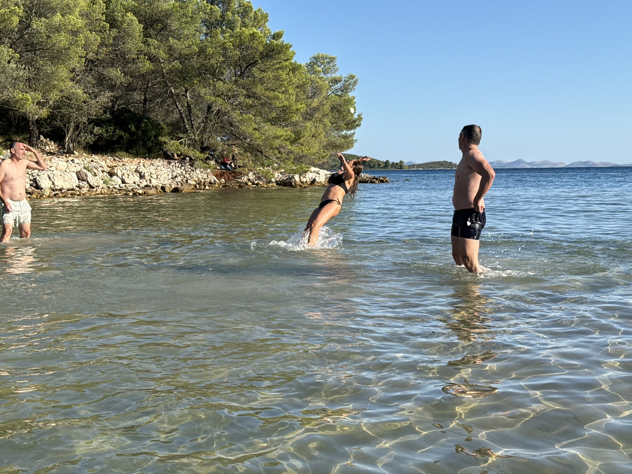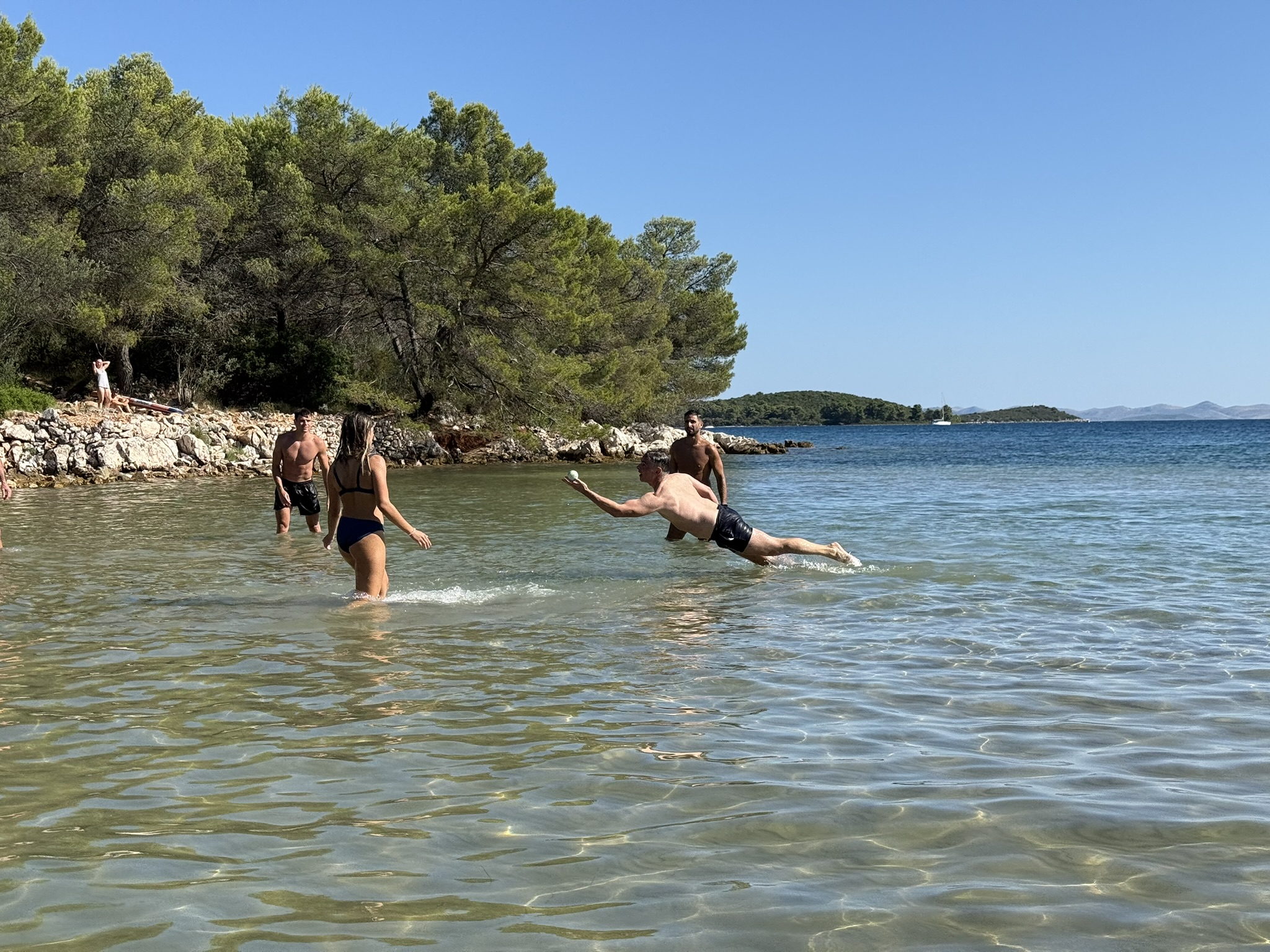Dok je Veronika oduševljavala Boru, Luču, Tonija i Marijana, u našoj grupi je briljirala Vedrana i u jednom trenutku su nam se zvizde posložile “kako triba” i bacili smo doista čudesnu partiju!!! Parada na paradu, svi letaju dok se loptica svim silama trudi da završi u moru … ali mi ne damo i itamo je u zrak opet i opet i oet … svatko je bacio bar 3-4 odlične parade i nakon te partije nam je definitivno trebao kratki odmor.