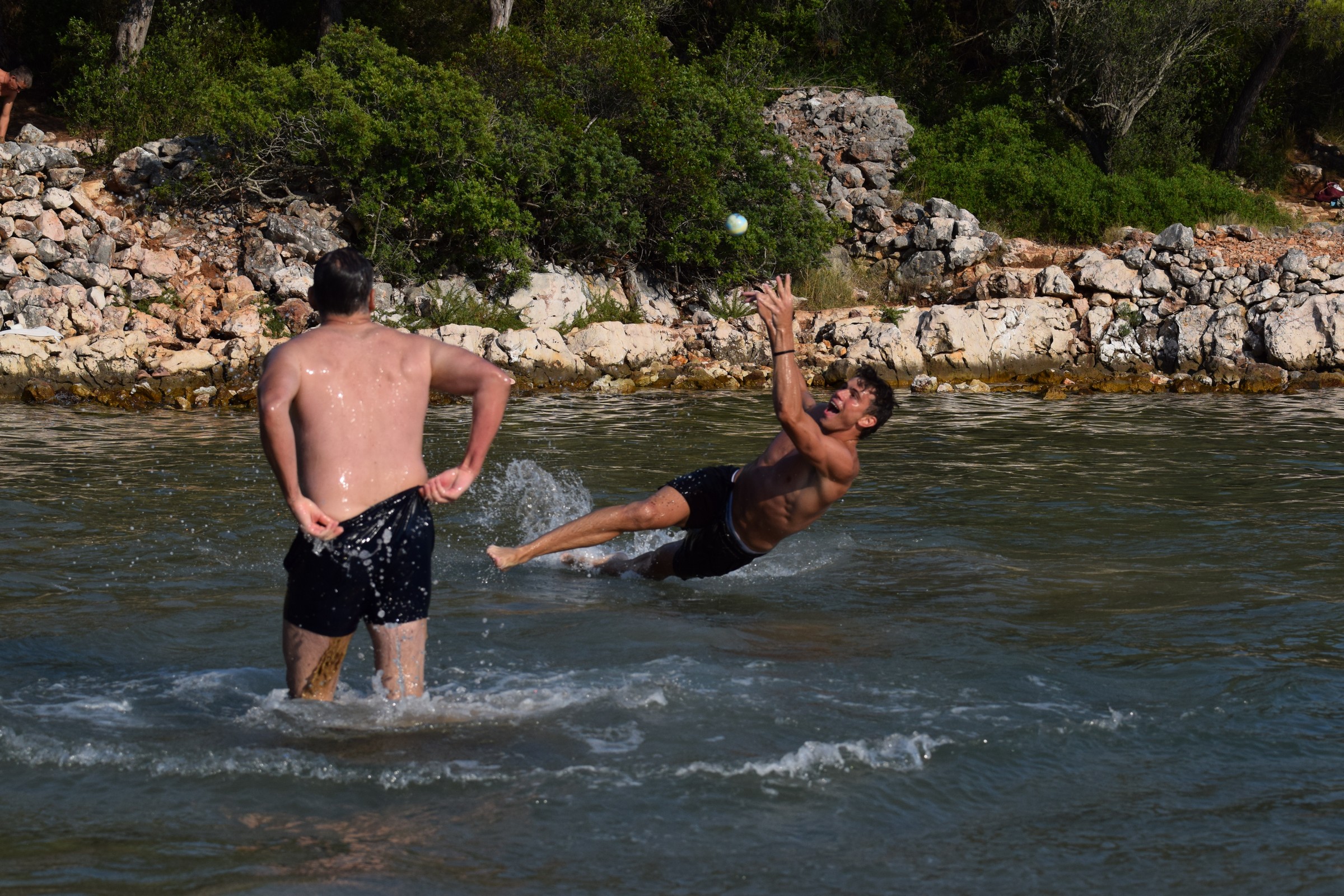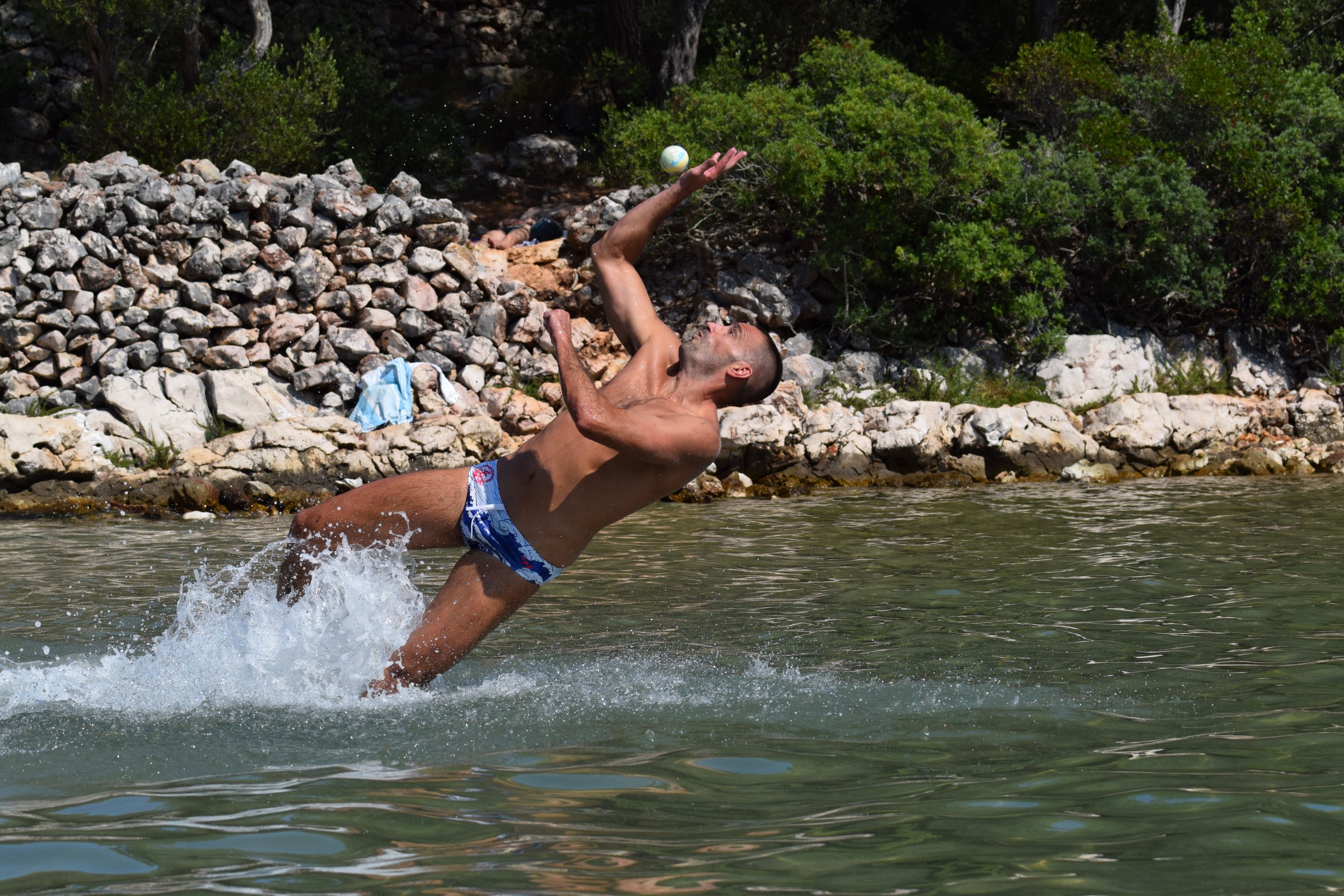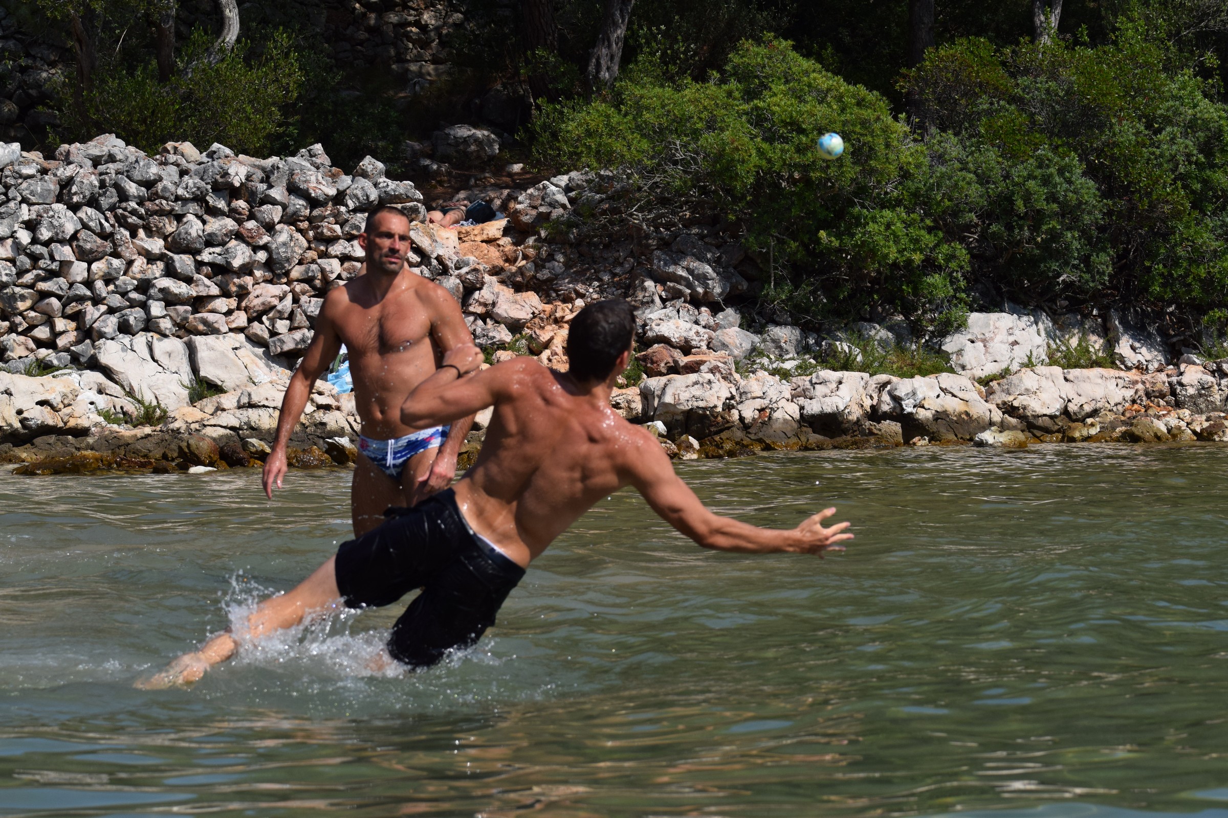 Ura vrimena je prošla u trenu, igrali smo odlično i iako nismo ponovili ništa slično čudesnoj partiji koju su odigrali dečki po ure prije, odigrali smo gomilu dobrih i odličnih … i igrali vrhunski picigin. Kojem je vrhunac opet bio pri kraju, kad su učetvero ostali Dino, Toni, Jure i Jakov … Karlo je pošao malo odmoriti na bord a ja se opet uhvatio fotoaparata … i dečki su pošteno kuvali.