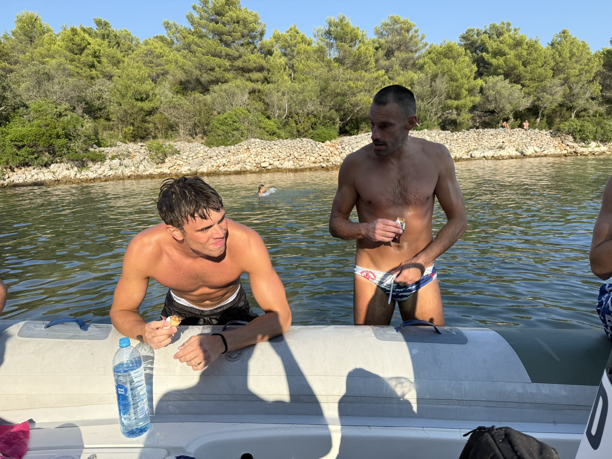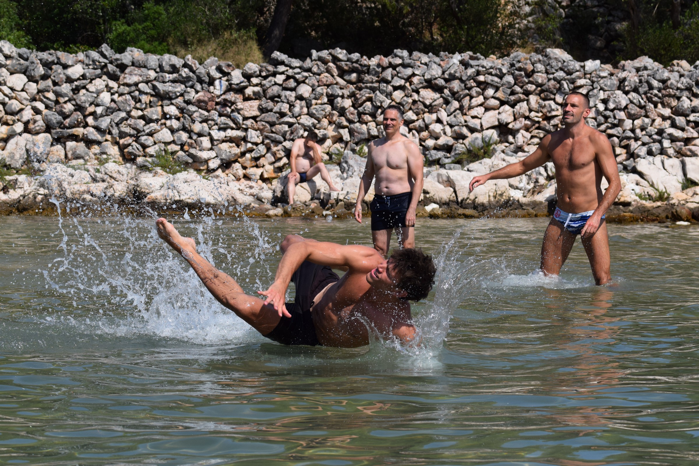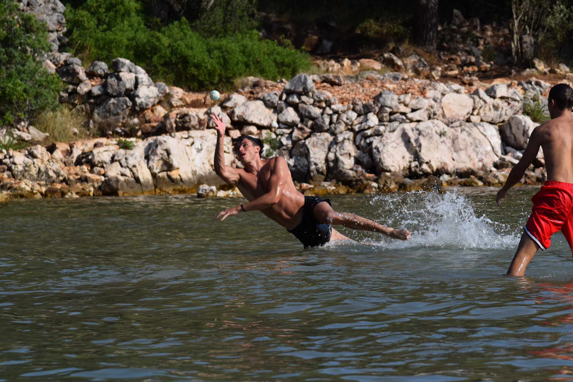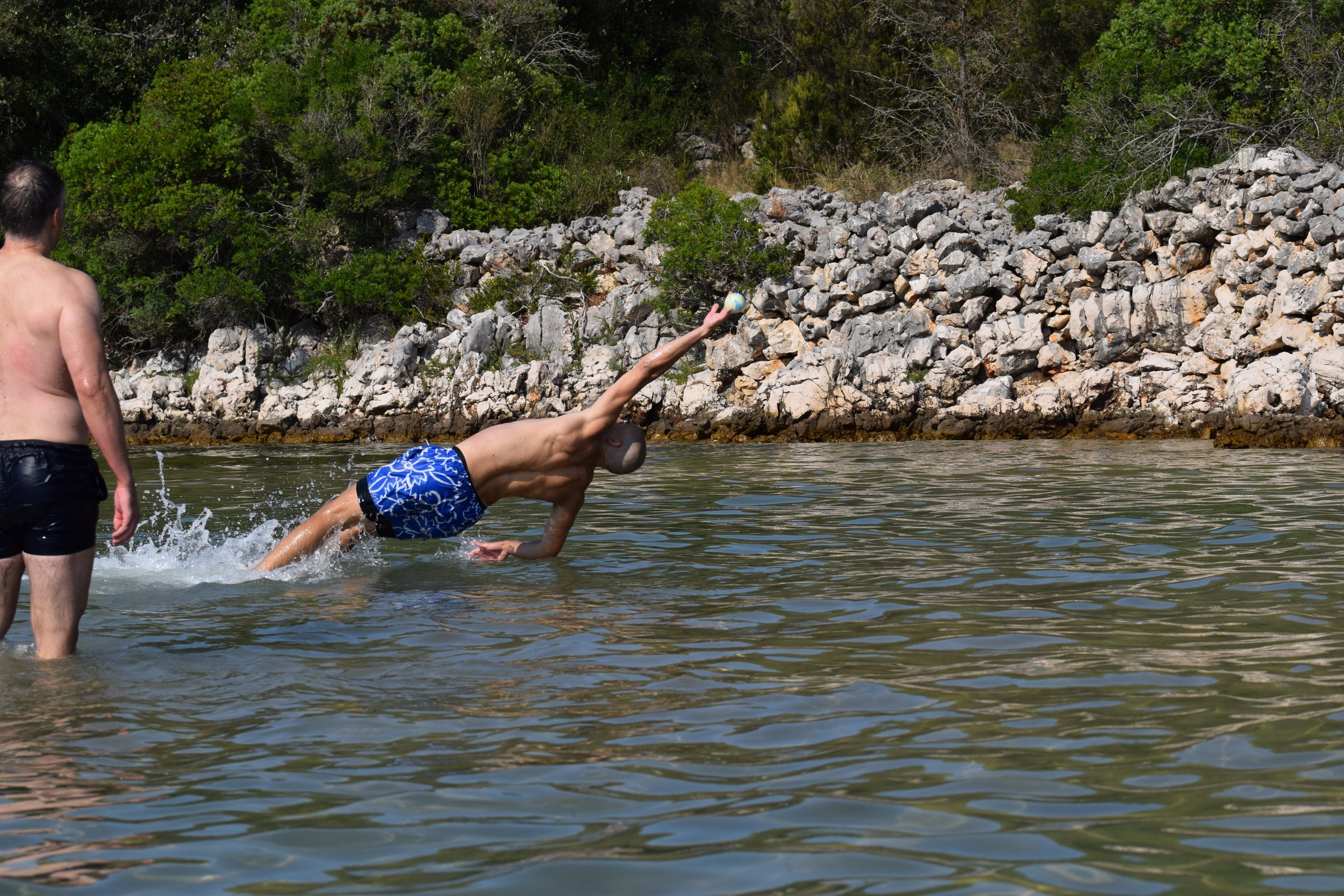 Ura vrimena je prošla u trenu, igrali smo odlično i iako nismo ponovili ništa slično čudesnoj partiji koju su odigrali dečki po ure prije, odigrali smo gomilu dobrih i odličnih … i igrali vrhunski picigin. Kojem je vrhunac opet bio pri kraju, kad su učetvero ostali Dino, Toni, Jure i Jakov … Karlo je pošao malo odmoriti na bord a ja se opet uhvatio fotoaparata … i dečki su pošteno kuvali.